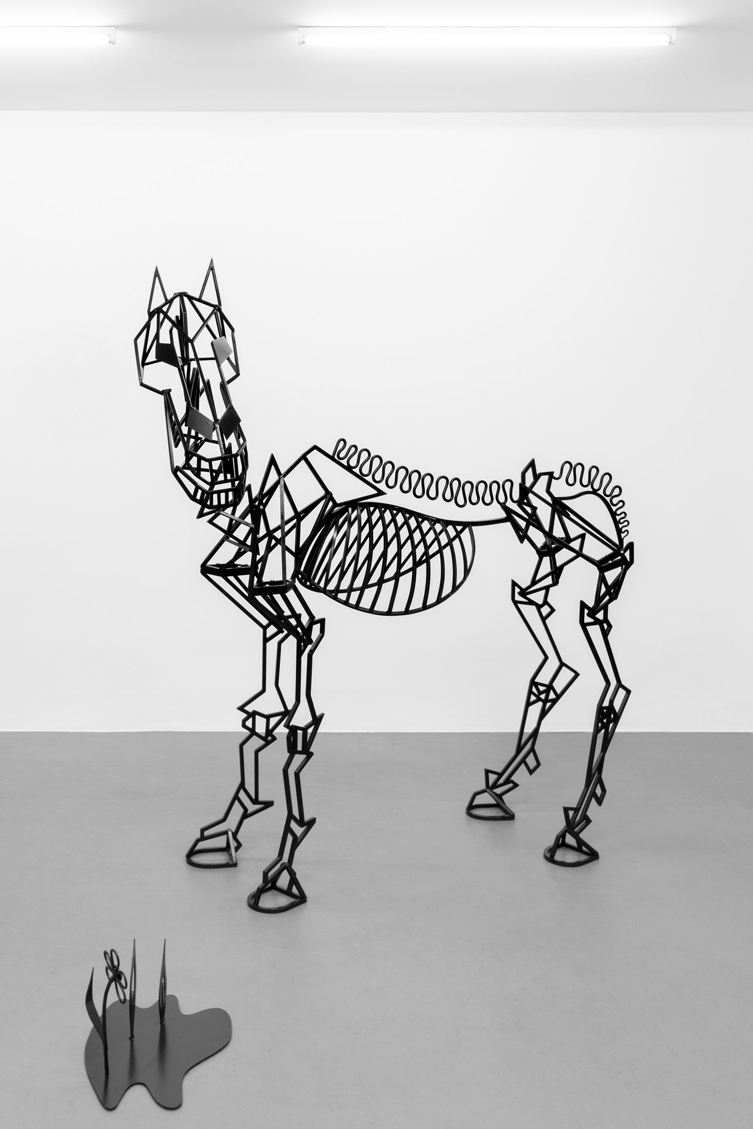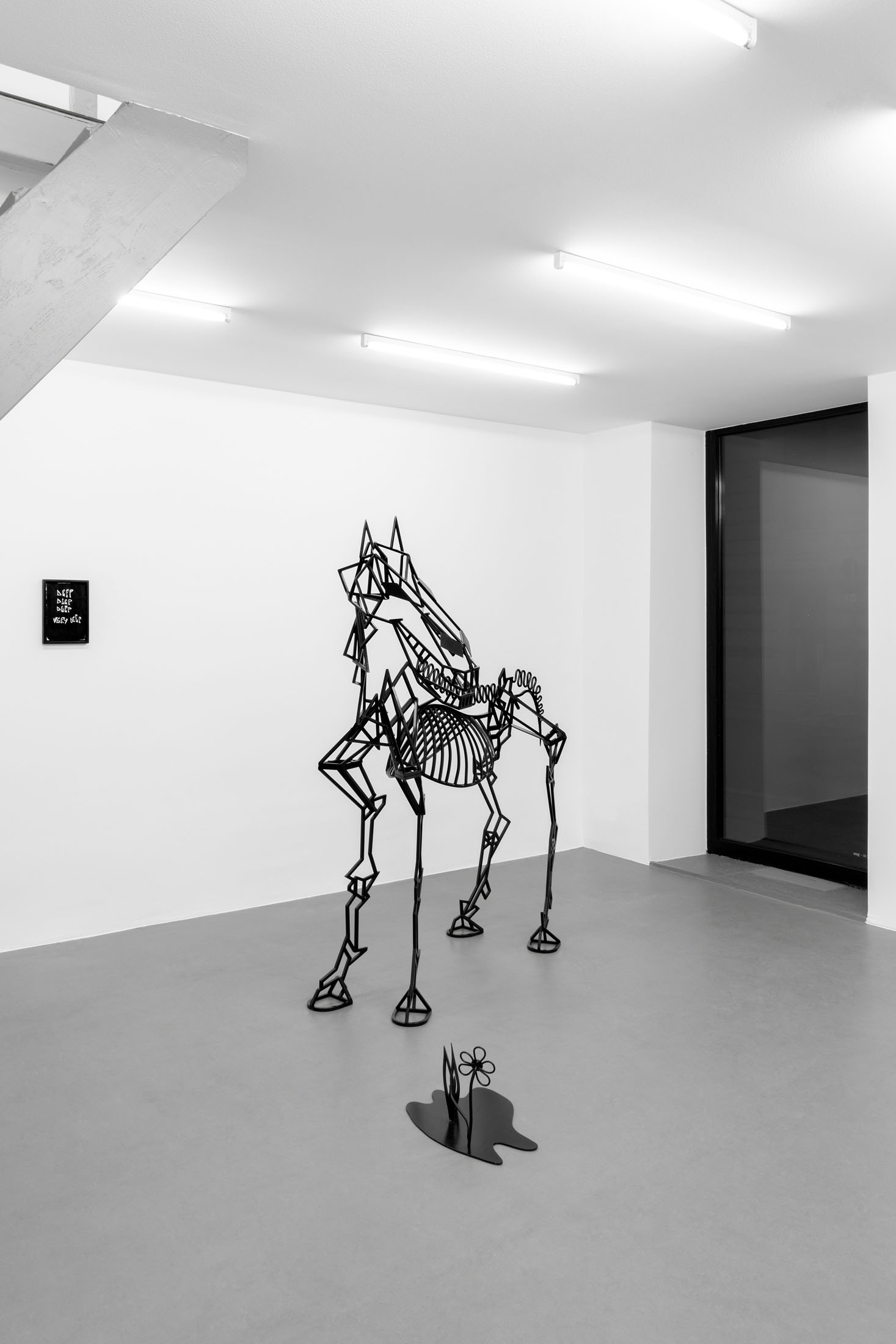 It is precisely this uncomfortable territory between comedy and dread that Julie Béna’s Deep, deep, deep, very deep so elegantly inhabits. The skeletal horse greets us at the entrance like a phantom from a bygone parade — a nod to power’s faded grandeur. Once a symbol of triumph, now reduced to bone and posture, it nonetheless retains a chilling grin, caught mid-performance, refusing to fully exit the ring. This horse is not only a relic but also a silent jester, complicit in the show’s uneasy allure.