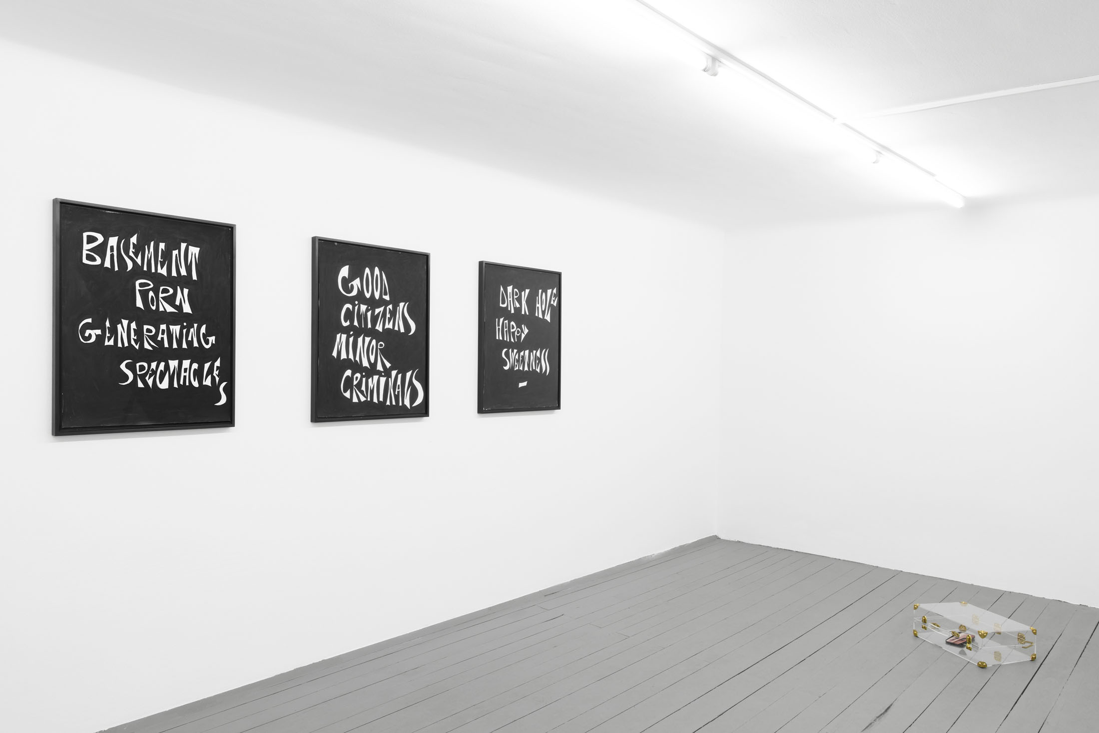 Béna’s words-based pieces, too, operate like cryptic signs at the circus gate, half-promises and half-warnings, they slip between poetry and accusation. Good citizens, minor criminals, People stopped dancing, Basement porn generating spectacles — these lines feel improvised, urgent, as if scrawled by a tired ringmaster moments before the crowd arrives. At first glance, they might seem playful or absurd, but linger longer, and they reveal a bleak wisdom about the social performances we all rehearse: obedience, rebellion, desire and disappointment.