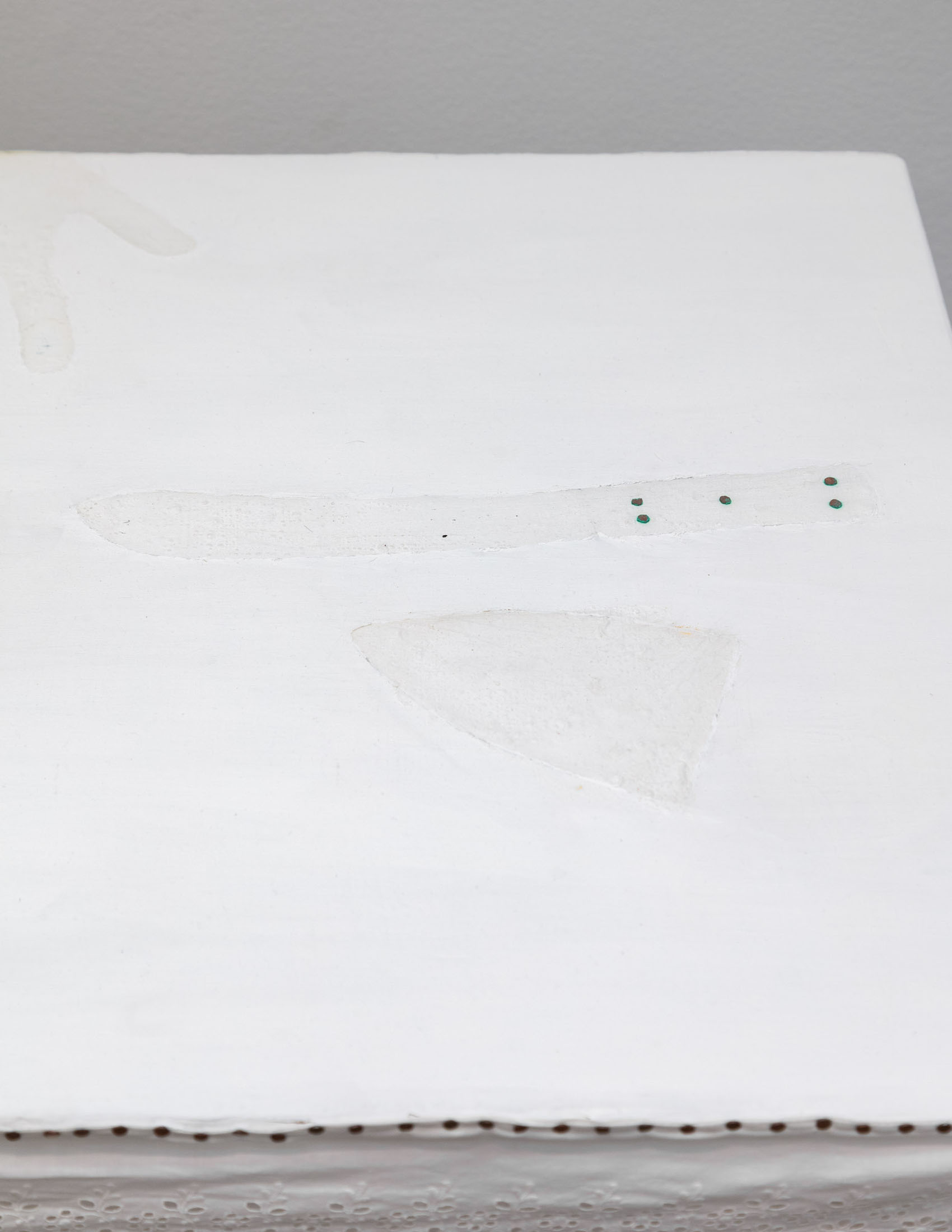In Clark’s work, she often invokes those who have come before her: family members, ancestors, writers, artists, musicians, and neighbours. In the presence of these works you are invited to sit and contemplate the lives of those she has channeled; history is interwoven with personal memory. In Perseverance Suite (2023-ongoing) farm tools and domestic objects are merged in sculptures which come out of her “realization that I exist because of those who have come before me; those who persisted and persevered.” Keepers (2004-2023) brought together repurposed washboards that were upholstered and adorned with photographs and objects commemorating the lives of her close friends and family members who have passed away. Her Homage series (2011-ongoing) pays tribute to the artists who gave her “permission to be the artist I am today,” and in Family Secrets (1992) 18 cigar boxes display objects that in some way evoke the memory of an individual from Clark’s past.