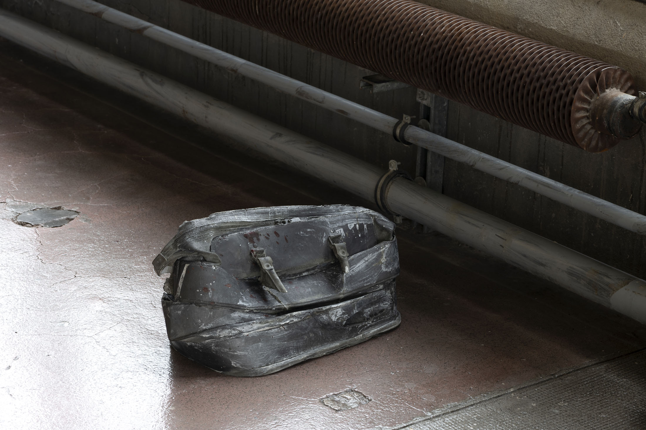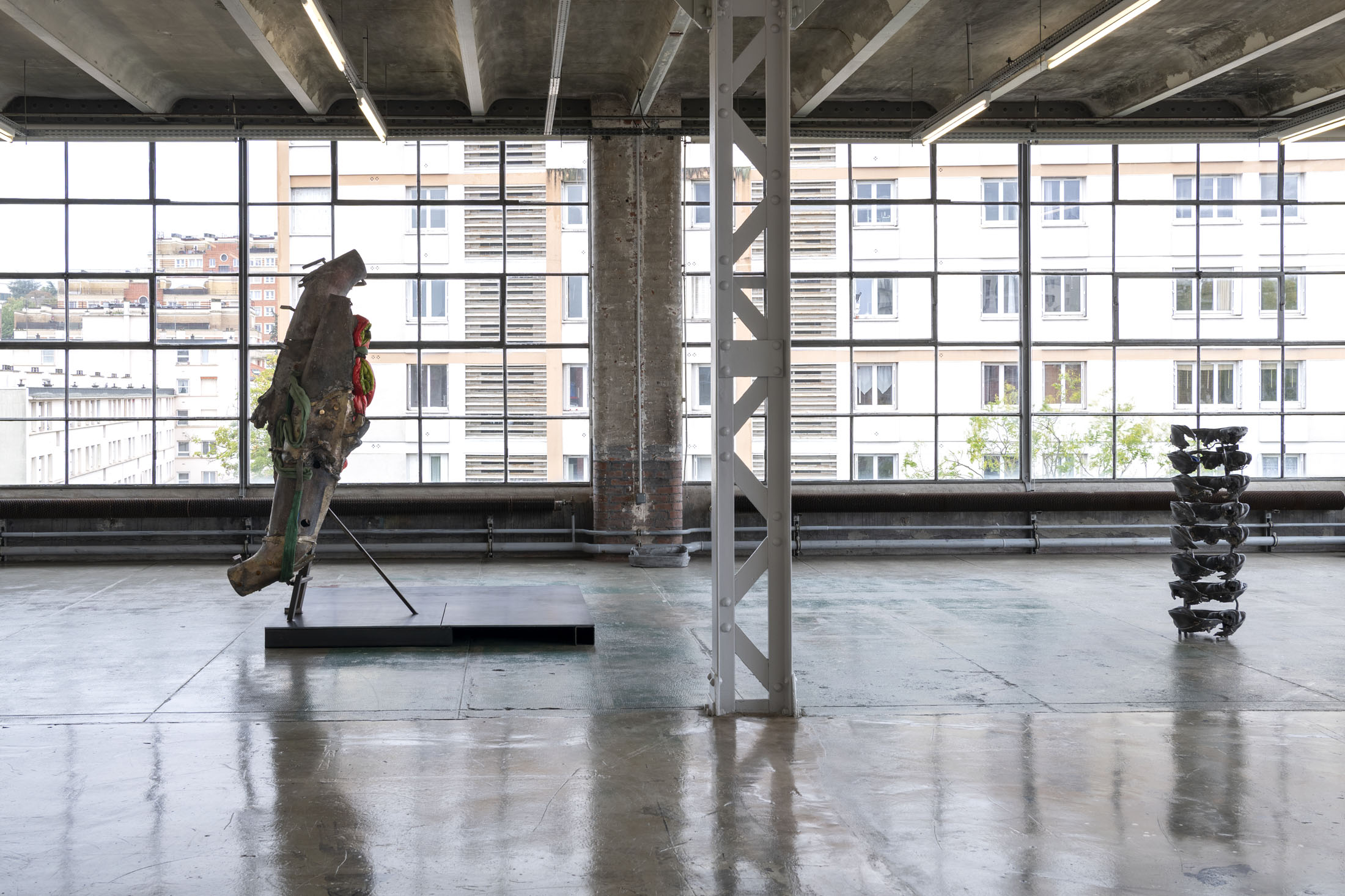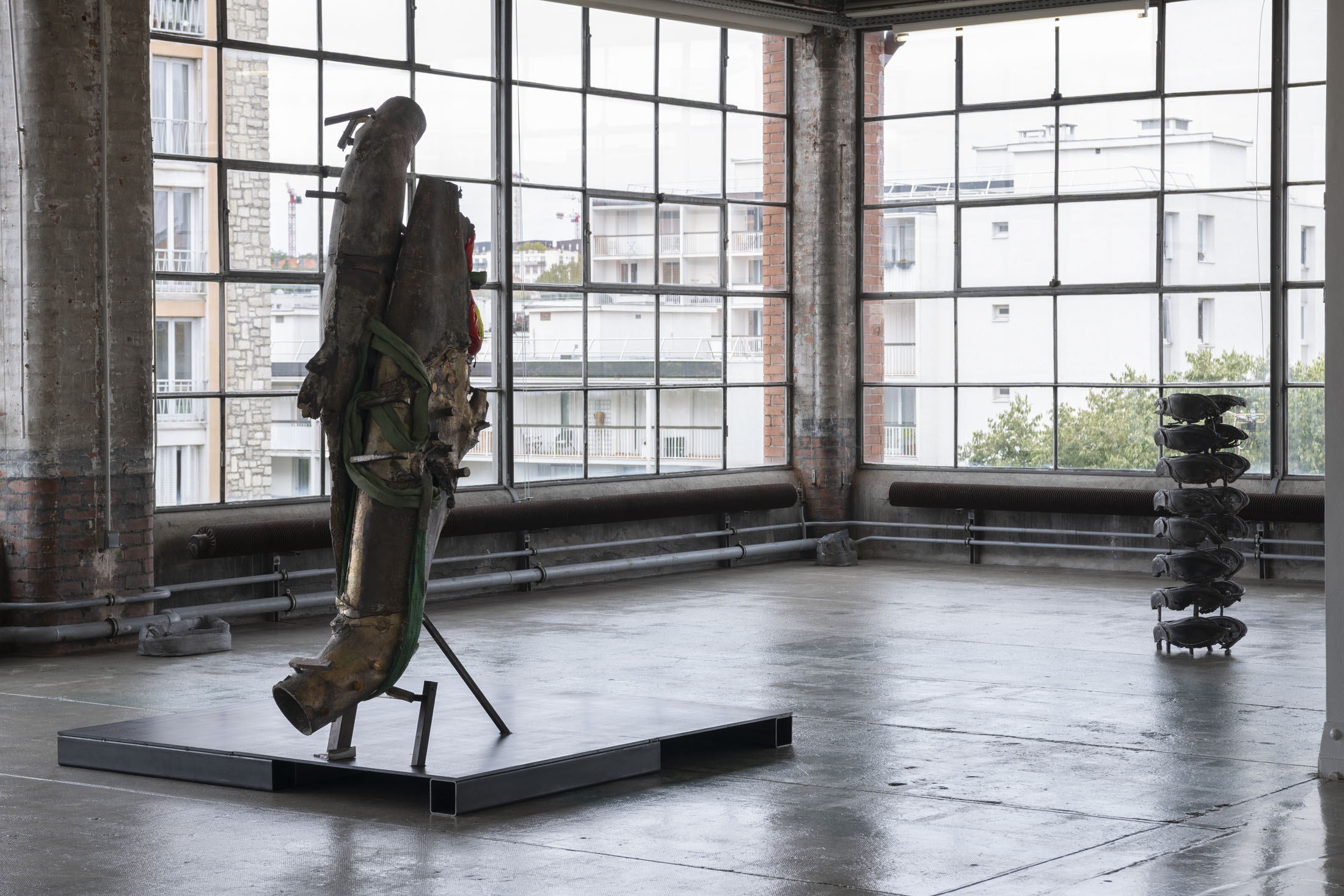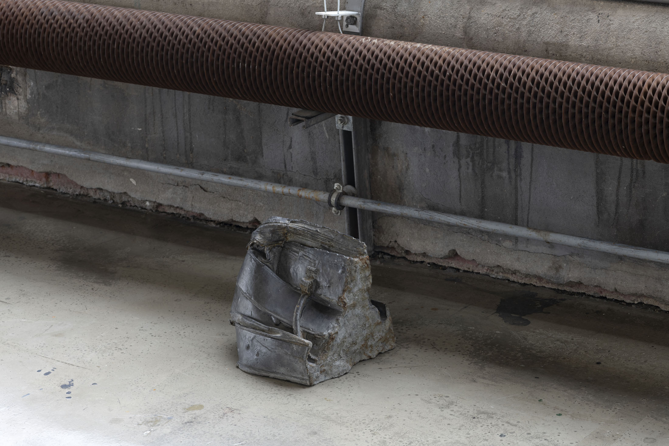 Crespo’s exhibition layout at the Crédac highlights the industrial characteristics of the venue, brought out by the situating of her sculptures in its spaces. Her work also infiltrates the interstices of its architecture, inhabiting it. By inserting the sculpture No Osso (Occipital) inside the building’s viscera, it opens the structure to the viewer’s gaze. This is typical of an artist whose aim is to reveal the solids and hollows of objects, including the most unusual, discreet or even invisible.