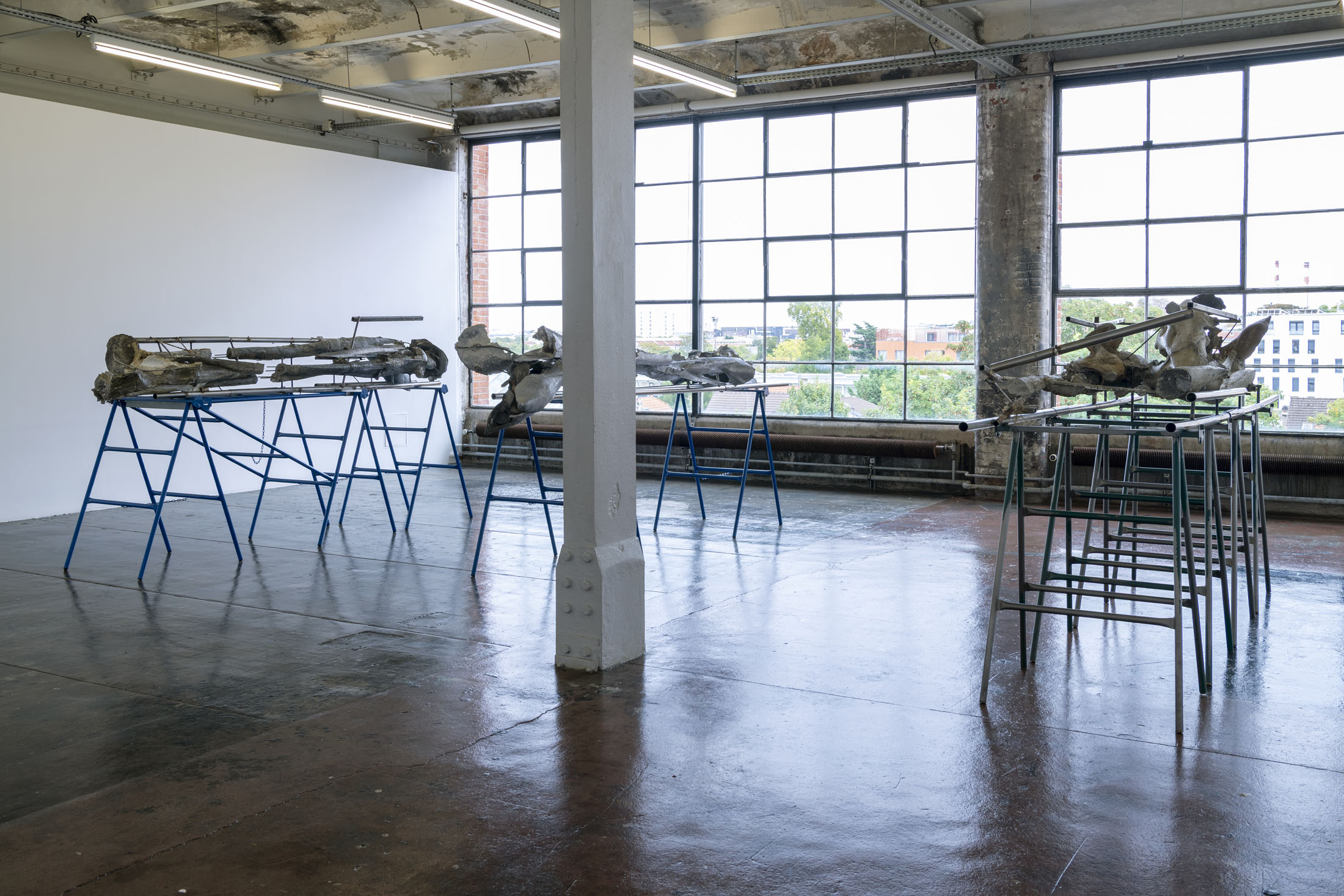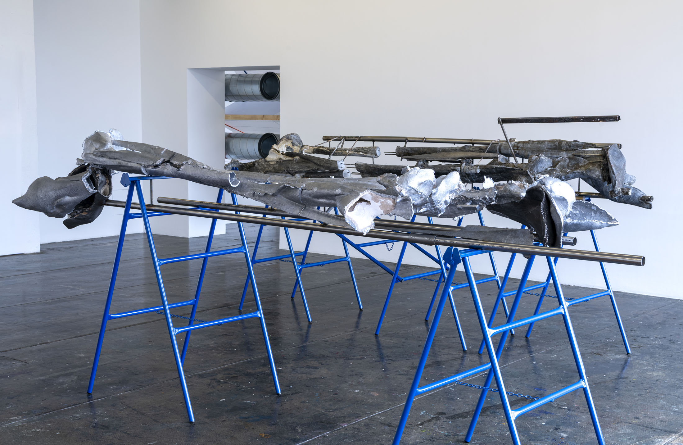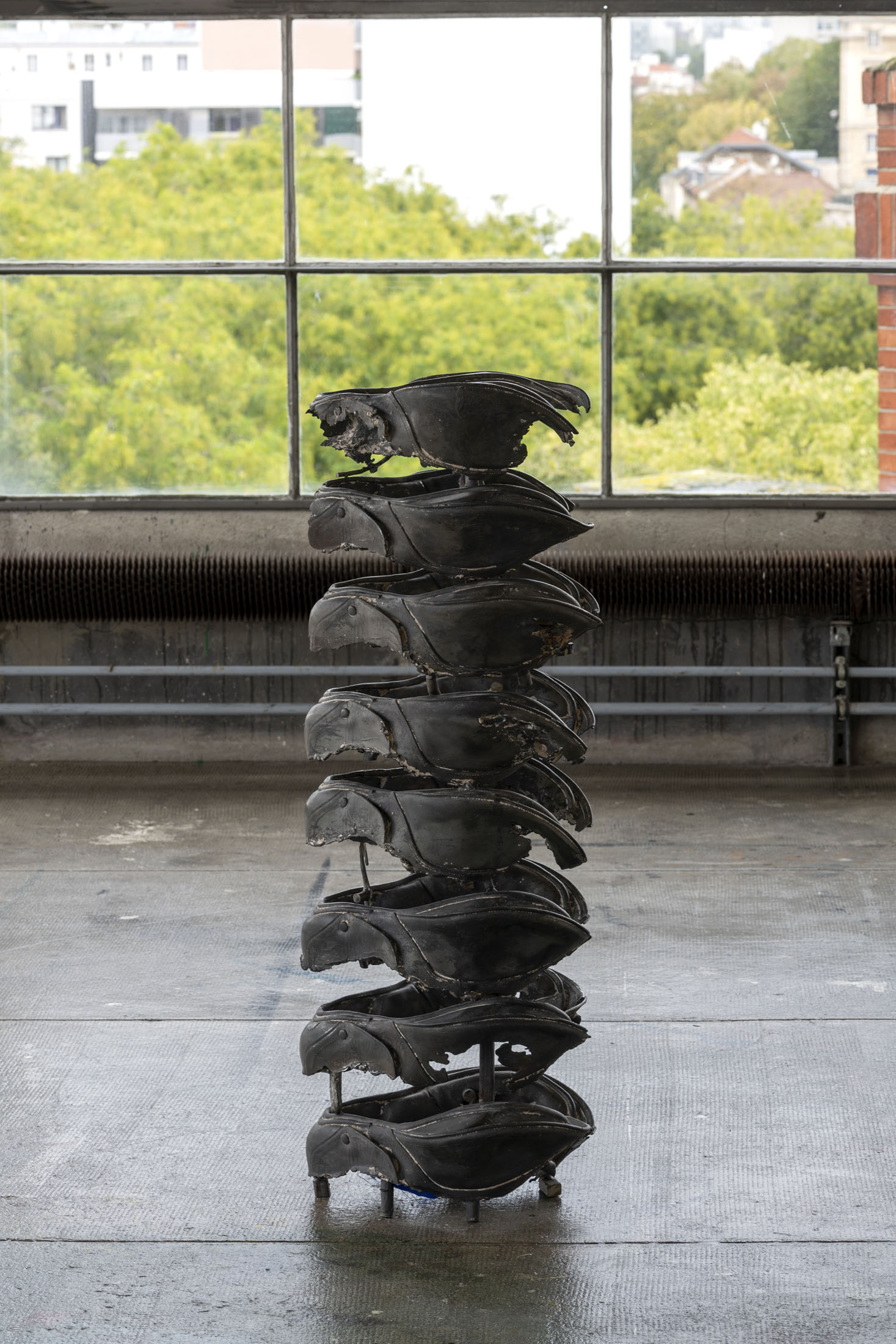 Crespo’s exhibition layout at the Crédac highlights the industrial characteristics of the venue, brought out by the situating of her sculptures in its spaces. Her work also infiltrates the interstices of its architecture, inhabiting it. By inserting the sculpture No Osso (Occipital) inside the building’s viscera, it opens the structure to the viewer’s gaze. This is typical of an artist whose aim is to reveal the solids and hollows of objects, including the most unusual, discreet or even invisible.