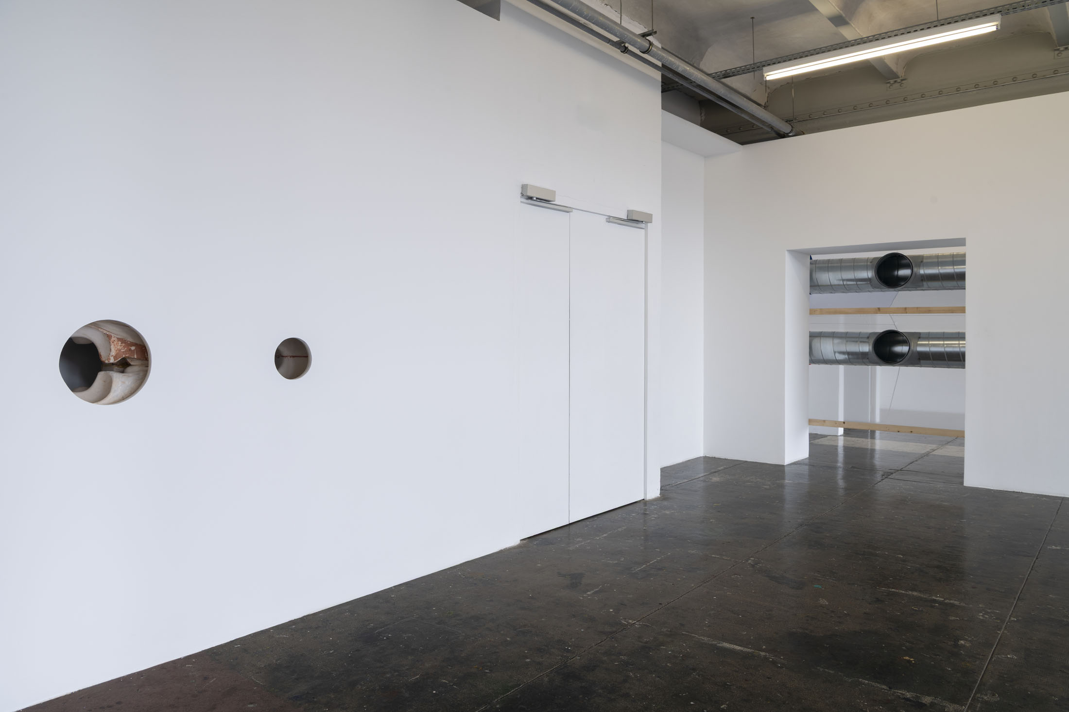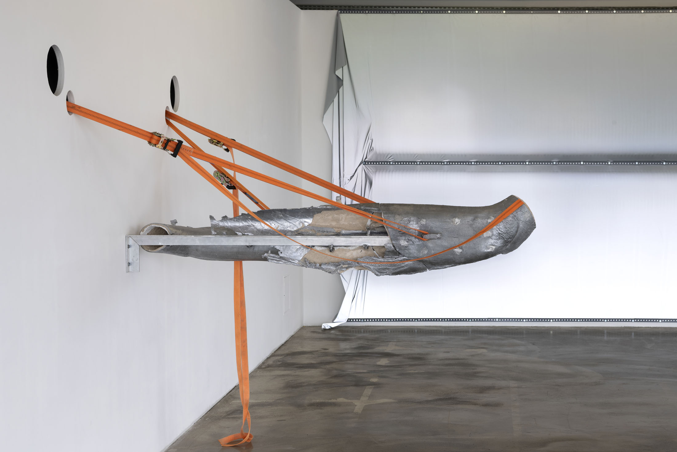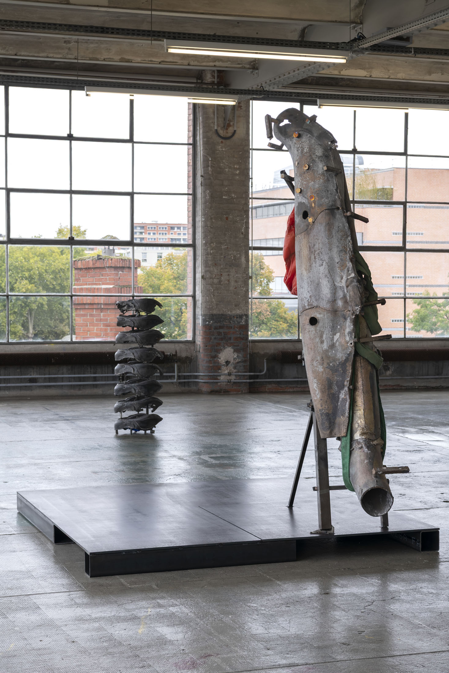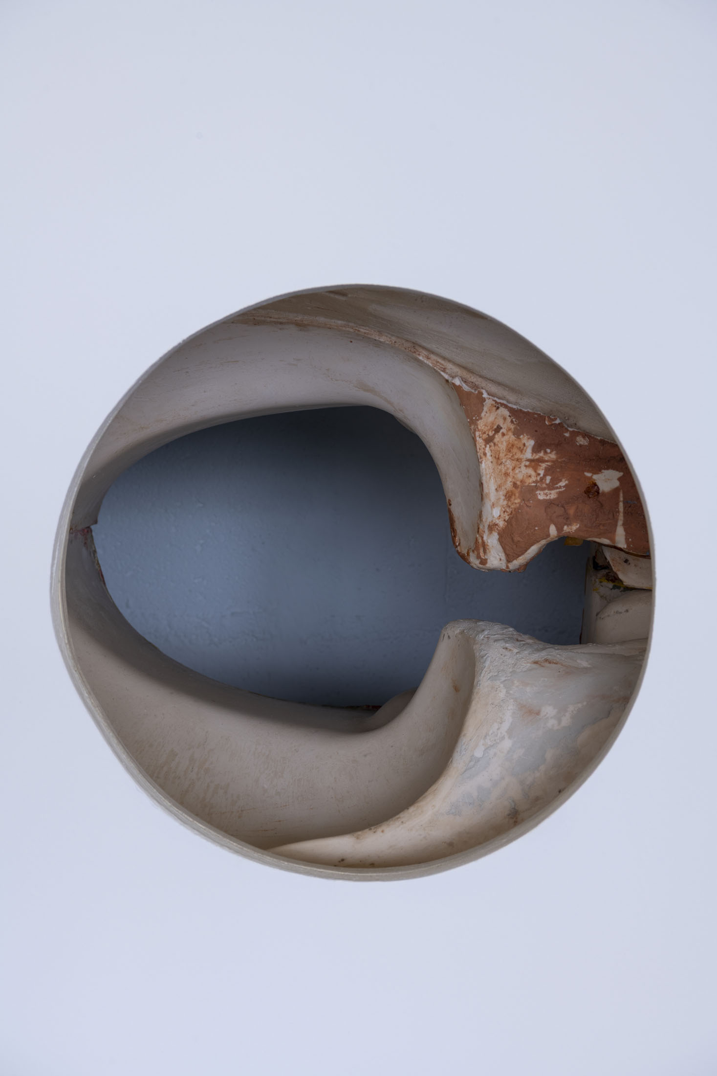 Crespo’s exhibition layout at the Crédac highlights the industrial characteristics of the venue, brought out by the situating of her sculptures in its spaces. Her work also infiltrates the interstices of its architecture, inhabiting it. By inserting the sculpture No Osso (Occipital) inside the building’s viscera, it opens the structure to the viewer’s gaze. This is typical of an artist whose aim is to reveal the solids and hollows of objects, including the most unusual, discreet or even invisible.