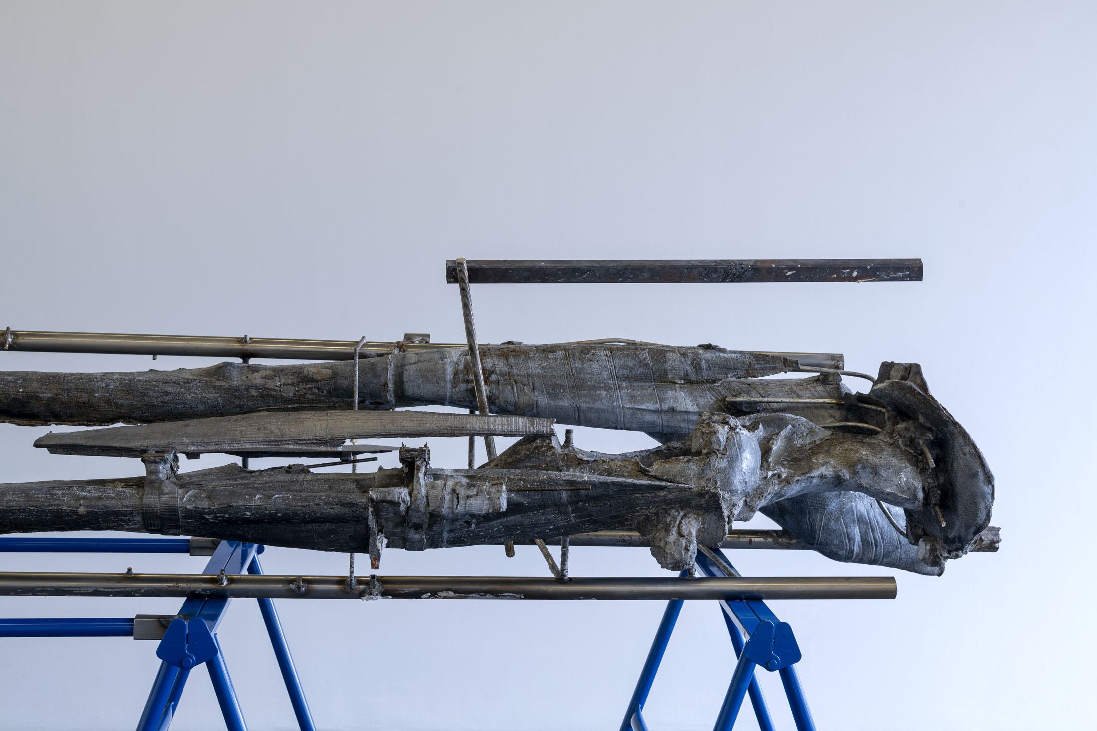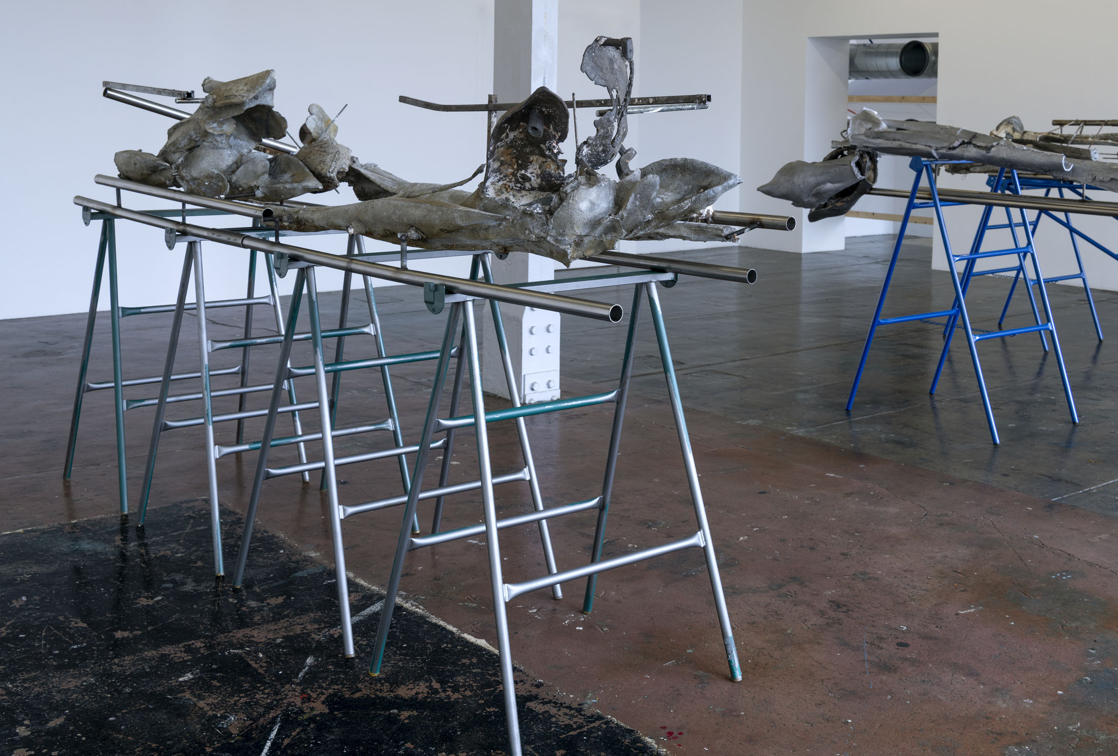 Trained at the Fine Arts Department of the University of the Basque Country, known for its long tradition of teaching sculpture, June Crespo (Pamplona, 1982, lives and works in Bilbao) explores the expressive possibilities of materials and their combinations. In works that are often look as sturdy as they are monumental, delicate gestures are unveiled that blur the line between the industrial and the organic. Sometimes anthropomorphic, sometimes minimal and abstract, in both formal and symbolic terms her chimerical sculptures converse with and explore the body, while anything but explicit.