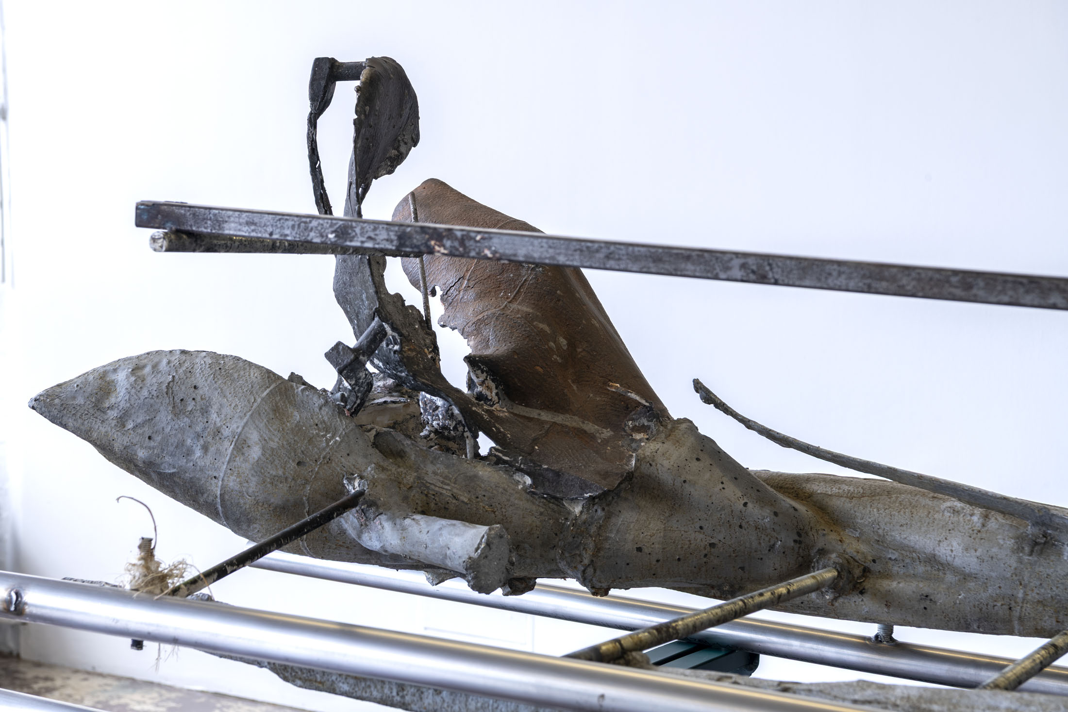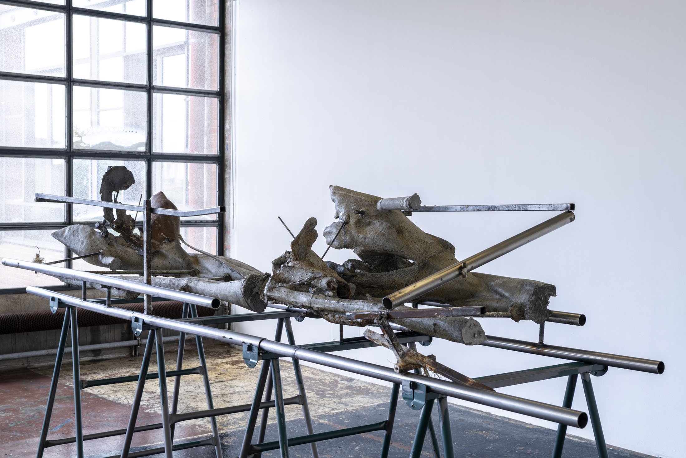Her work is a continuation of a line of women sculptors featured in solo exhibitions at the Crédac, from the Canadian artist Liz Magor (2016) to the German Alexandra Bircken (2017). Like them, Crespo draws on the memory of objects, the body and the skin. Added to this is her relationship with nature, a major concern for her artistic generation. Nature is evoked here by oversized cast flowers, displayed horizontally, suspended from the wall or presented vertically on steel shelving. The human scale chosen by the artist blurs the lines of representation and renders the forms almost abstract.