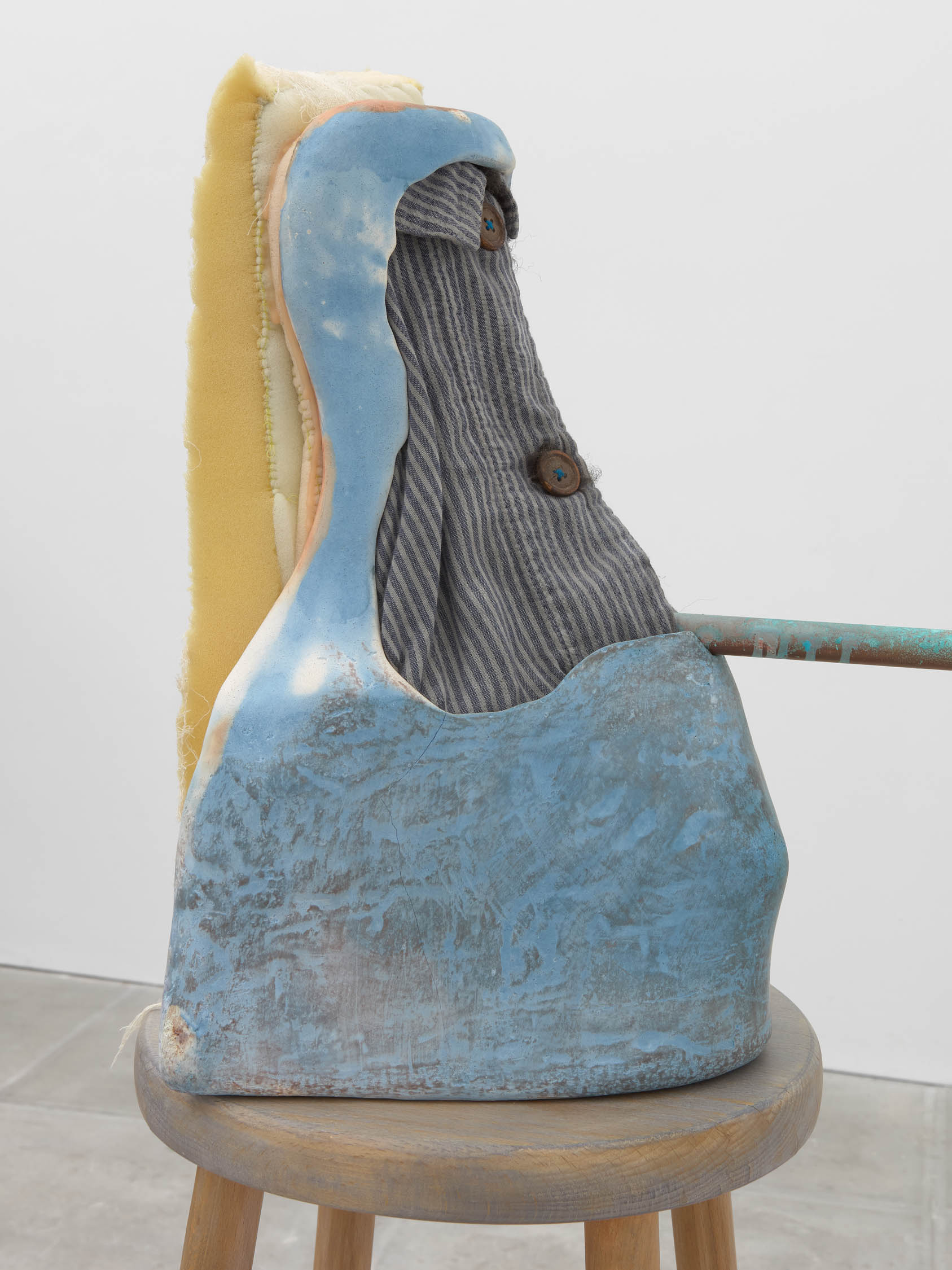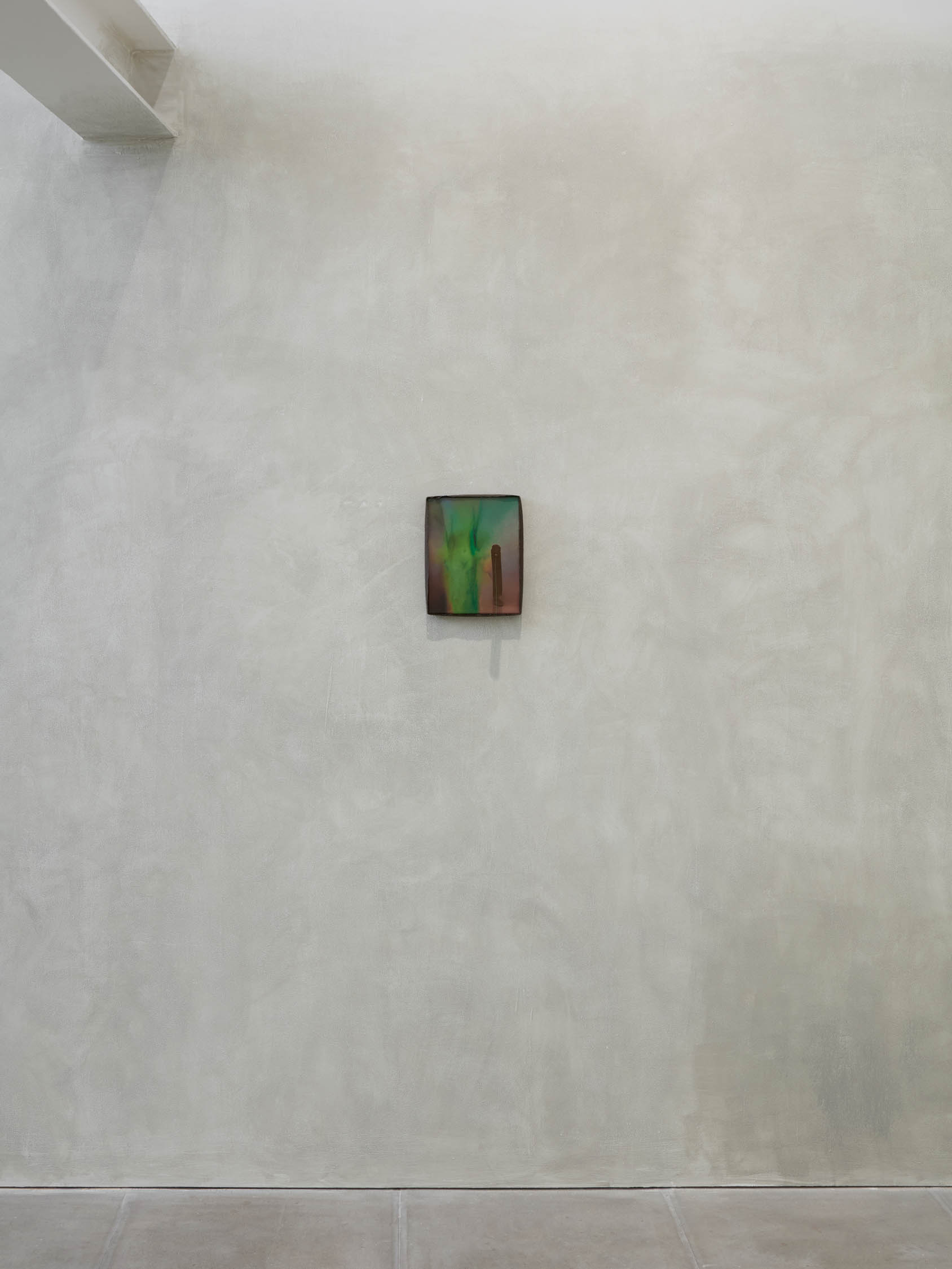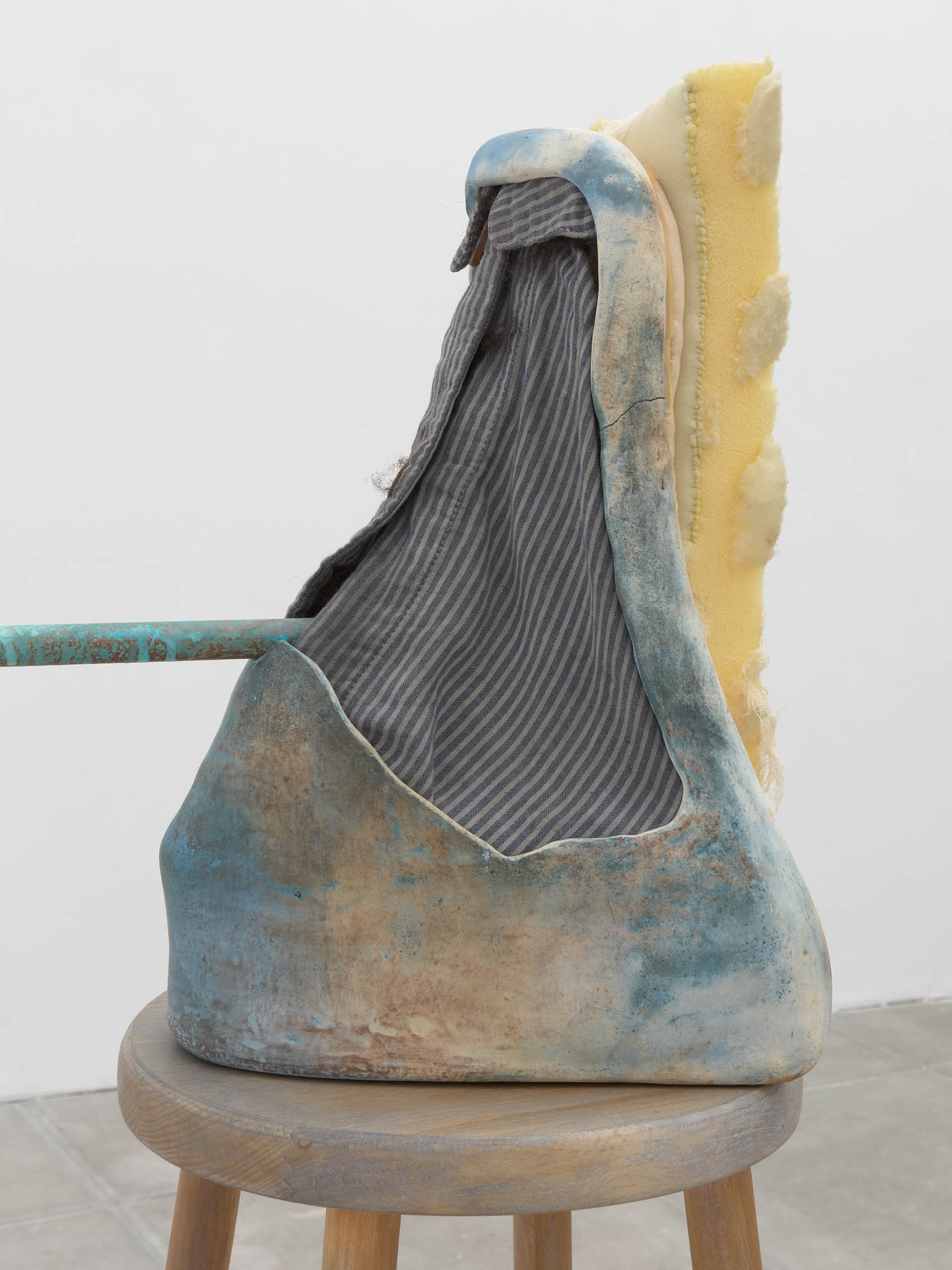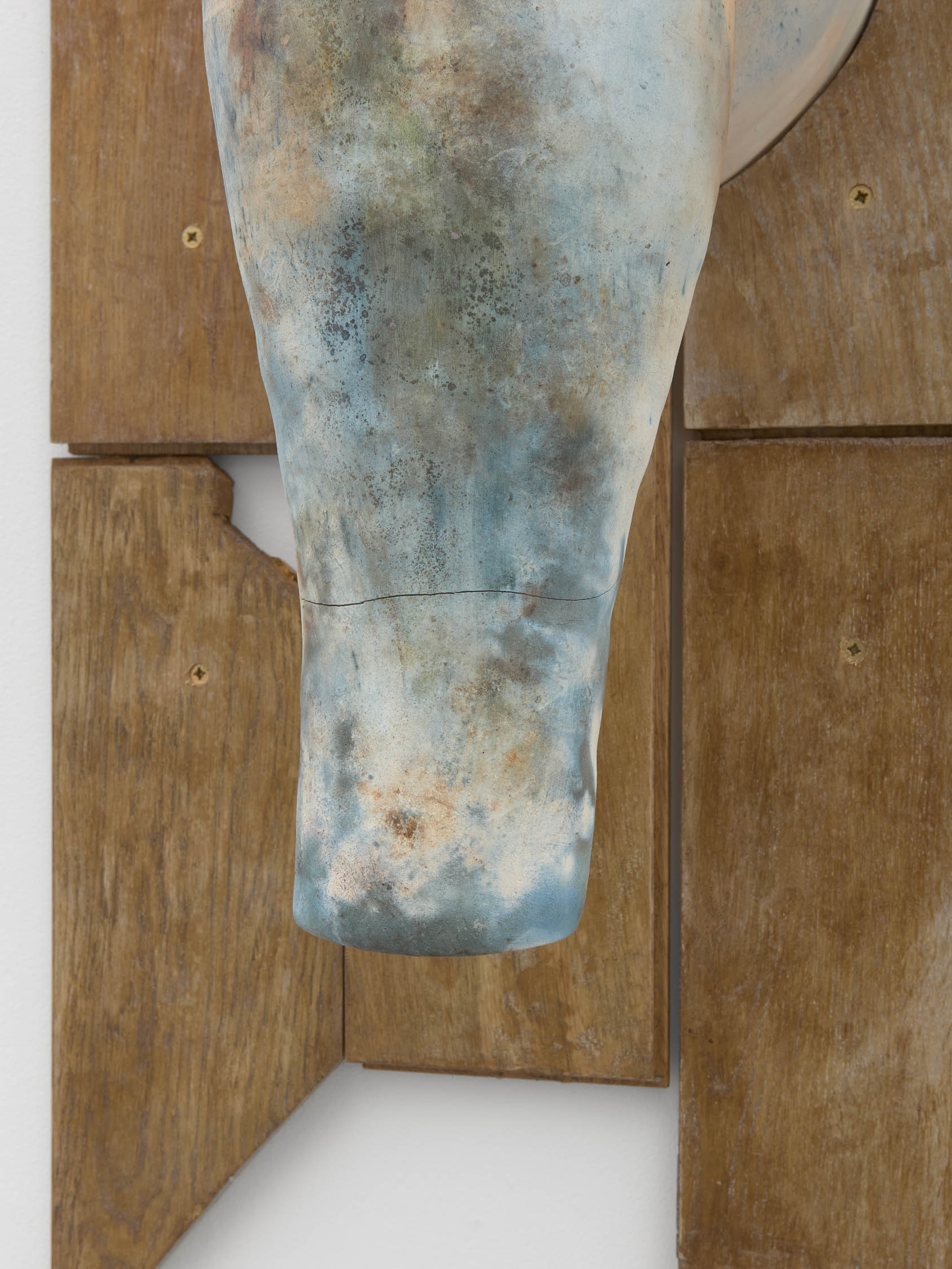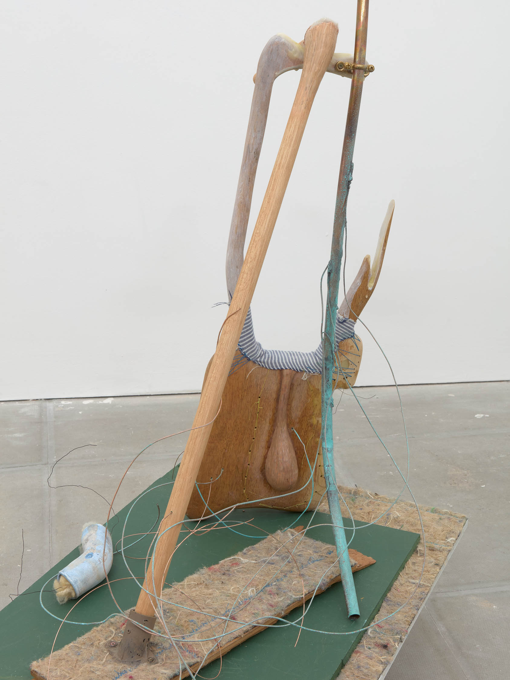The soft sound of the double ‘s’ follows the hard bracket of the ‘c,’ itself contained within the echoing form of the parentheses. Hooked forwards, the curved spine of the punctuation mark is supple and shy. Sibilance flows outward from the central digraph of the word, cosset, which is a title, a location, and a limit. Cool and wet, the paintings leak, and meaning passes from image to object to text—the symbol in migration. Fabric applied to the top of a frame mops up the excesses of feeling, like a soggy sock on the bathroom floor.