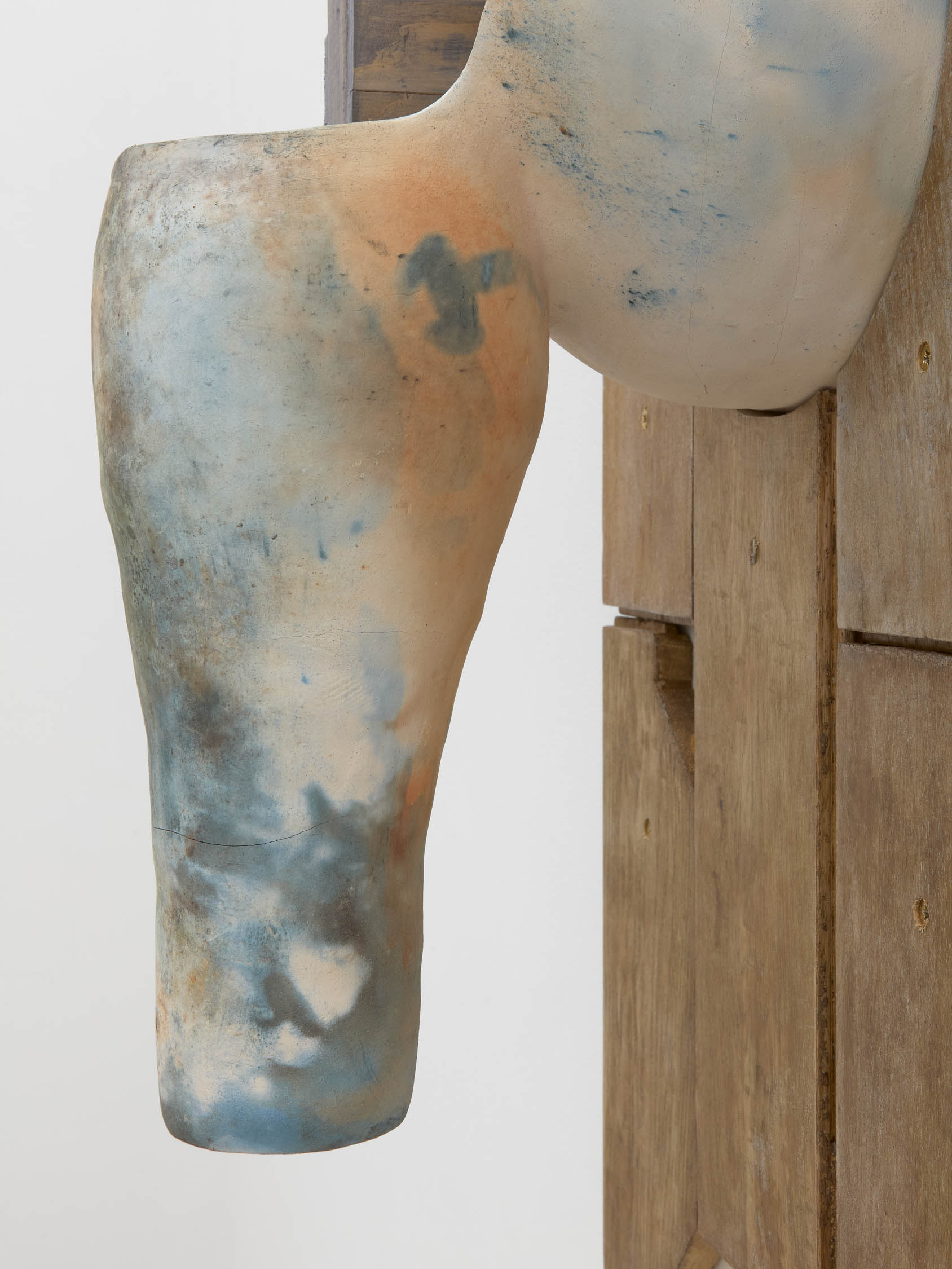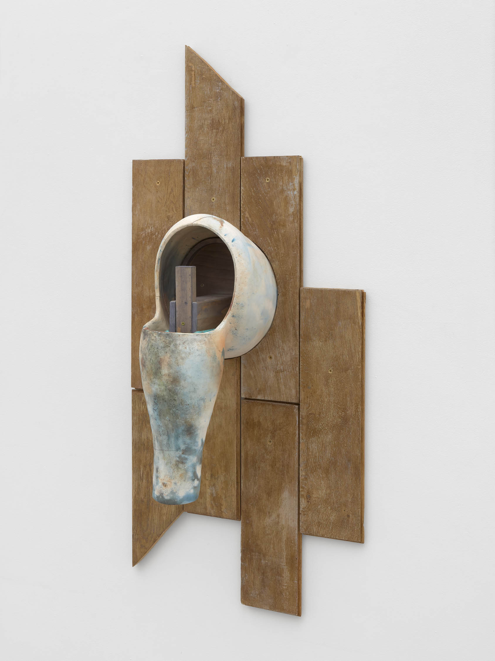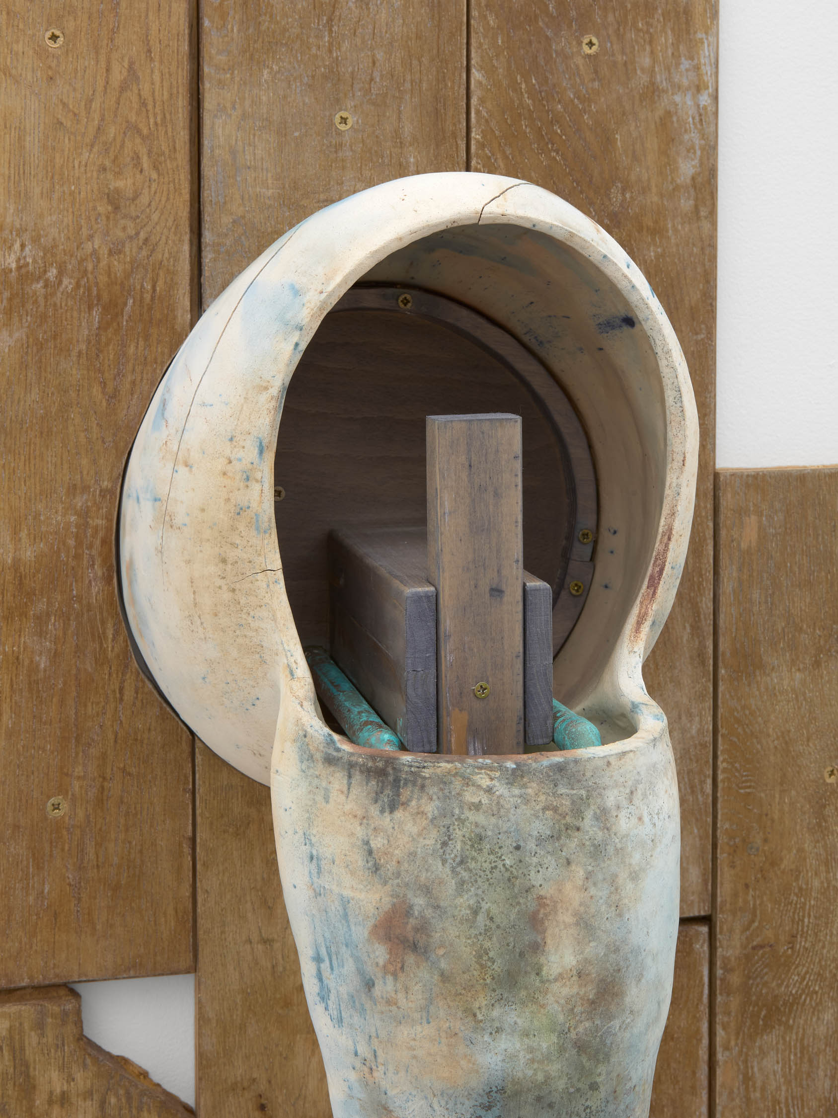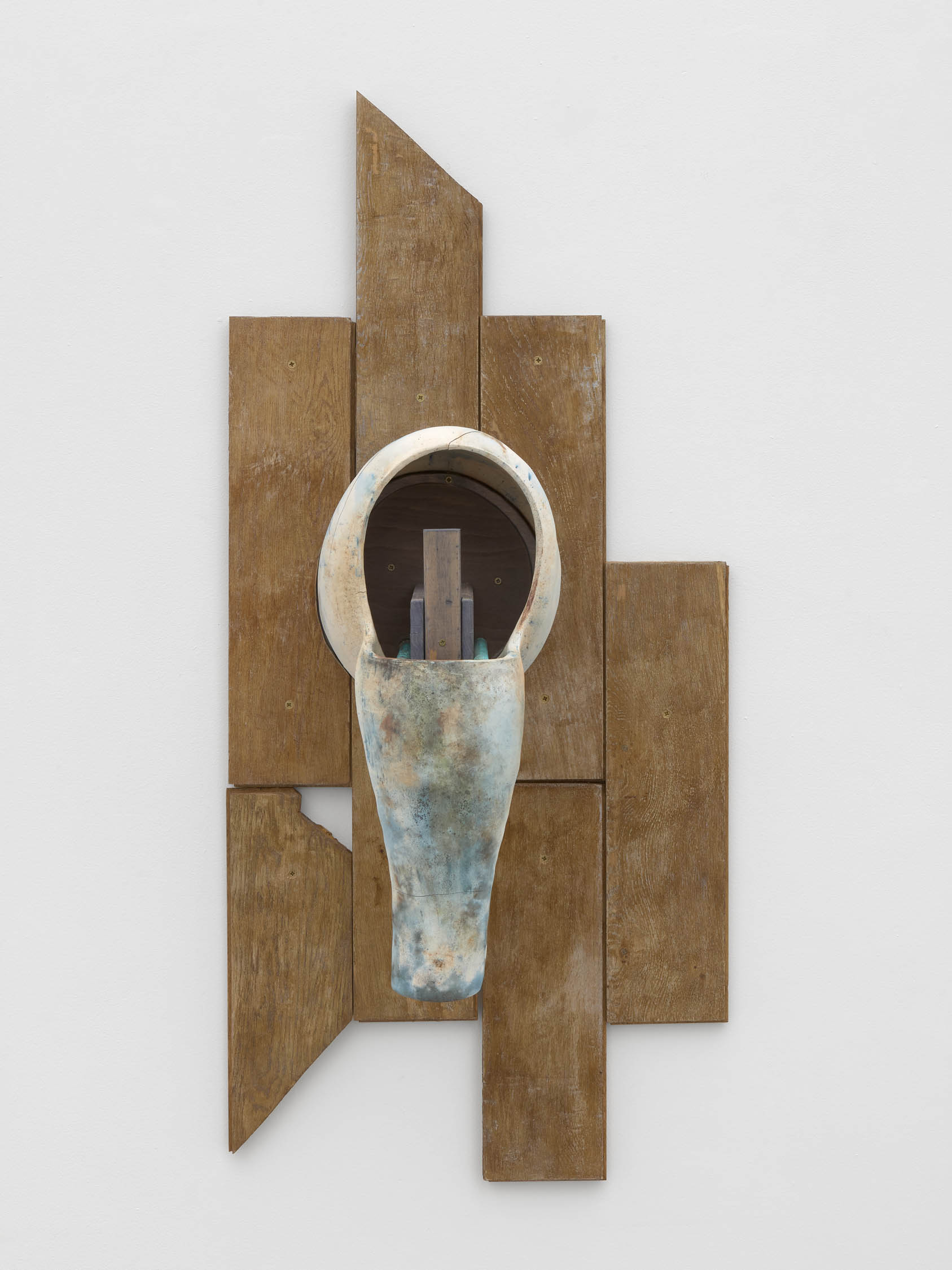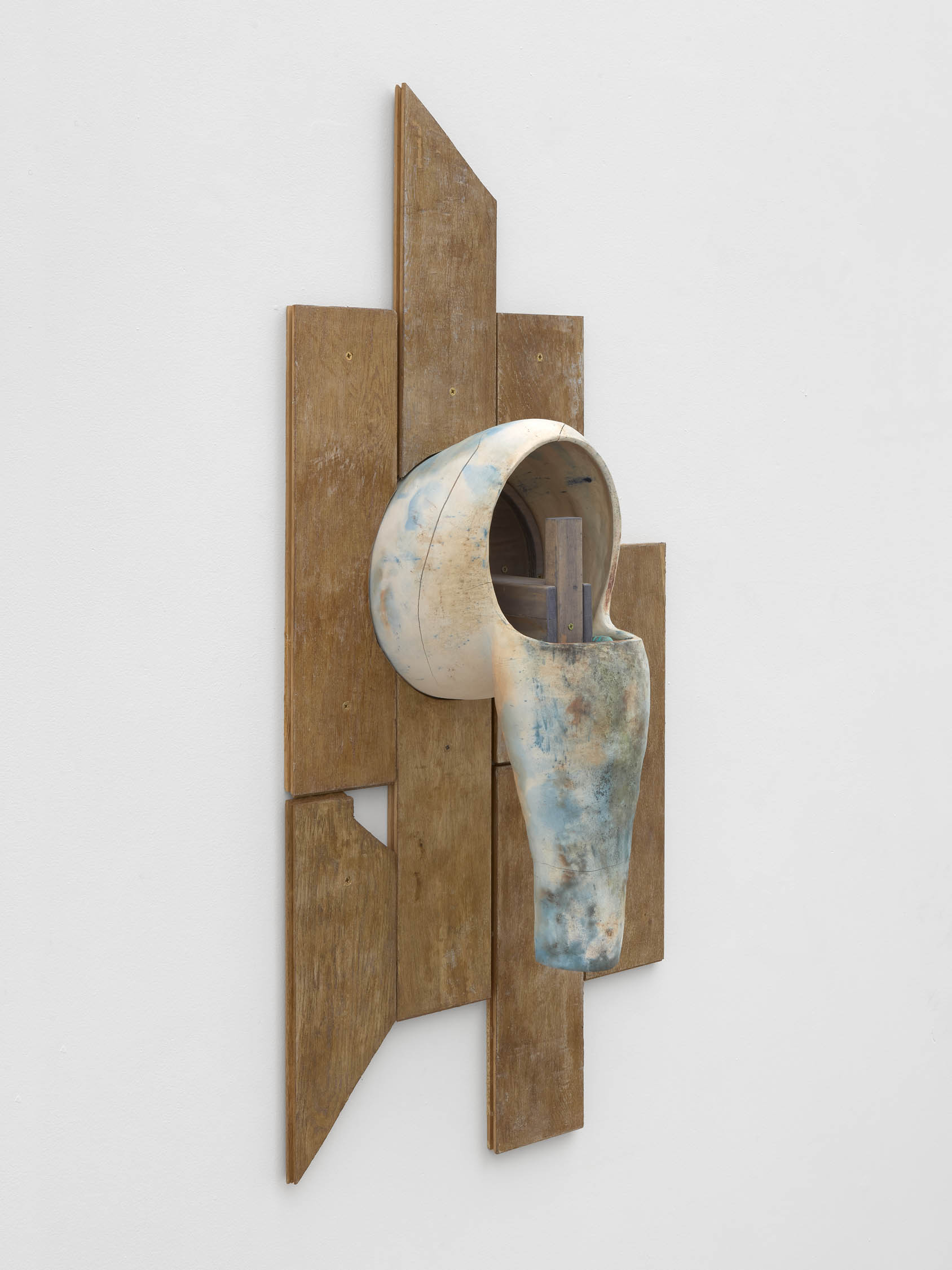 The soft sound of the double ‘s’ follows the hard bracket of the ‘c,’ itself contained within the echoing form of the parentheses. Hooked forwards, the curved spine of the punctuation mark is supple and shy. Sibilance flows outward from the central digraph of the word, cosset, which is a title, a location, and a limit. Cool and wet, the paintings leak, and meaning passes from image to object to text—the symbol in migration. Fabric applied to the top of a frame mops up the excesses of feeling, like a soggy sock on the bathroom floor.