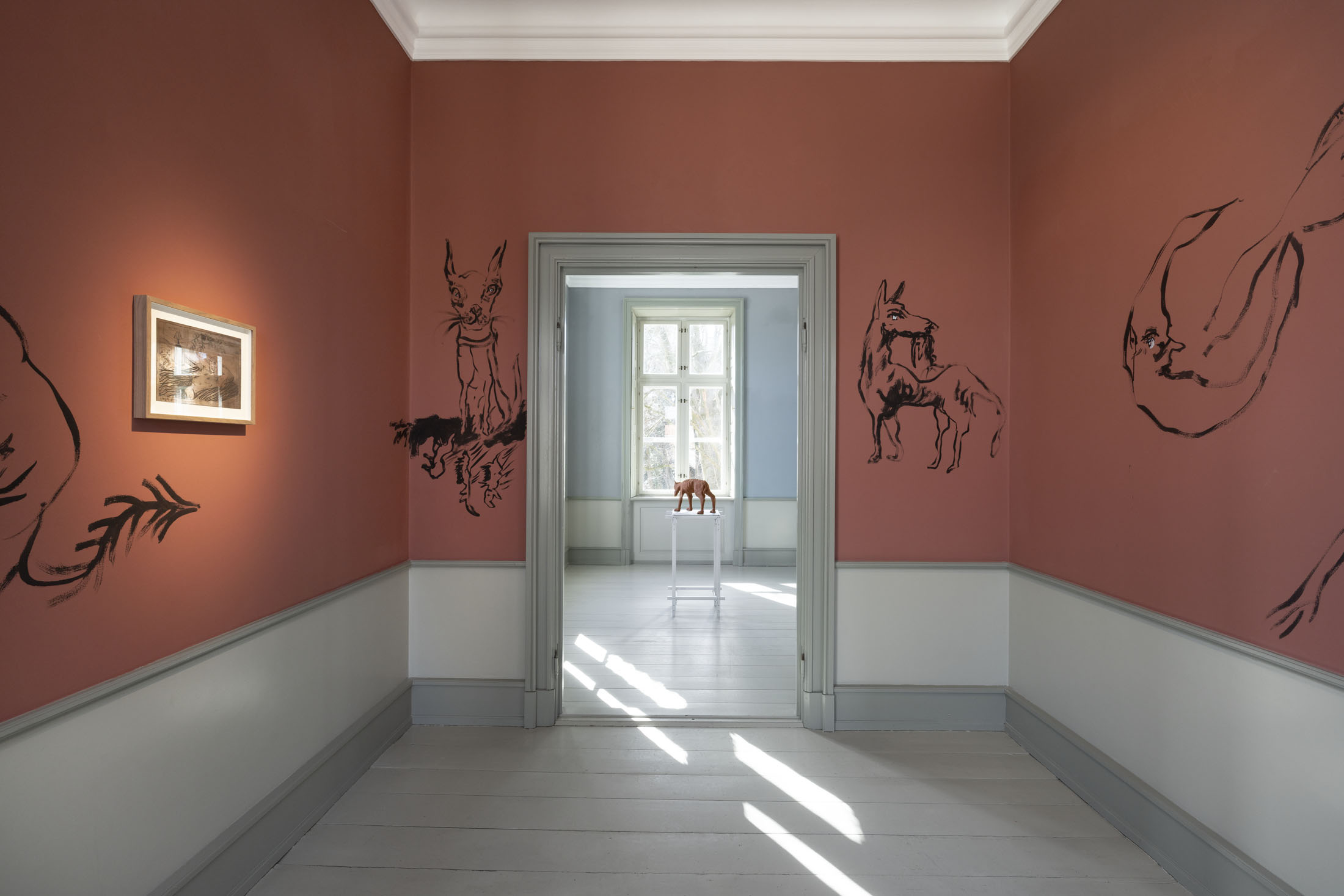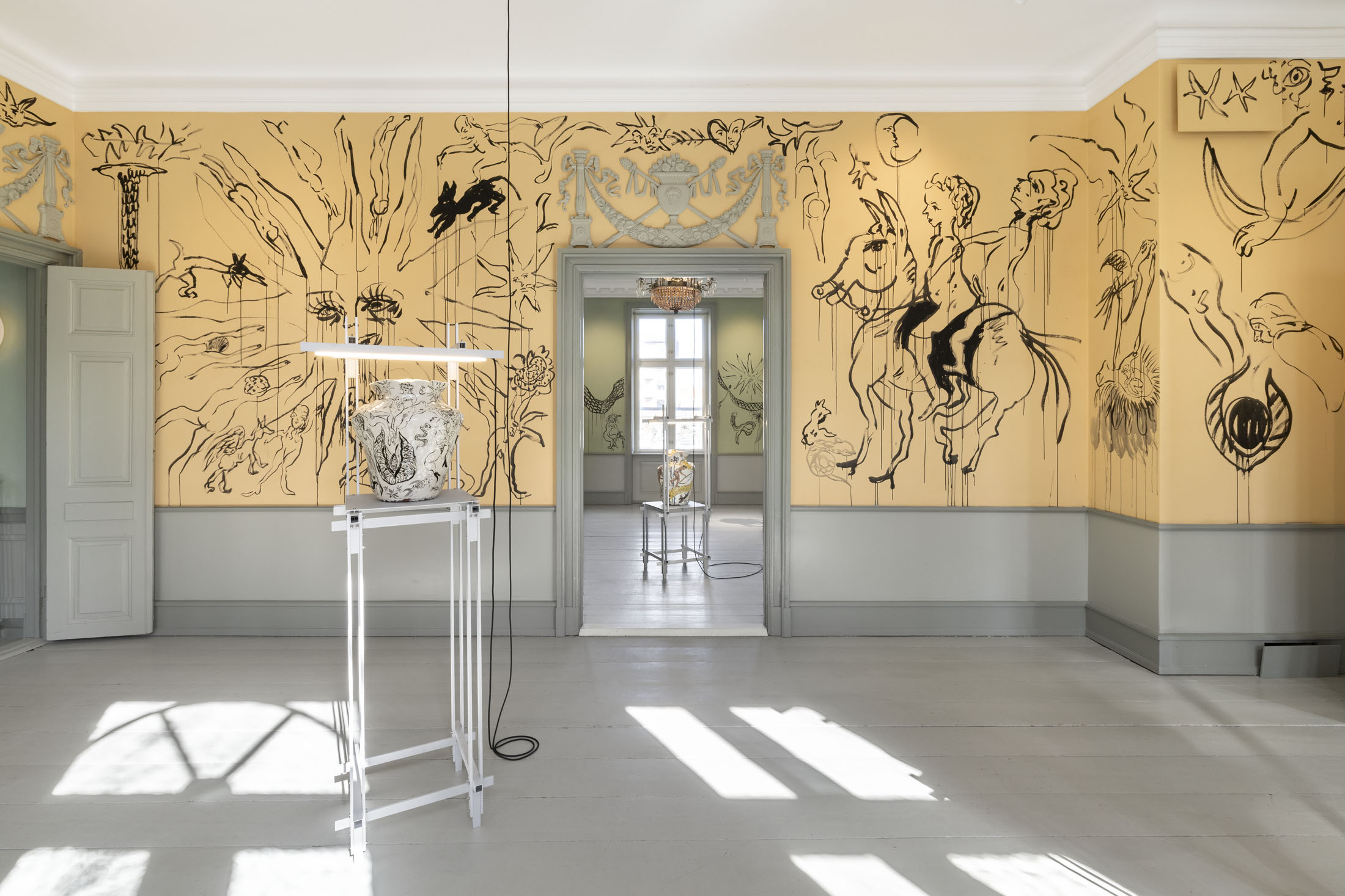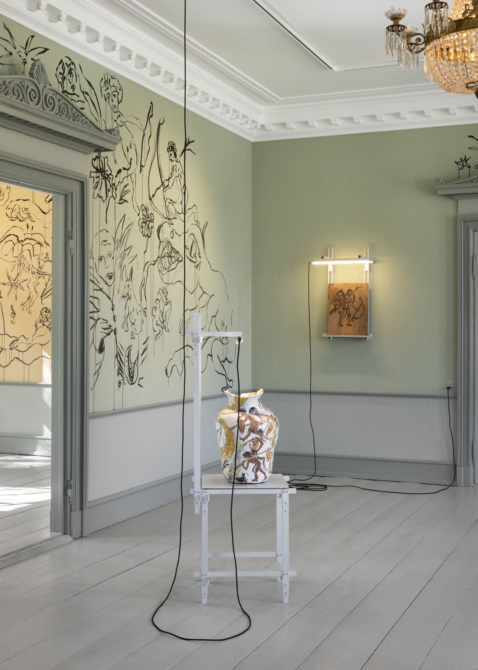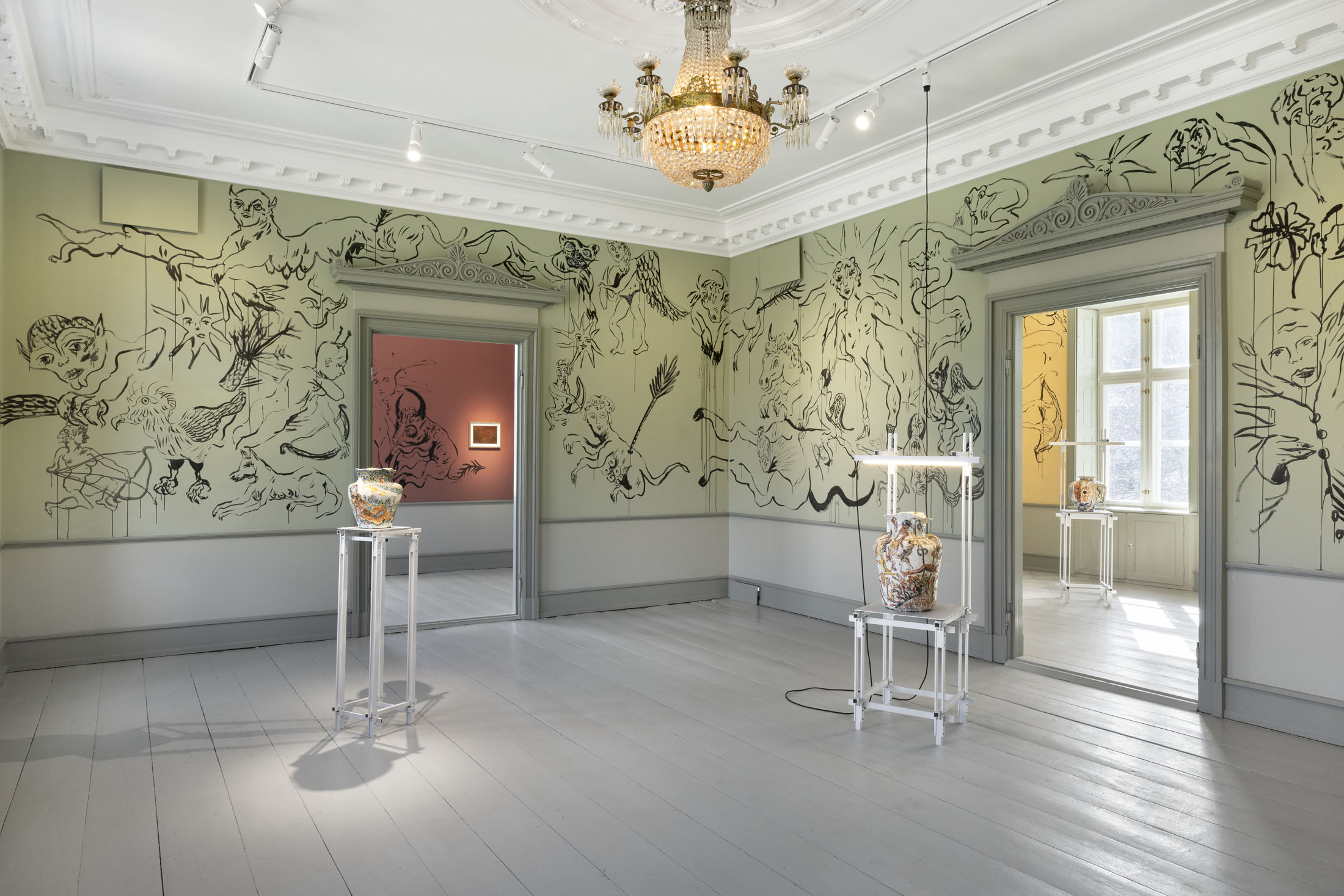 In Boumjimar’s works–here comprised of wall paintings, sculpture, ceramics, and silver casts of bodily fluids–the human being is not at the centre, but one organism among many, shaped, worn down, and decomposed by the same forces that are changing the ecosystems around it. Thus, the exhibition evokes an understanding of the body in which the boundary between the human and the nonhuman is porous and negotiable.