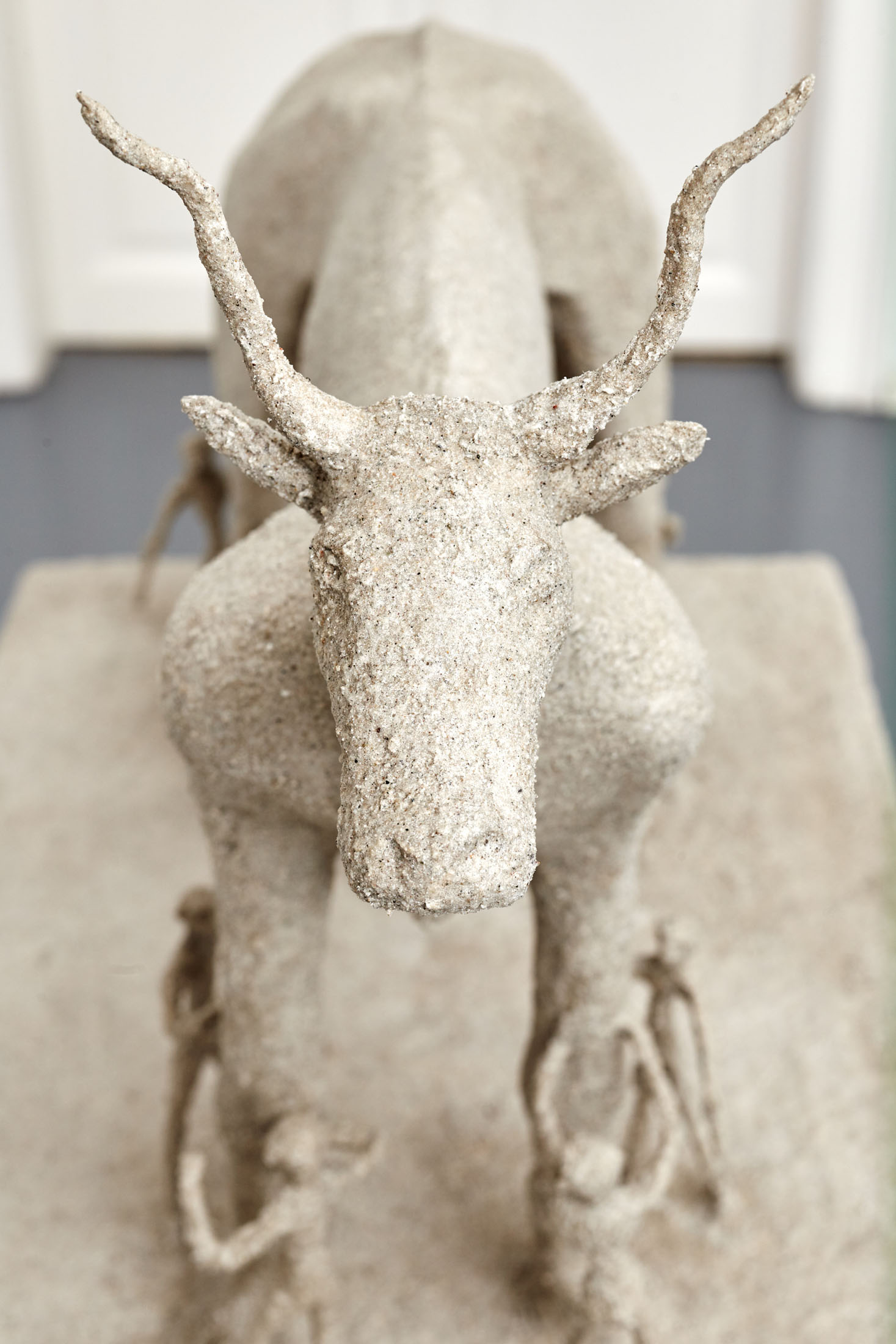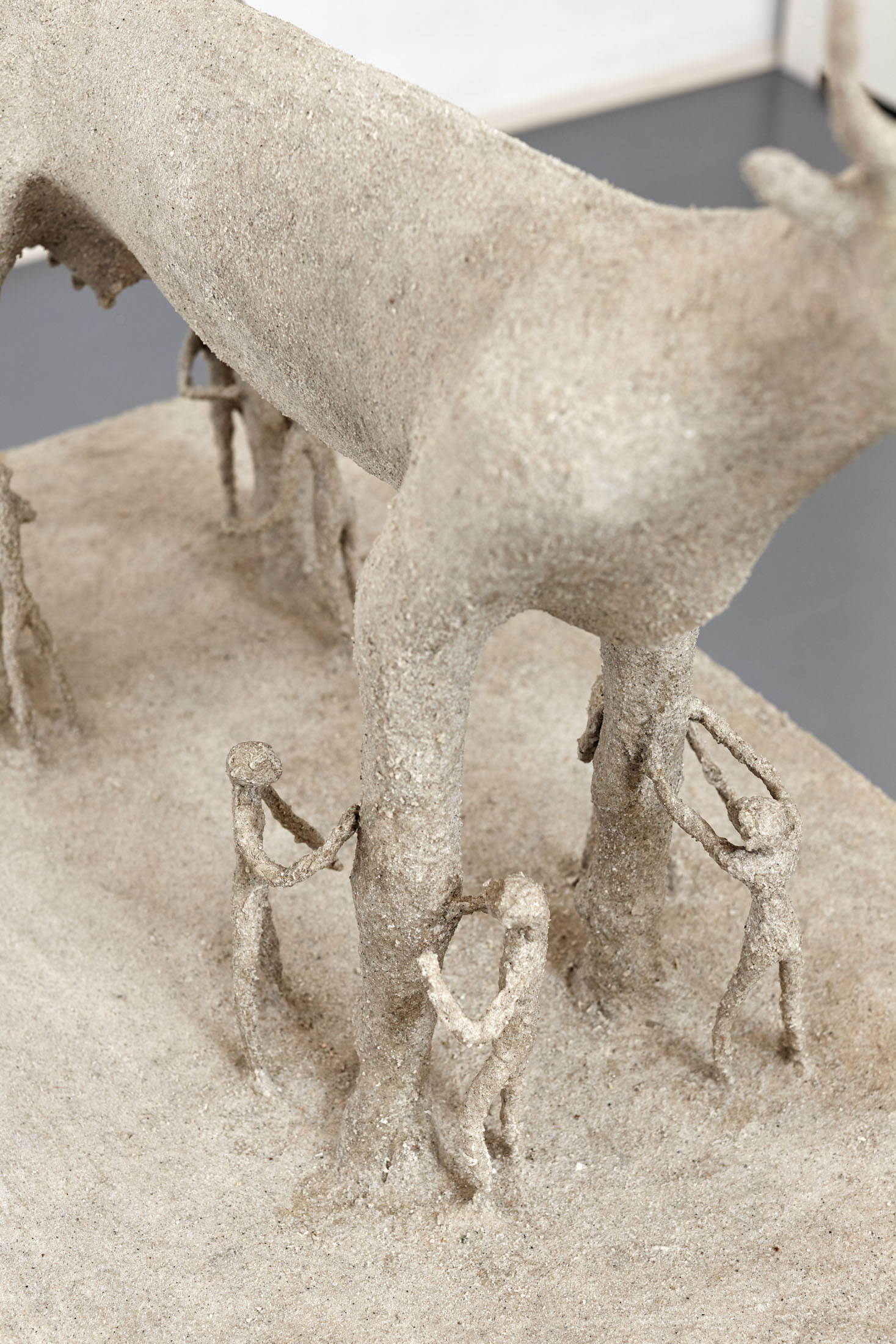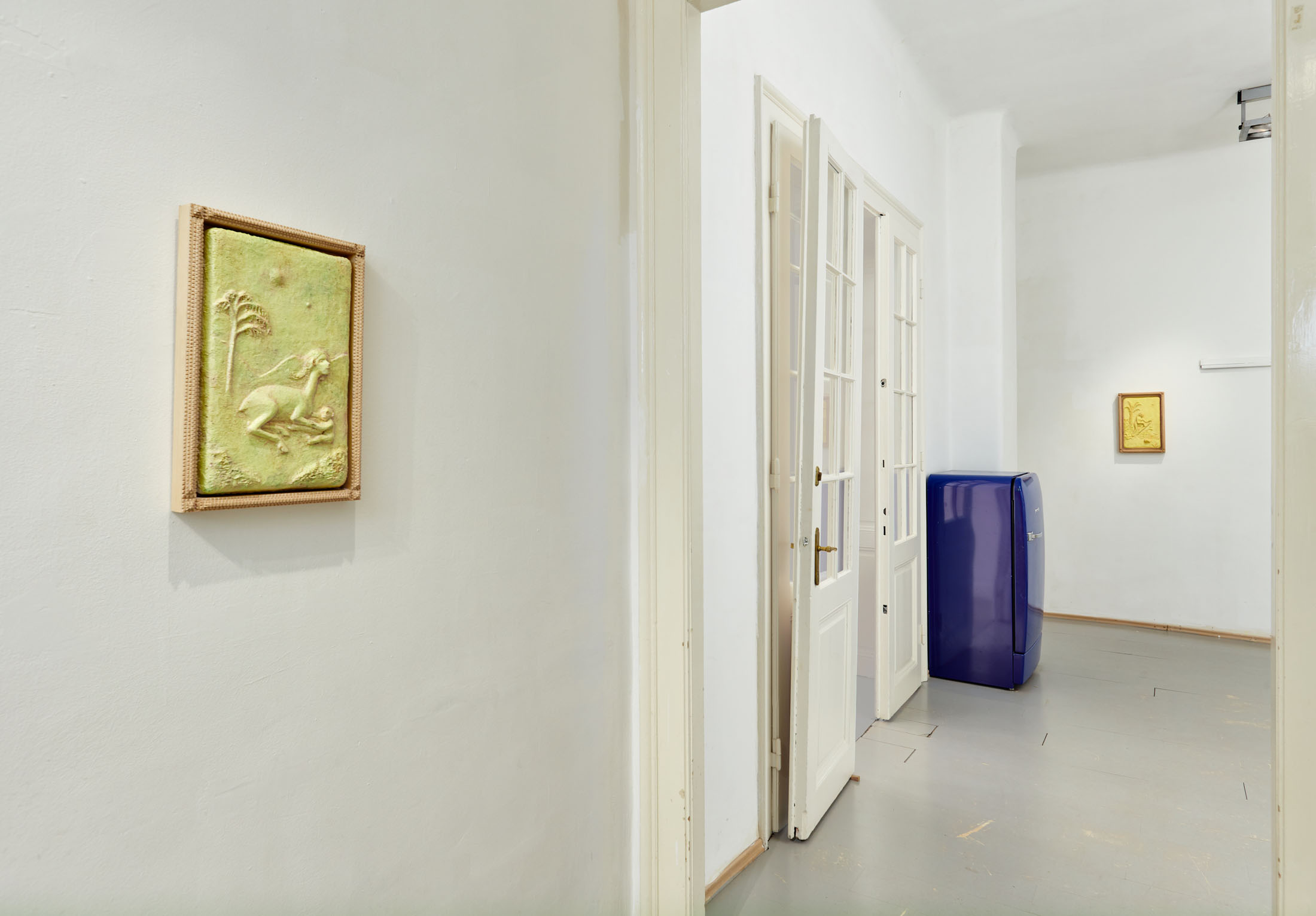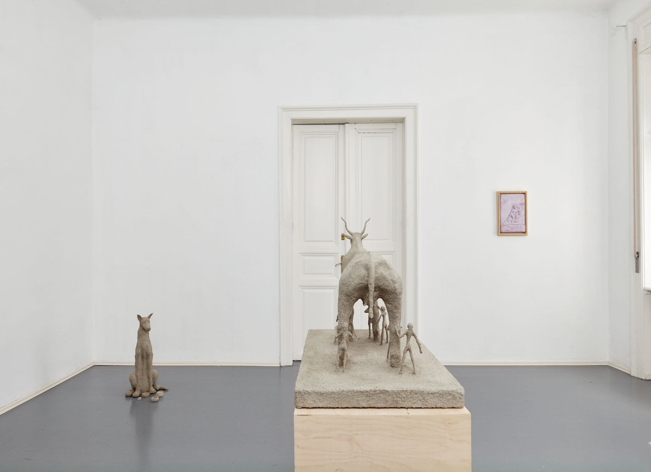 Tranker Kata’s first solo exhibition at Longtermhandstand unfolds through a series of new sculptures and hand-formed reliefs that draw on mythology, embodiment, and personal transformation. In Book of the Heavenly Cow, a timeless female figure takes shape, moving through layers of narrative and material, past and present. The exhibition is inspired by the Egyptian myth of the Book of the Heavenly Cow, in which the goddess Nut raises the sky above the earth to restore cosmic order after humanity’s rebellion. Tranker does not retell this story directly. Instead, she channels its atmosphere into tactile forms shaped by gesture, intuition, and memory. Her sculptures evoke a quiet aftermath—where the body holds the traces of both violence and healing. A series of wall reliefs follows the path of a primordial mother figure. Through bodily transformation, she becomes a vessel for the beginning of the world. These works explore the physical and symbolic layers of femininity, memory, and creation, combining lyrical detail with an elemental rawness. Tranker’s practice is rooted in process and repetition. Her works speak with a voice that is both intimate and ancient. Alongside this exhibition, she is currently featured in Habitat at the Hungarian National Gallery and was recently awarded the main prize at the Lokart Biennale in Pécs. Book of the Heavenly Cow invites viewers into a space where myth and matter meet, and where sculpture becomes a quiet, insistent act of world-making.