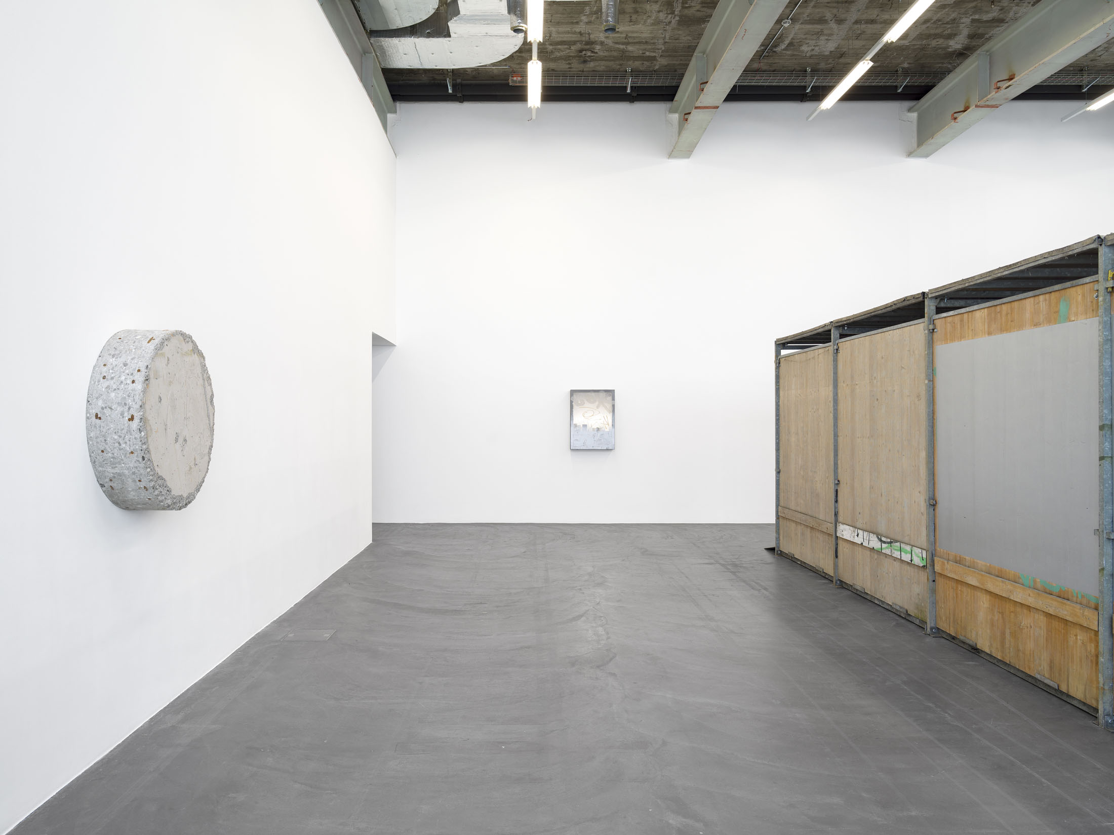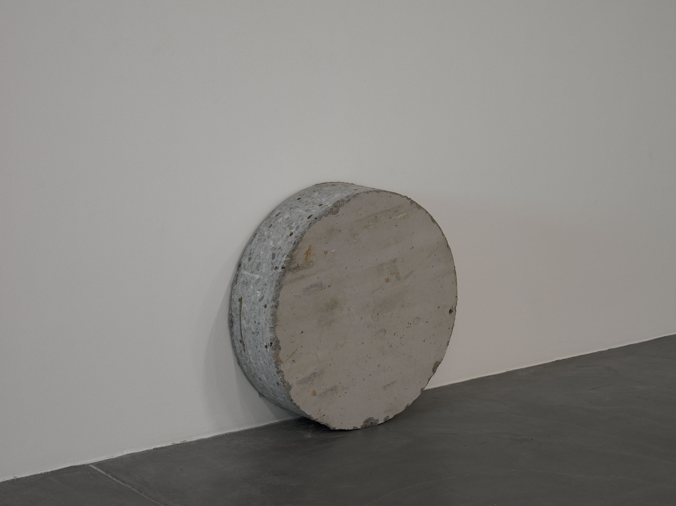 On the lower floor of Kunsthalle Zürich, a constellation of sculptures reassembles an urban landscape. Square Moon, 2025, rises above the exhibition space like a lamppost, and is placed in dialogue with light boxes from which the artist has erased the original signage. With Untitled (Holes), 2025, Lidén continues to employ her principle of détournement: the works consist of drill cores – concrete cylinders that are sections of urban deep tissue: the underground strata of streets, walls and foundations. Their unassuming title also echoes Lidén’s own artistic strategy, a practice of reversal, removal and detachment running through her entire artistic oeuvre.