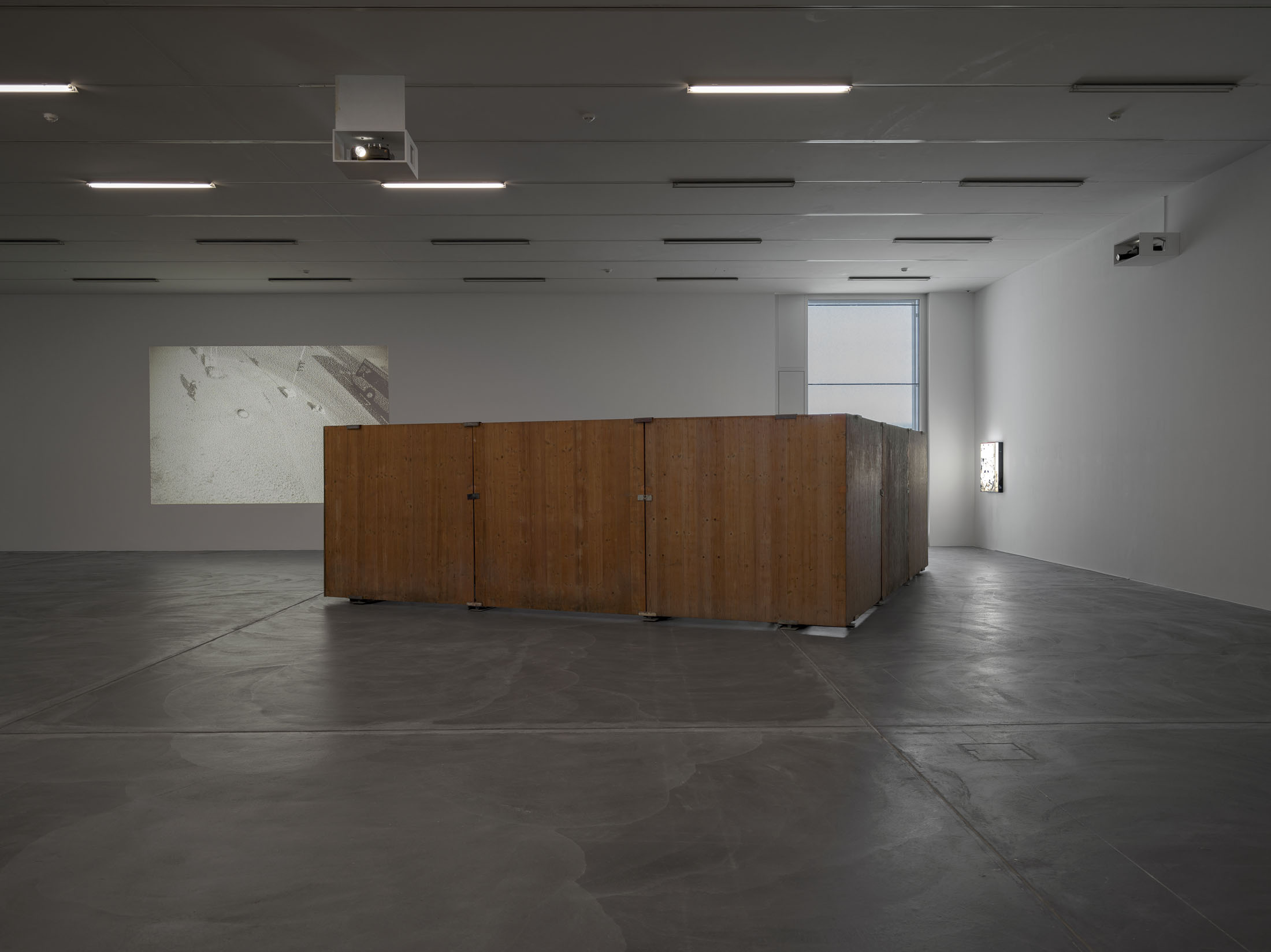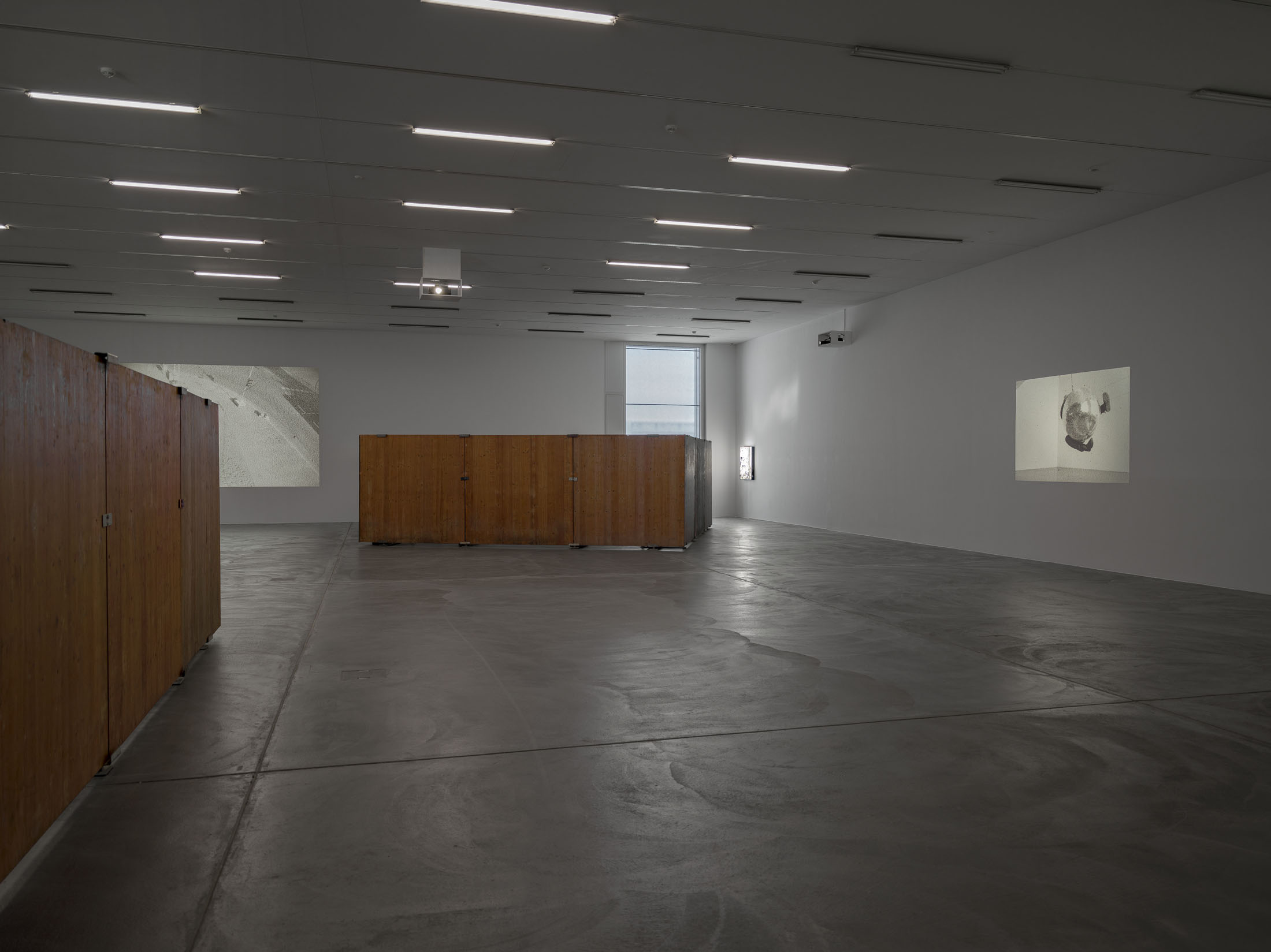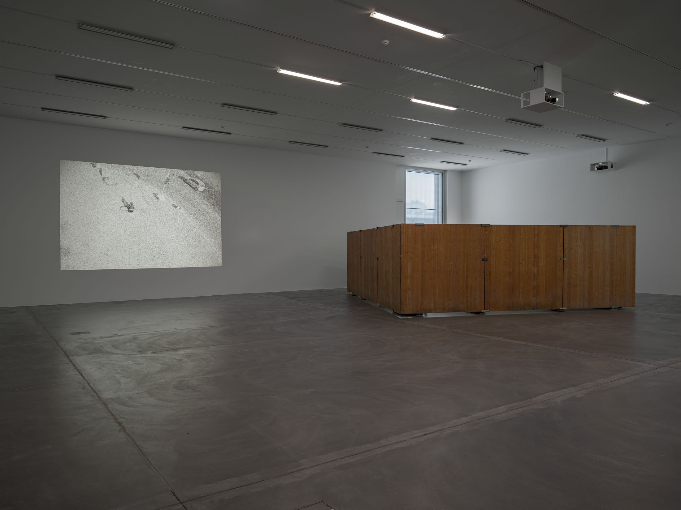 Finally, the artist’s own physical presence takes centre stage in large-format slide projections. The handmade slides – inkjet-printed video stills transferred to clear acetate, cut by hand and mounted – which are projected onto the walls in various sizes, show Lidén enacting new performative actions realised for this exhibition. The coarse-grained black-and-white images document the artist’s slapstick-like attempts to break free from social rules and conventions. Whether walking across a Zürich weir, repairing her bicycle in Berlin or transporting her works through the streets – “the question of re-appropriating privatised, urban space always somehow begins with the body, its ways of moving and the temporalities it engages,” says Lidén.