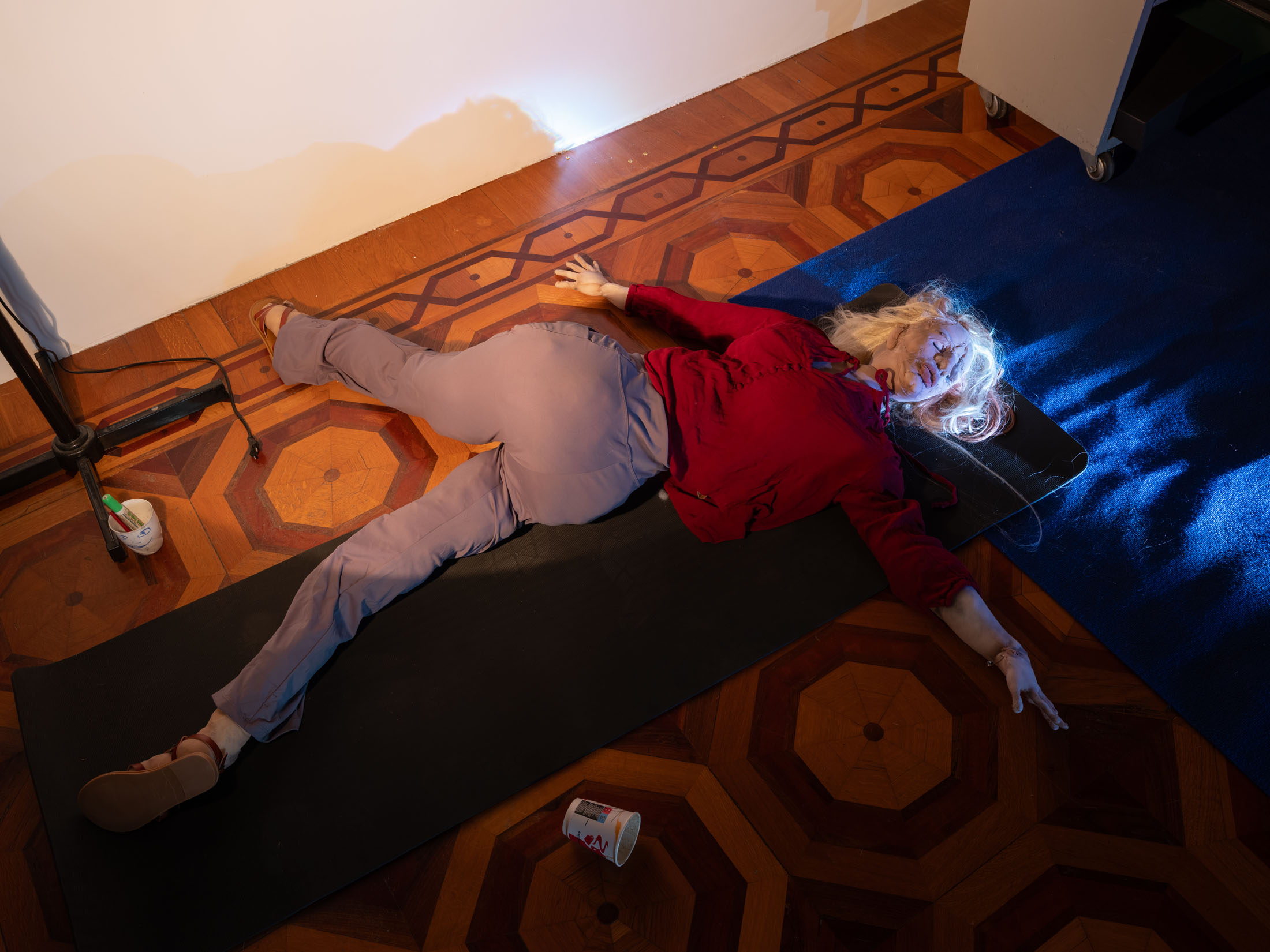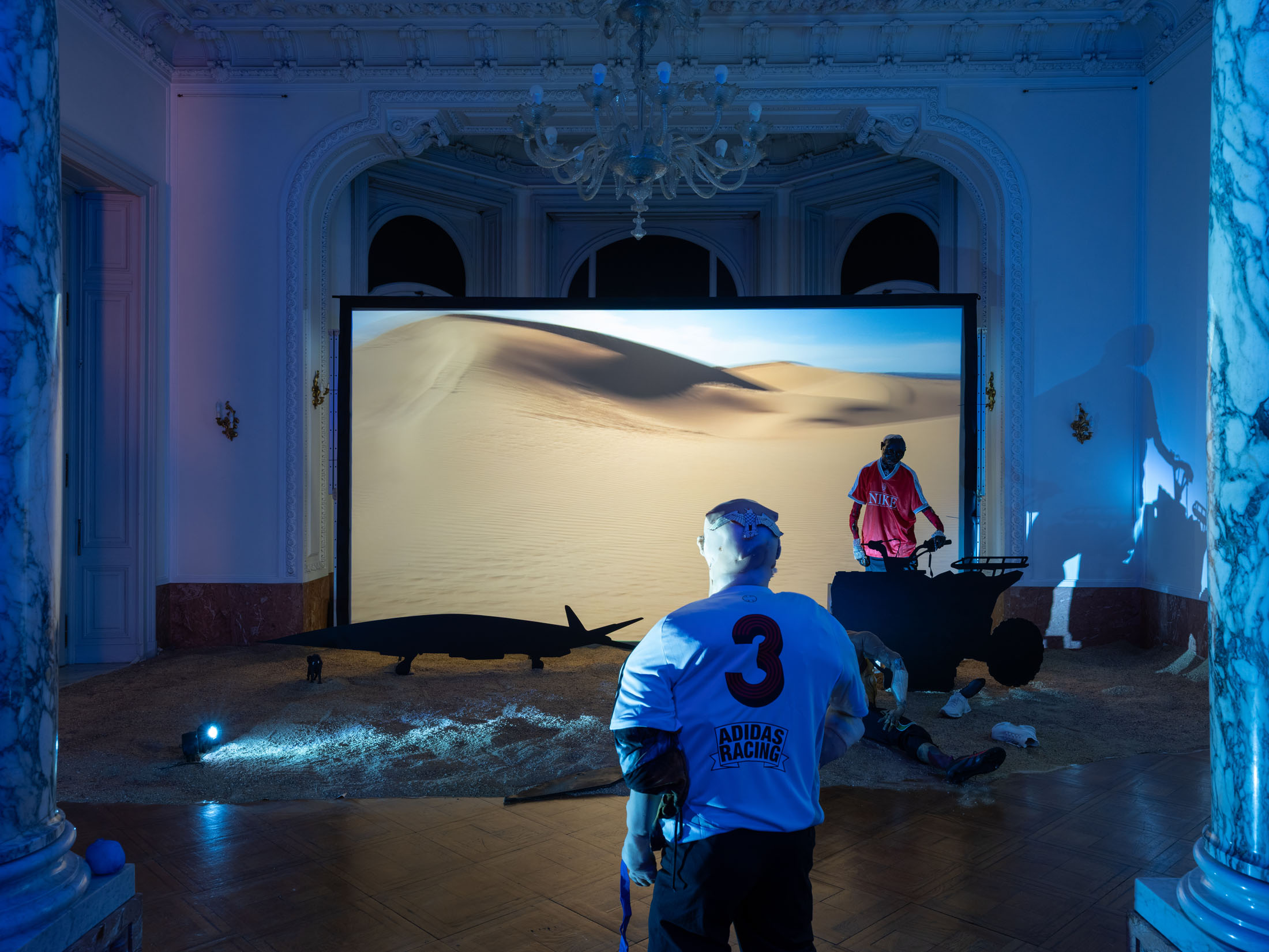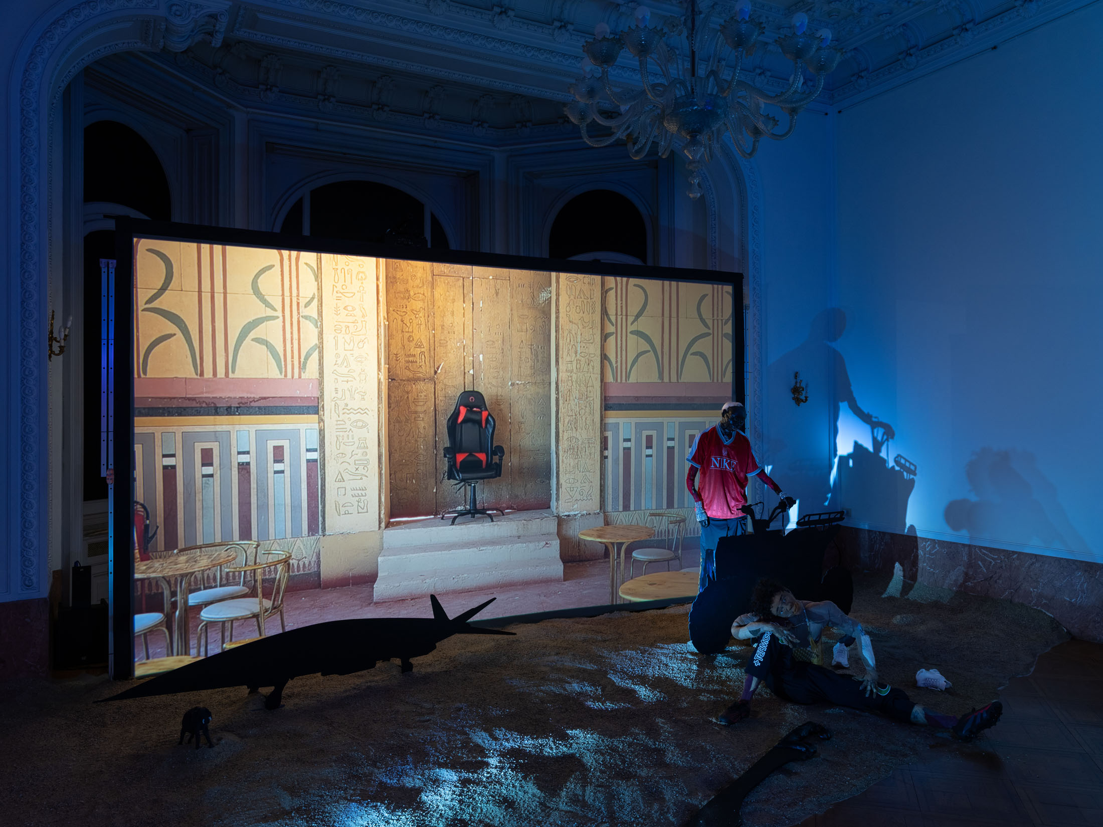 The exhibitionturns Villa Marainiinto film backstagesinspiredby the Atlas Studiosin Ouarzazate, Morocco, where from the 1980s onwards countless international film productions have stagedtheir visions of antiquity,empires,and exoticism.It unfolds as a sequence of environmentsthat evoke the apparatus of filmmaking—sets,costumes,lighting,and rehearsal spaces—while exposingthe mechanismsthrough which historyis constructed,staged and perpetuated over time.