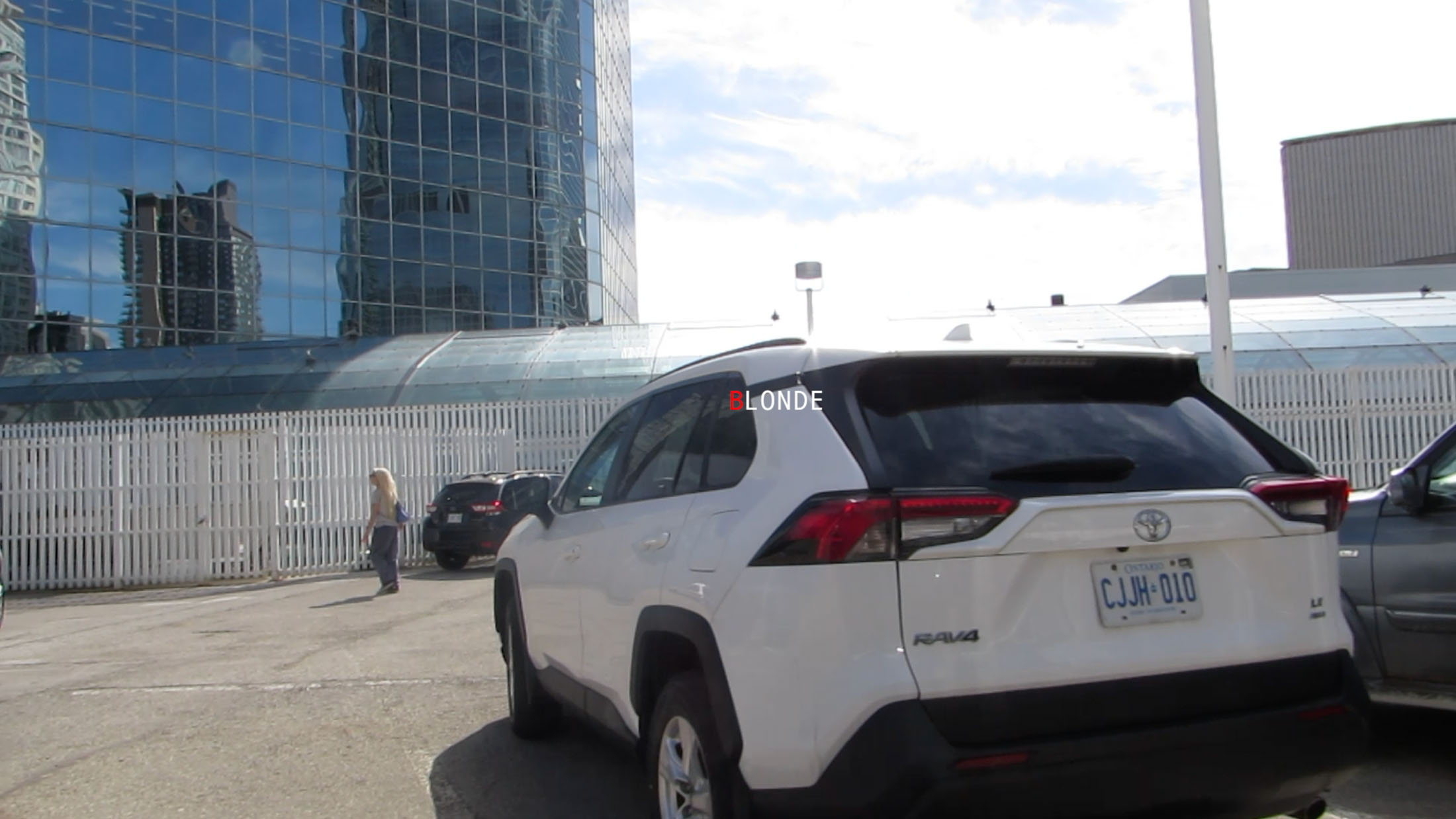 The film opens with Bri entering the Eaton Centre. A text overlay styled after a gaze calibration interface appears on screen, with each word centered and the first letter in red. The text quotes an excerpt from a late-1970’s Toronto Sun article about the mall shortly after its opening: “Whether you’re a serious shopper, a browser, a bargain-hunter, or merely one who likes to gaze at pretty sights, the new Eaton Centre has something for you. If you’re looking for a five-foot-two brunette, or a six-foot blonde, you can’t go wrong there. For the new giant climate-controlled city-within-a-city may be the largest single hangout for beautiful women this side of the beach at Rio de Janeiro. The place is lousy with them. They’re hanging over the railings in the multi-levelled mall, sitting at the fountain, sipping coffee in the cafes. And they’re strolling. Always strolling. The stream seems endless.”