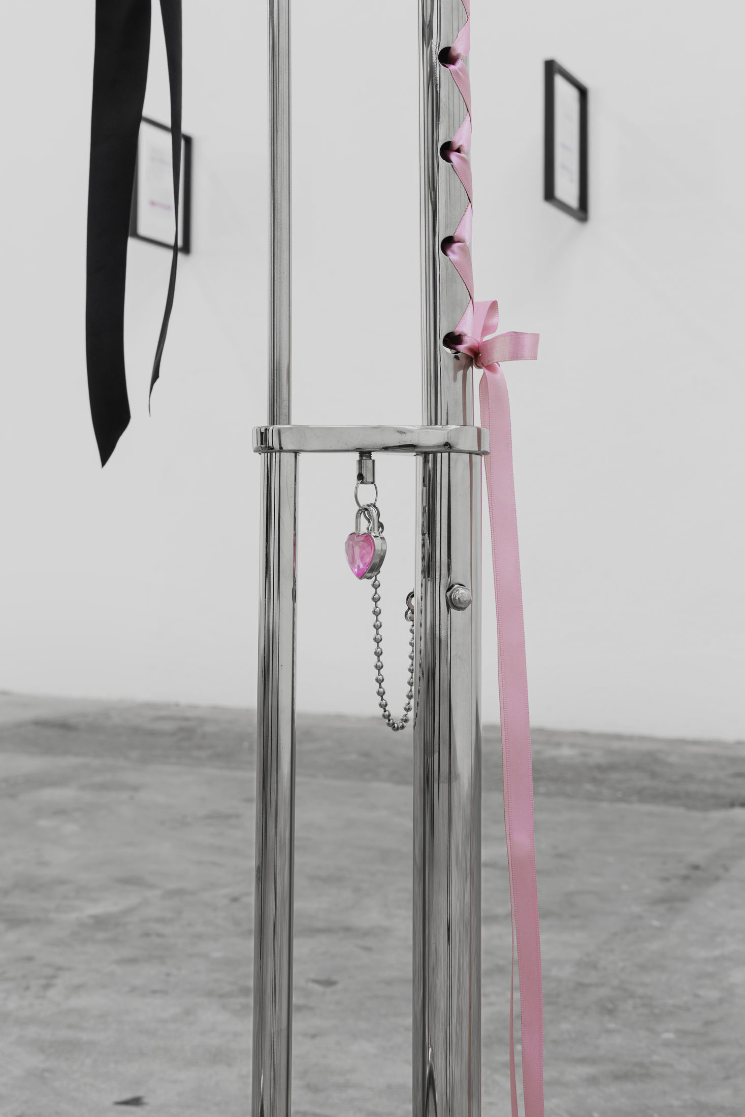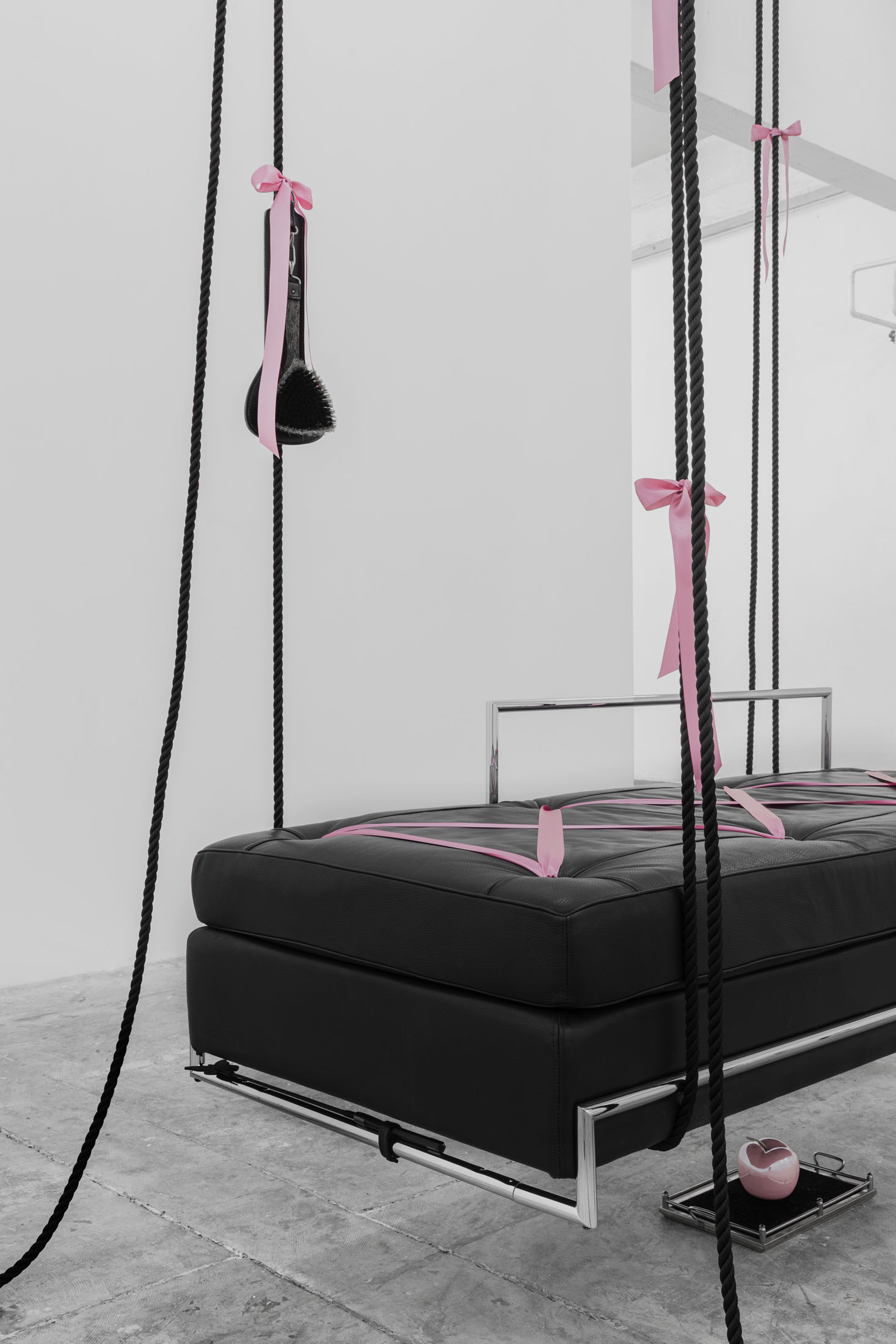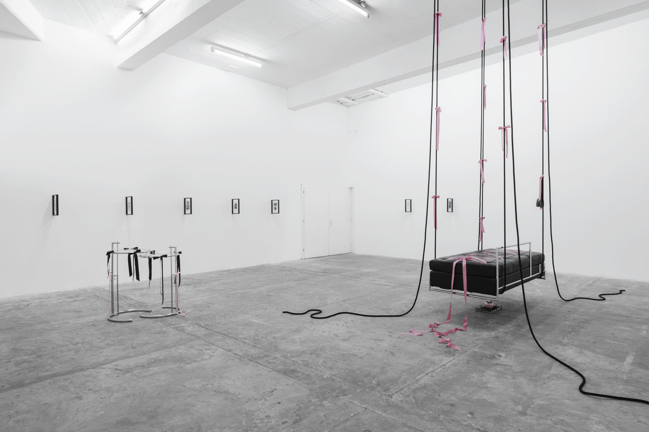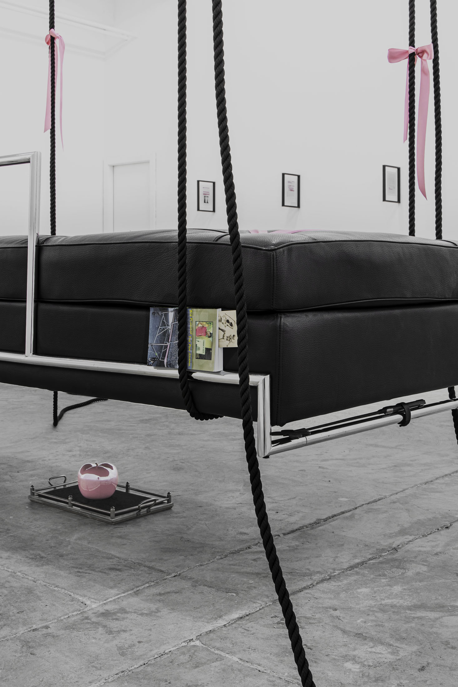 Lauryn Youden, Would you die tonight for love?, 2025, Bibendum Chair (1926), pink plaid skirt, black ribbons, black mooring line, heart locket necklace with red hair, 3x handforged nails, 77 × 93 × 77 cm, 370 × 93 × 77 cm (suspended)Lauryn Youden, Would you die tonight for love?, 2025, Bibendum Chair (1926), pink plaid skirt, black ribbons, black mooring line, heart locket necklace with red hair, 3x handforged nails, 77 × 93 × 77 cm, 370 × 93 × 77 cm (suspended)Lauryn Youden, I wanna hold the hand inside you, 2025, exhibition view, CIRCUIT Centre d’art contemporain, LausanneLauryn Youden, Of the love-moved wind; The exalting secrecies, 2025, Transat Chair (1927) with black faux crocodile skin, rose ribbons, black faux crocodile skin handbag (Claire’s), pink pepper spray holder, black Kubotan, pink pom pom keychain, black rape whistle keychain, Eiffel Tower keychain, book: NANA Manga by Ai Yazawa Volume (6), black mooring line, 71 × 55 × 106 cm, 390 × 55 × 106 cm (suspended)Lauryn Youden, Of the love-moved wind; The exalting secrecies, 2025, Transat Chair (1927) with black faux crocodile skin, rose ribbons, black faux crocodile skin handbag (Claire’s), pink pepper spray holder, black Kubotan, pink pom pom keychain, black rape whistle keychain, Eiffel Tower keychain, book: NANA Manga by Ai Yazawa Volume (6), black mooring line, 71 × 55 × 106 cm, 390 × 55 × 106 cm (suspended)Lauryn Youden, I wanna hold the hand inside you, 2025, exhibition view, CIRCUIT Centre d’art contemporain, LausanneLauryn Youden, I wanna hold the hand inside you, 2025, exhibition view, CIRCUIT Centre d’art contemporain, LausanneLauryn Youden, I wanna hold the hand inside you, 2025, exhibition view, CIRCUIT Centre d’art contemporain, LausanneLauryn Youden, I wanna hold the hand inside you, 2025, exhibition view, CIRCUIT Centre d’art contemporain, LausanneLauryn Youden, I wanna hold the hand inside you, 2025, exhibition view, CIRCUIT Centre d’art contemporain, LausanneLauryn Youden, siège d’amour (Edward VII), 2025, Day Bed (c. 1925), pink porcelain apple, velvet tray, rose ribbons, black mooring line, book: Bob Flanagan’s The Pain Journal, vintage lesbian BDSM photograph, horse hair brush, butterfly riding crop, 60 × 192 × 85 cm, 450 × 192 × 85 cm (suspended)Lauryn Youden, siège d’amour (Edward VII), 2025, Day Bed (c. 1925), pink porcelain apple, velvet tray, rose ribbons, black mooring line, book: Bob Flanagan’s The Pain Journal, vintage lesbian BDSM photograph, horse hair brush, butterfly riding crop, 60 × 192 × 85 cm, 450 × 192 × 85 cm (suspended)Lauryn Youden, siège d’amour (Edward VII), 2025, Day Bed (c. 1925), pink porcelain apple, velvet tray, rose ribbons, black mooring line, book: Bob Flanagan’s The Pain Journal, vintage lesbian BDSM photograph, horse hair brush, butterfly riding crop, 60 × 192 × 85 cm, 450 × 192 × 85 cm (suspended)Lauryn Youden, I wanna hold the hand inside you, 2025, exhibition view, CIRCUIT Centre d’art contemporain, LausanneLauryn Youden, I wanna hold the hand inside you, 2025, exhibition view, CIRCUIT Centre d’art contemporain, LausanneLauryn Youden, Hey Nana, if you and I were lovers, would we have been able to fill the emptiness by holding each other?, 2025, 2x E-1027 Adjustable Tables (1927), black ribbons, pink ribbons, glass engravings of Utena Revolutionary Girl kiss, red oil paint, 96.5 × 95 × 56 cmLauryn Youden, Hey Nana, if you and I were lovers, would we have been able to fill the emptiness by holding each other?, 2025, 2x E-1027 Adjustable Tables (1927), black ribbons, pink ribbons, glass engravings of Utena Revolutionary Girl kiss, red oil paint, 96.5 × 95 × 56 cmLauryn Youden, Hey Nana, if you and I were lovers, would we have been able to fill the emptiness by holding each other?, 2025, 2x E-1027 Adjustable Tables (1927), black ribbons, pink ribbons, glass engravings of Utena Revolutionary Girl kiss, red oil paint, 96.5 × 95 × 56 cmLauryn Youden, à lire avec les trois cigarettes oubliées, 2025, series of 12 pages from Peter Adam’s Eileen Gray: Her Life and Work, red ink, charcoal stained frames, 35 × 27.5 × 3 cm (each), dimensions variable (all 12x)Lauryn Youden, à lire avec les trois cigarettes oubliées, 2025, series of 12 pages from Peter Adam’s Eileen Gray: Her Life and Work, red ink, charcoal stained frames, 35 × 27.5 × 3 cm (each), dimensions variable (all 12x)Lauryn Youden, à lire avec les trois cigarettes oubliées, 2025, series of 12 pages from Peter Adam’s Eileen Gray: Her Life and Work, red ink, charcoal stained frames, 35 × 27.5 × 3 cm (each), dimensions variable (all 12x)Lauryn Youden, à lire avec les trois cigarettes oubliées, 2025, series of 12 pages from Peter Adam’s Eileen Gray: Her Life and Work, red ink, charcoal stained frames, 35 × 27.5 × 3 cm (each), dimensions variable (all 12x)Lauryn Youden, à lire avec les trois cigarettes oubliées, 2025, series of 12 pages from Peter Adam’s Eileen Gray: Her Life and Work, red ink, charcoal stained frames, 35 × 27.5 × 3 cm (each), dimensions variable (all 12x)Lauryn Youden, à lire avec les trois cigarettes oubliées, 2025, series of 12 pages from Peter Adam’s Eileen Gray: Her Life and Work, red ink, charcoal stained frames, 35 × 27.5 × 3 cm (each), dimensions variable (all 12x)Lauryn Youden, I wanna hold the hand inside you, 2025, exhibition view, CIRCUIT Centre d’art contemporain, LausanneLauryn Youden, à lire avec les trois cigarettes oubliées (p. 183) (detail: The E.1027 table as a bedside table with adjustable height), 2025, exhibition poster F4 Éditions Circuit, 2025
