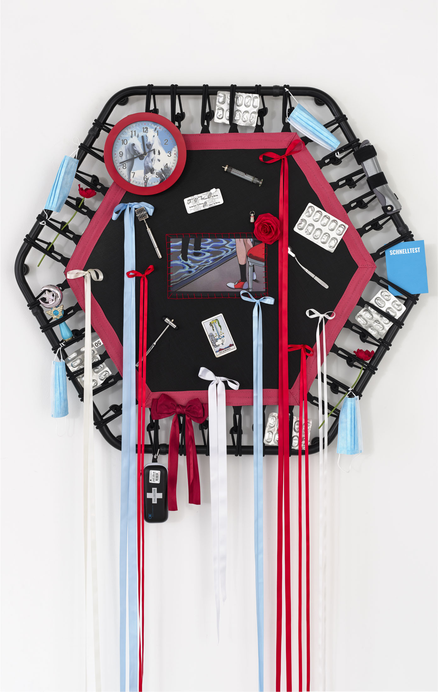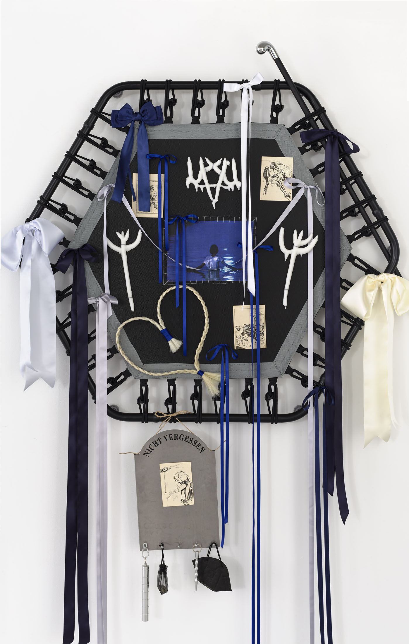 Lauryn Youden, Even A Worm Will Turn, 2025, exhibition view, Number 1 Main Road, Berlin, Photo: Eric TschnernowLauryn Youden, Even A Worm Will Turn, 2025, exhibition view, Number 1 Main Road, Berlin, Photo: Eric TschnernowLauryn Youden, Even A Worm Will Turn, 2025, exhibition view, Number 1 Main Road, Berlin, Photo: Eric TschnernowLauryn Youden, Even A Worm Will Turn, 2025, exhibition view, Number 1 Main Road, Berlin, Photo: Eric TschnernowLauryn Youden, Even A Worm Will Turn, 2025, exhibition view, Number 1 Main Road, Berlin, Photo: Eric TschnernowLauryn Youden, Even A Worm Will Turn, 2025, exhibition view, Number 1 Main Road, Berlin, Photo: Eric TschnernowLauryn Youden, Even A Worm Will Turn, 2025, exhibition view, Number 1 Main Road, Berlin, Photo: Eric TschnernowLauryn Youden, Even A Worm Will Turn, 2025, exhibition view, Number 1 Main Road, Berlin, Photo: Eric TschnernowLauryn Youden, Even A Worm Will Turn, 2025, exhibition view, Number 1 Main Road, Berlin, Photo: Eric TschnernowLauryn Youden, Even A Worm Will Turn, 2025, exhibition view, Number 1 Main Road, Berlin, Photo: Eric TschnernowLauryn Youden, Even A Worm Will Turn, 2025, exhibition view, Number 1 Main Road, Berlin, Photo: Eric TschnernowLauryn Youden, Even A Worm Will Turn, 2025, exhibition view, Number 1 Main Road, Berlin, Photo: Eric TschnernowLauryn Youden, Even A Worm Will Turn, 2025, exhibition view, Number 1 Main Road, Berlin, Photo: Eric TschnernowLauryn Youden, Enough Rope, black mooring rope, wooden stool, pink and black ribbons book: Joy of the Worm by Drew Daniels sound piece: Yes, forsooth: I wish you joy o’ the worm made in collaboration with Reece Cox, 22.39 min loop, dimensions variable, 2025, Photo: Eric TschnernowLauryn Youden, Enough Rope, black mooring rope, wooden stool, pink and black ribbons book: Joy of the Worm by Drew Daniels sound piece: Yes, forsooth: I wish you joy o’ the worm made in collaboration with Reece Cox, 22.39 min loop, dimensions variable, 2025, Photo: Eric TschnernowLauryn Youden, Enough Rope, black mooring rope, wooden stool, pink and black ribbons book: Joy of the Worm by Drew Daniels sound piece: Yes, forsooth: I wish you joy o’ the worm made in collaboration with Reece Cox, 22.39 min loop, dimensions variable, 2025, Photo: Eric TschnernowLauryn Youden, Enough Rope, black mooring rope, wooden stool, pink and black ribbons book: Joy of the Worm by Drew Daniels sound piece: Yes, forsooth: I wish you joy o’ the worm made in collaboration with Reece Cox, 22.39 min loop, dimensions variable, 2025, Photo: Eric TschnernowLauryn Youden, Enough Rope, black mooring rope, wooden stool, pink and black ribbons book: Joy of the Worm by Drew Daniels sound piece: Yes, forsooth: I wish you joy o’ the worm made in collaboration with Reece Cox, 22.39 min loop, dimensions variable, 2025, Photo: Eric TschnernowLauryn Youden, Synapthanumenon. The Absolute Destiny Apocalypse, blue SportPlus Fitness Trampoline for home, tulle, BACKUP PLAN ONESTEP Emergency Contraception pill, rose petals, Revolutionary Girl Utena patches, ribbons, metal chain leash, blue heart gem butt plug, blue net bag full of supplements, blue steel kubotan self defence weapon, bottle of Trimipramin-neuraxpharm, two giant safety pins, Justice tarot card, 166 x 57 x 215 cm, 2025, Photo: Eric TschnernowLauryn Youden, Synapthanumenon. The Absolute Destiny Apocalypse, blue SportPlus Fitness Trampoline for home, tulle, BACKUP PLAN ONESTEP Emergency Contraception pill, rose petals, Revolutionary Girl Utena patches, ribbons, metal chain leash, blue heart gem butt plug, blue net bag full of supplements, blue steel kubotan self defence weapon, bottle of Trimipramin-neuraxpharm, two giant safety pins, Justice tarot card, 166 x 57 x 215 cm, 2025, Photo: Eric TschnernowLauryn Youden, Synapthanumenon. The Absolute Destiny Apocalypse, blue SportPlus Fitness Trampoline for home, tulle, BACKUP PLAN ONESTEP Emergency Contraception pill, rose petals, Revolutionary Girl Utena patches, ribbons, metal chain leash, blue heart gem butt plug, blue net bag full of supplements, blue steel kubotan self defence weapon, bottle of Trimipramin-neuraxpharm, two giant safety pins, Justice tarot card, 166 x 57 x 215 cm, 2025, Photo: Eric TschnernowLauryn Youden, Pony Boy, pink SportPlus Fitness Trampoline for home, horse clock, Naloxone Kit, Ace of Swords tarot card, Gabrilen 50mg (ketoprofen) blister pack, wrist brace, 5 x Probio Max DF blister packs, 2 x Neurological Sensory Muscle Testing Tool (pinwheel), reflex hammer, sailor moon wand (gift from Belle Santos), 4 x blue medical mask, Revolutionary Girl Utena patch, ribbons, 2 x artificial poppies, Save a Heart Emergency Aspirin Pill Fob, hand sewn ribbon bow, antique glass syringe (gift from Pom), book: SCHNELLTEST by Ipek Burçak, 127 x 52 x 215 cm, 2025, Photo: Eric TschnernowLauryn Youden, Pony Boy, pink SportPlus Fitness Trampoline for home, horse clock, Naloxone Kit, Ace of Swords tarot card, Gabrilen 50mg (ketoprofen) blister pack, wrist brace, 5 x Probio Max DF blister packs, 2 x Neurological Sensory Muscle Testing Tool (pinwheel), reflex hammer, sailor moon wand (gift from Belle Santos), 4 x blue medical mask, Revolutionary Girl Utena patch, ribbons, 2 x artificial poppies, Save a Heart Emergency Aspirin Pill Fob, hand sewn ribbon bow, antique glass syringe (gift from Pom), book: SCHNELLTEST by Ipek Burçak, 127 x 52 x 215 cm, 2025, Photo: Eric TschnernowLauryn Youden, Pony Boy, pink SportPlus Fitness Trampoline for home, horse clock, Naloxone Kit, Ace of Swords tarot card, Gabrilen 50mg (ketoprofen) blister pack, wrist brace, 5 x Probio Max DF blister packs, 2 x Neurological Sensory Muscle Testing Tool (pinwheel), reflex hammer, sailor moon wand (gift from Belle Santos), 4 x blue medical mask, Revolutionary Girl Utena patch, ribbons, 2 x artificial poppies, Save a Heart Emergency Aspirin Pill Fob, hand sewn ribbon bow, antique glass syringe (gift from Pom), book: SCHNELLTEST by Ipek Burçak, 127