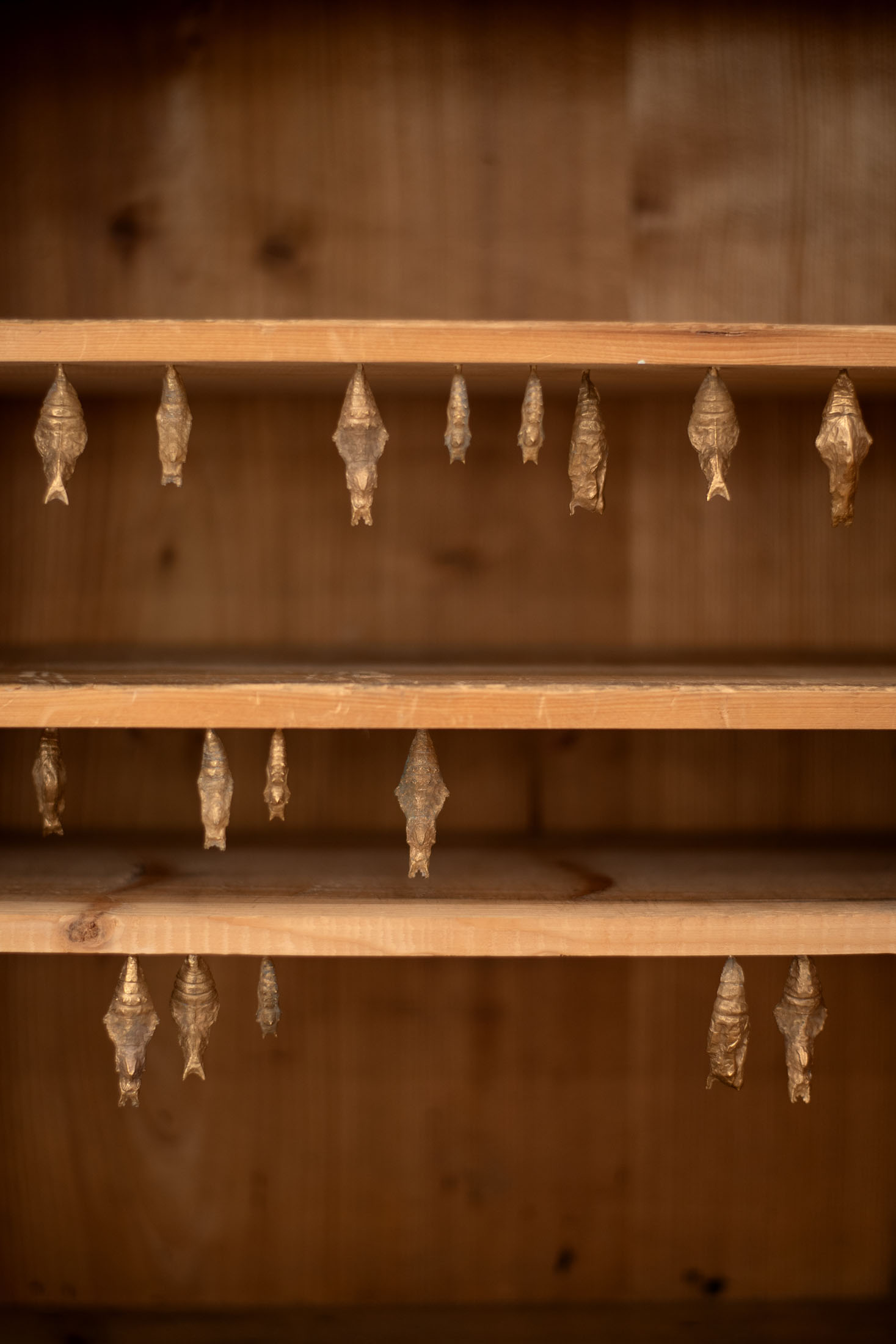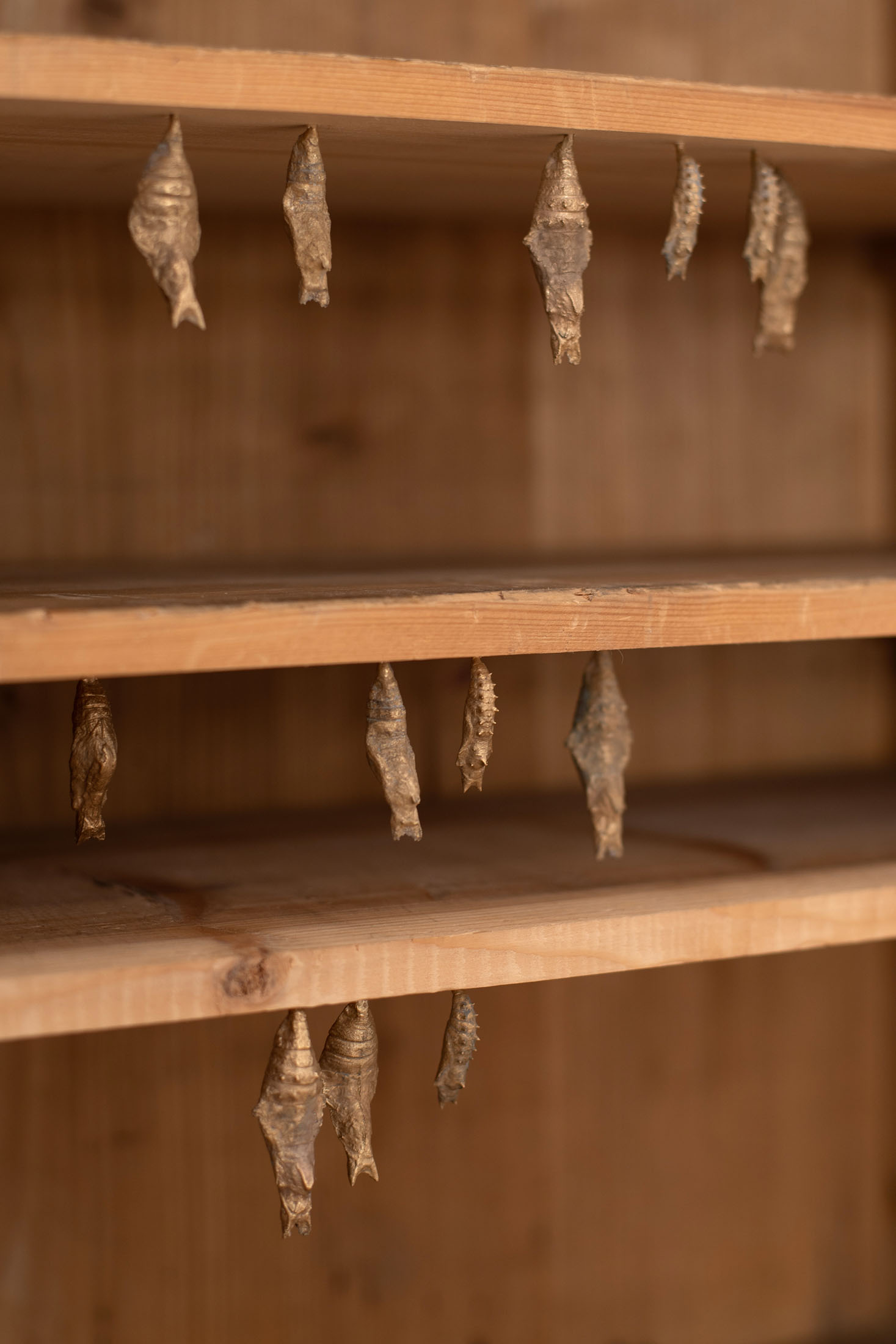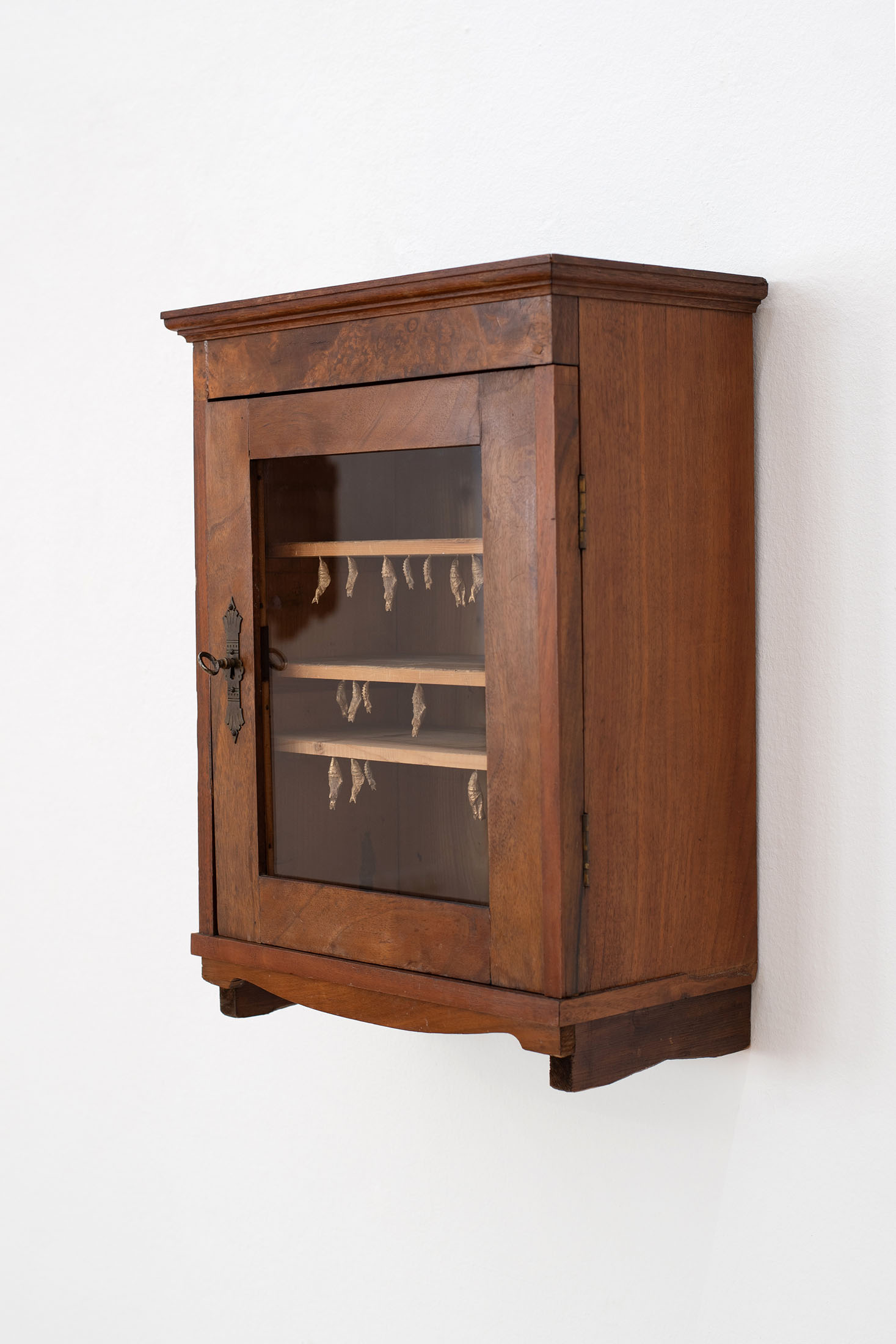 Lea Grebe, Gabinet II (cocoons), Wood, bronze, glass, 53 × 38 × 20 cm, 2025