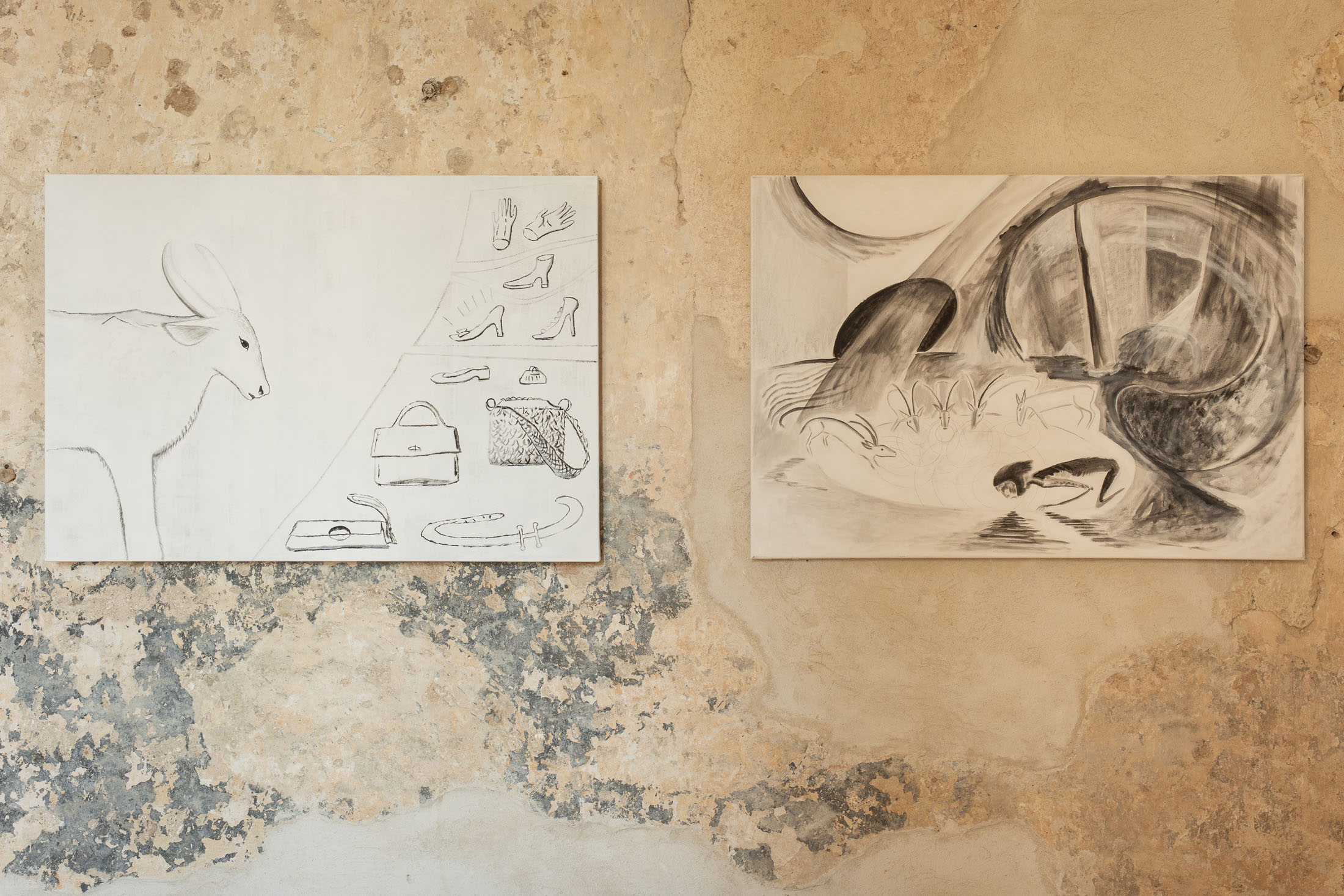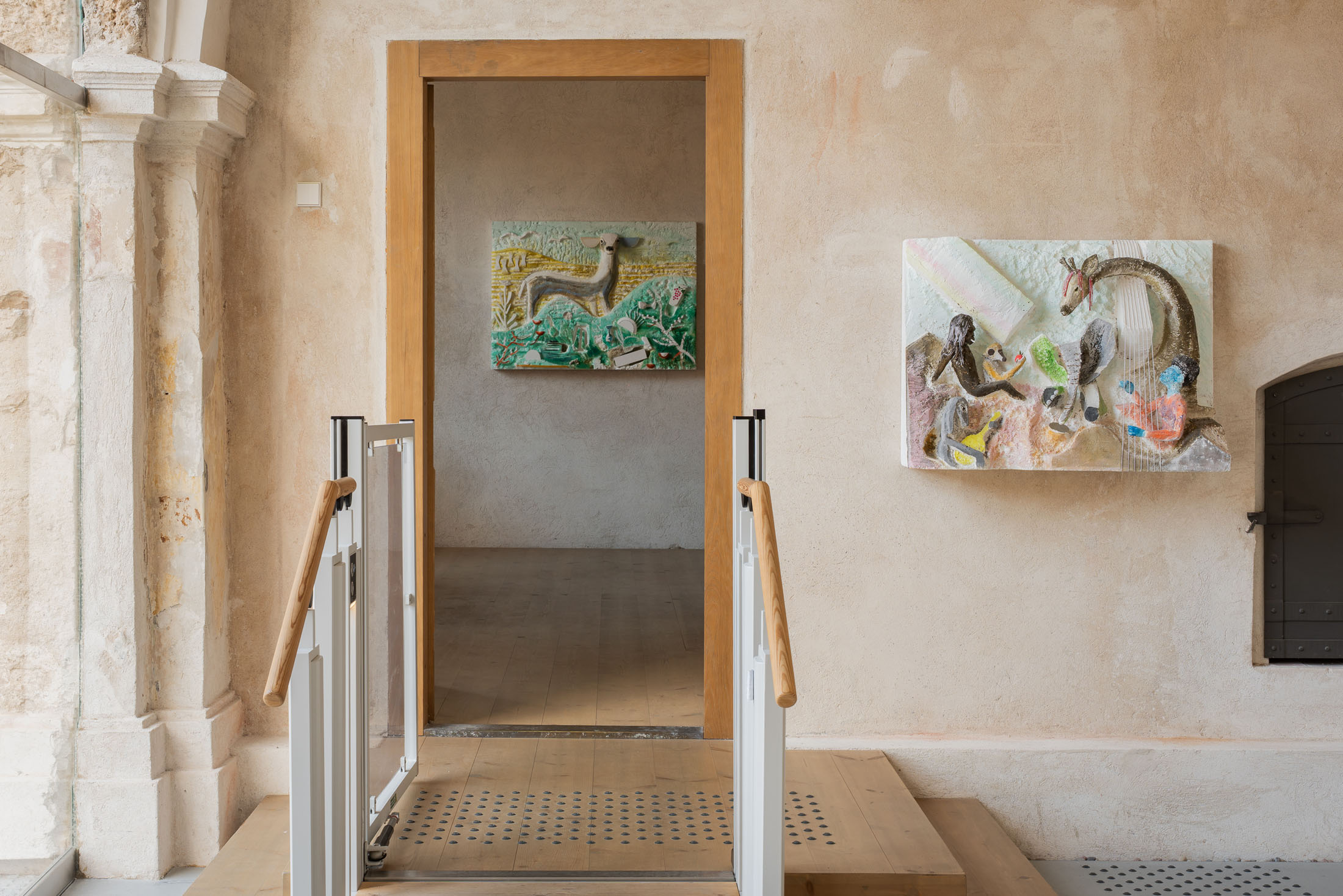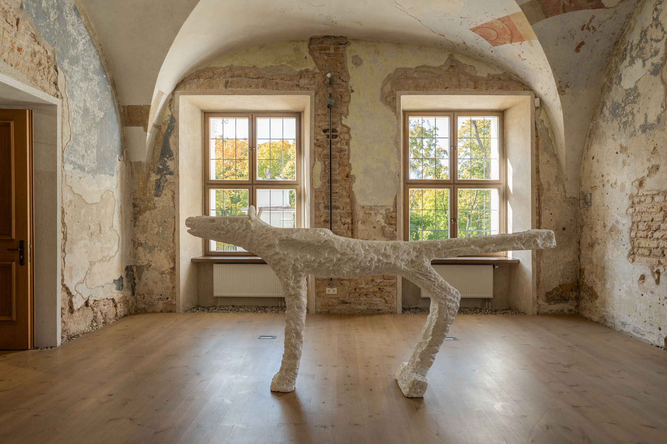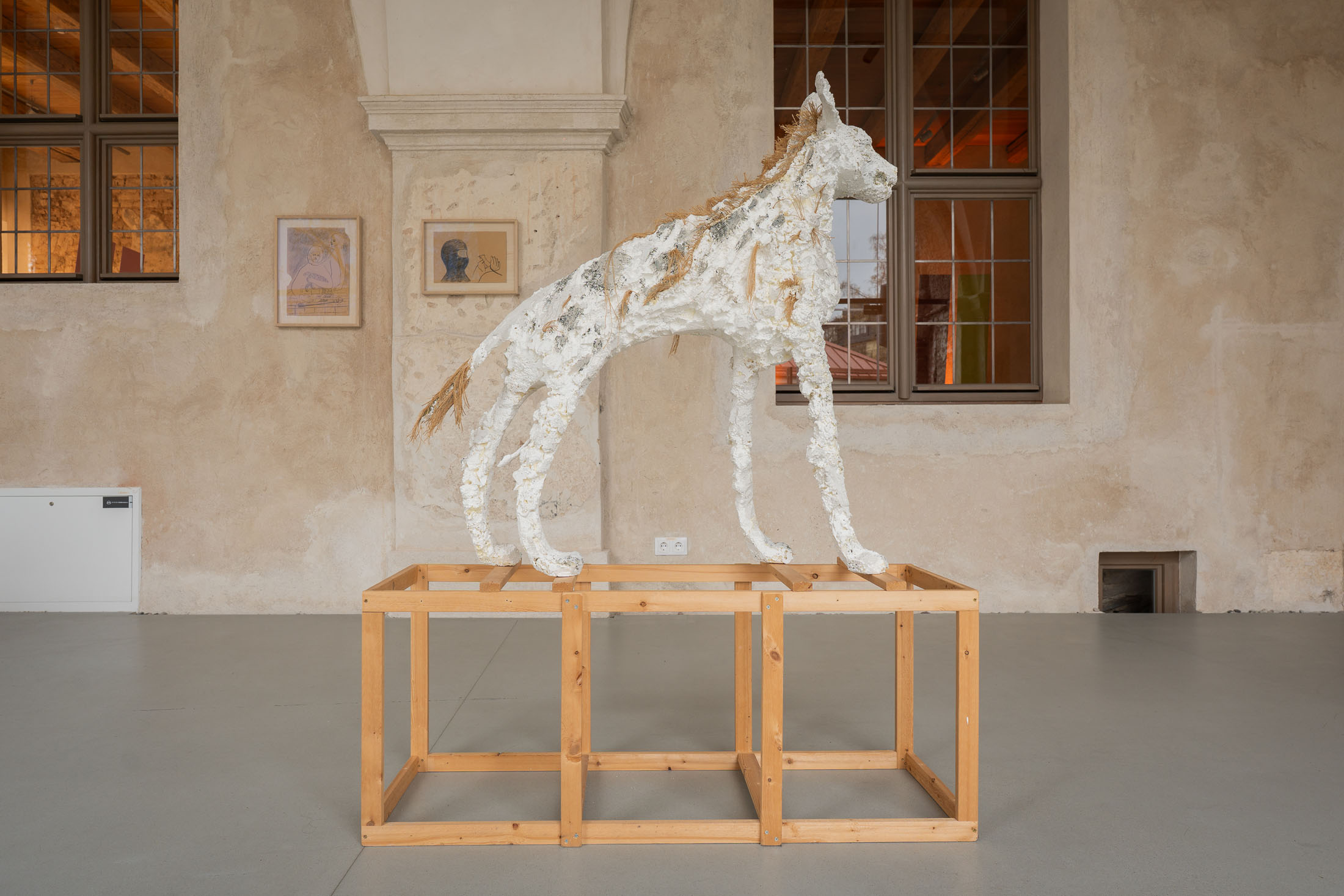 ‘You don’t just touch something once’, observed the German–Iraqi artist and animal rights activist Lin May Saeed (1973–2023). This statement, part of a broader commentary on her creative process, serves both as an enigmatic introduction to Saeed’s exhibition on the 1st Floor Northern Gallery of Sapieha Palace and as a conceptual summary of the works on view – a fragment of her artistic legacy. Saeed’s creative and personal ambition to renounce an anthropocentric relationship with non-human life raises the question of the limits of human possibility and of humanity itself. In her artistic practice, this manifests through sustained and attentive engagement with matter and through a consistent rethinking of the depiction of humans, other animals, and their relationship, drawing on ancient traditions of representation while always imagining a more just future. The sculptures, reliefs, paintings, and drawings in the exhibition embody this idea – emphasising touch as the charged centre of encounter between the works and their viewers.
