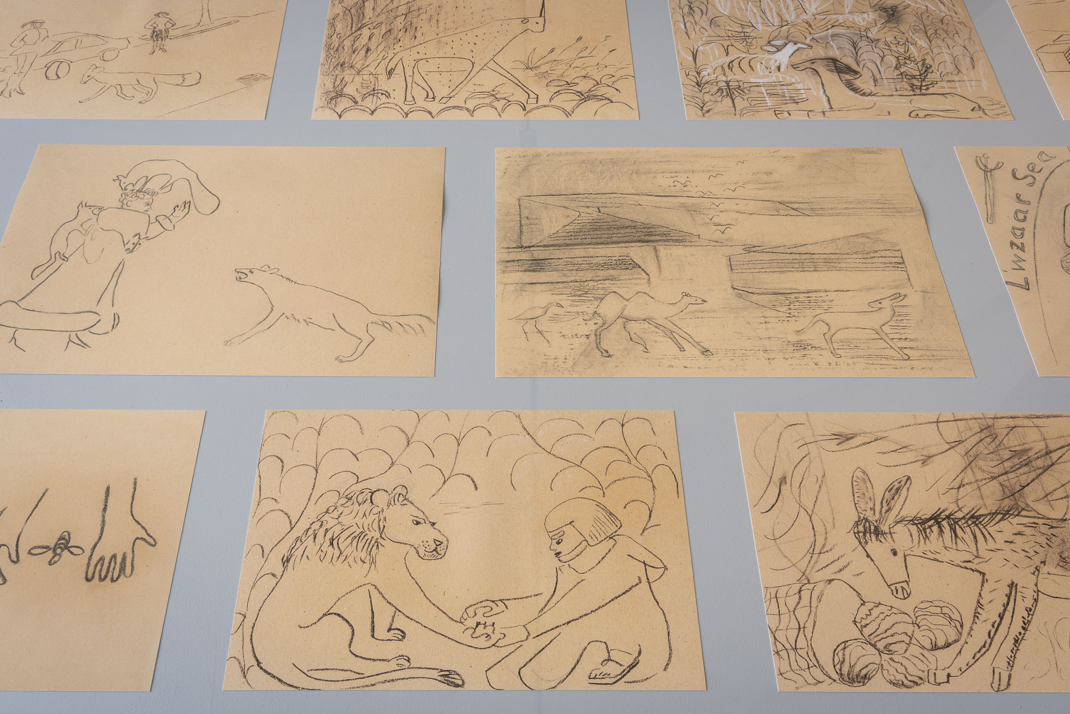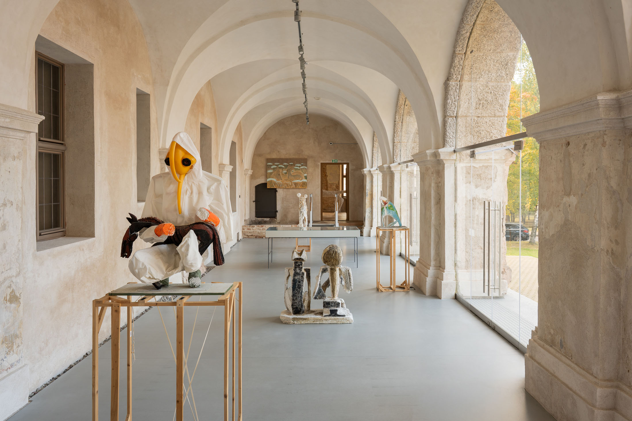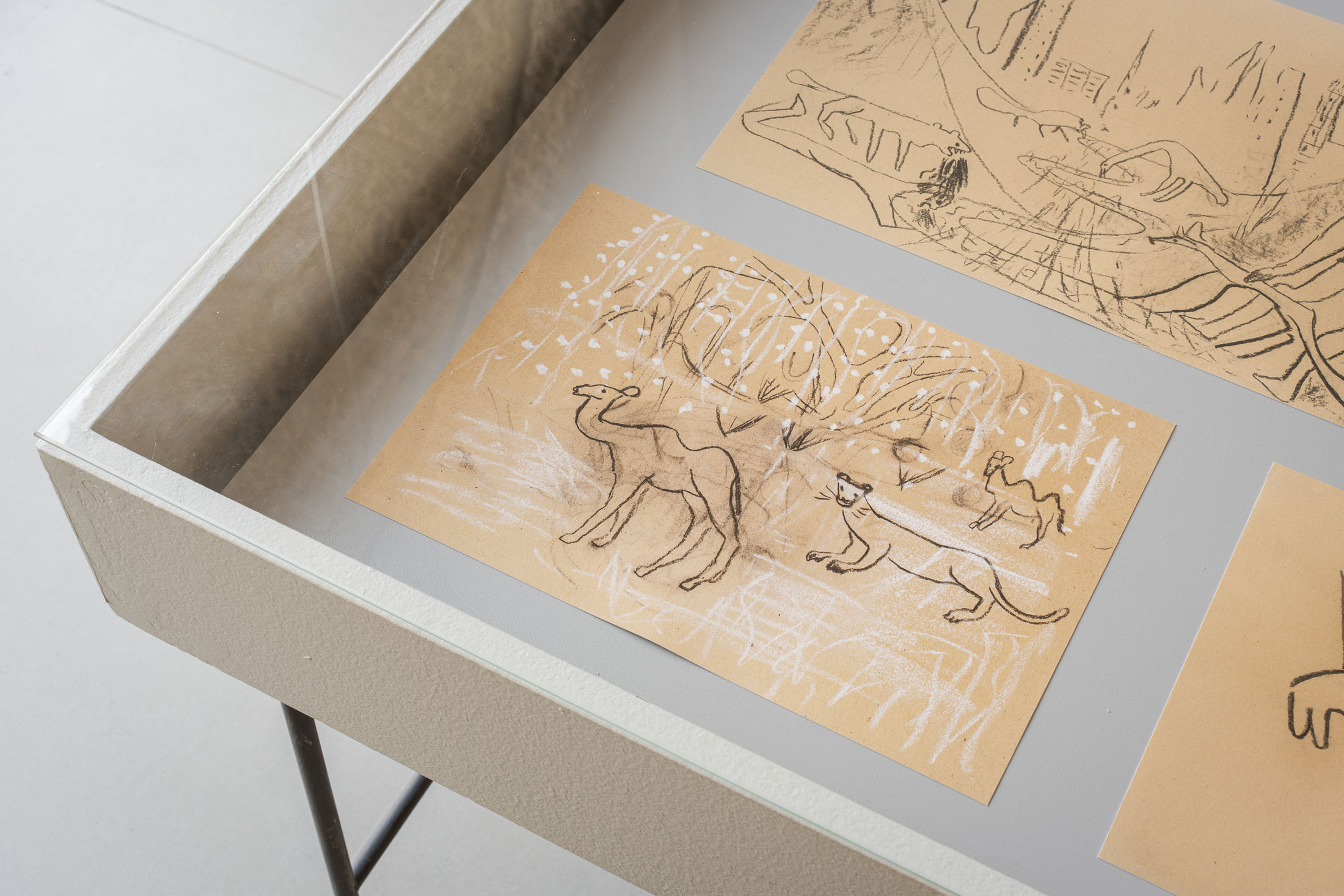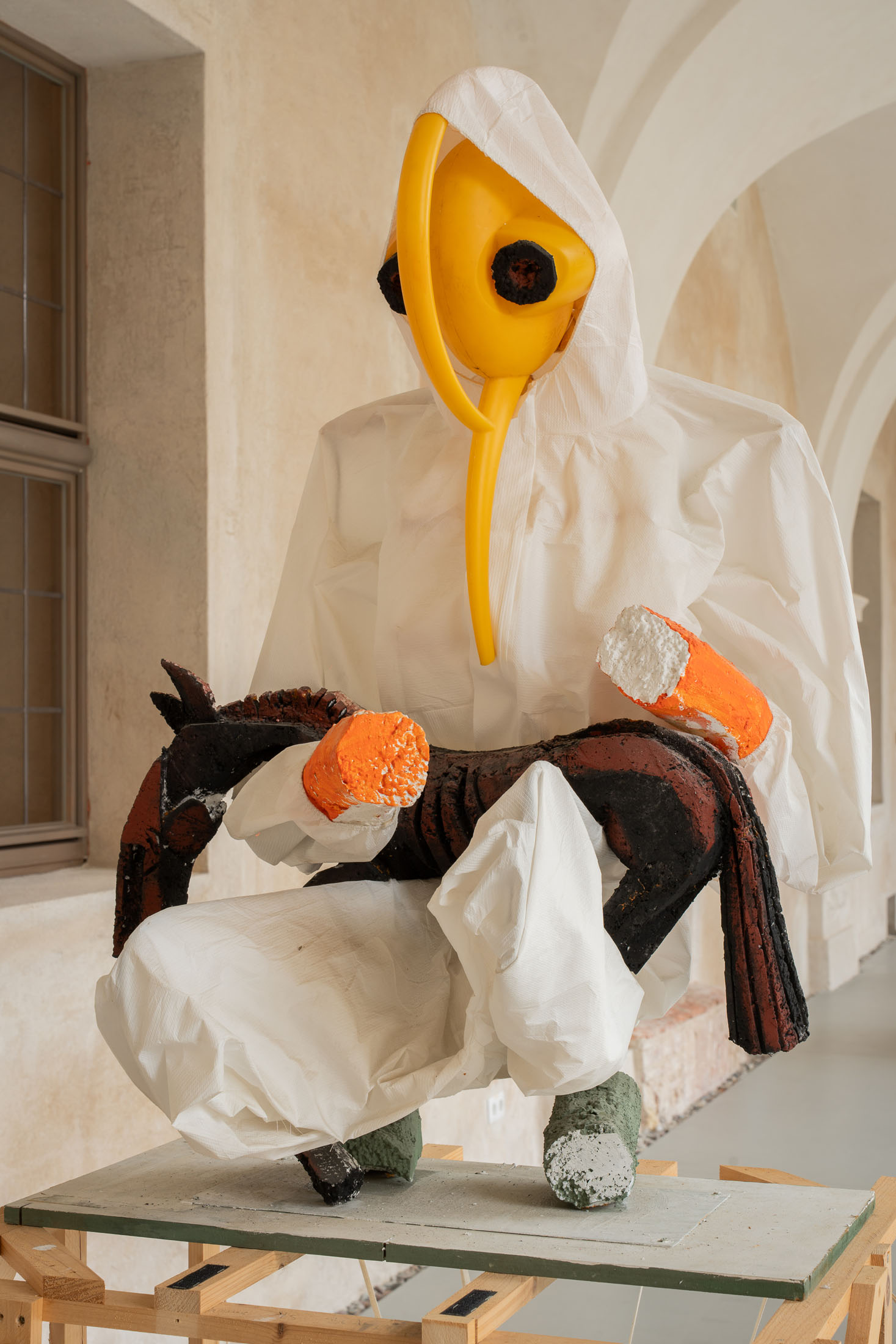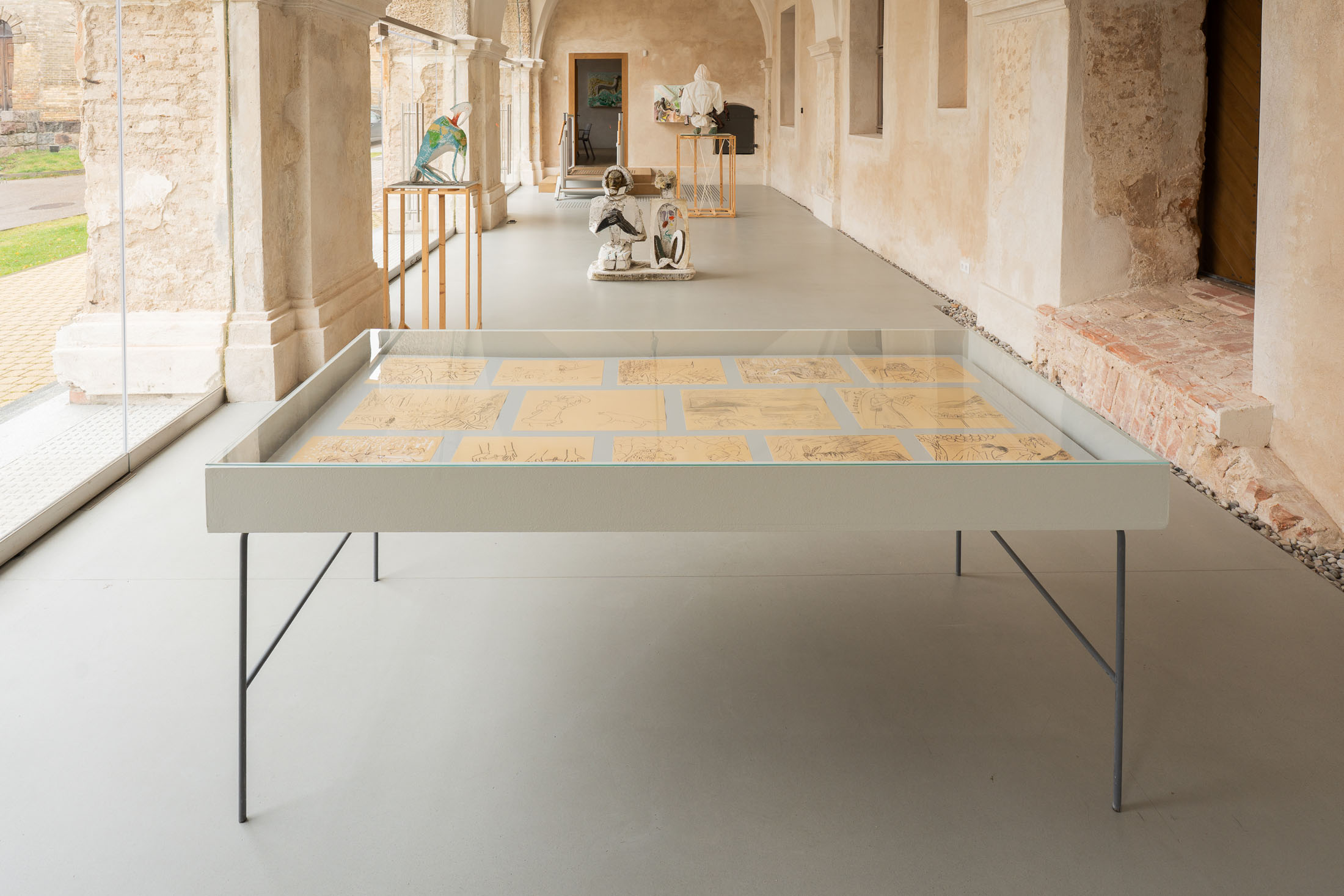 ‘You don’t just touch something once’, observed the German–Iraqi artist and animal rights activist Lin May Saeed (1973–2023). This statement, part of a broader commentary on her creative process, serves both as an enigmatic introduction to Saeed’s exhibition on the 1st Floor Northern Gallery of Sapieha Palace and as a conceptual summary of the works on view – a fragment of her artistic legacy. Saeed’s creative and personal ambition to renounce an anthropocentric relationship with non-human life raises the question of the limits of human possibility and of humanity itself. In her artistic practice, this manifests through sustained and attentive engagement with matter and through a consistent rethinking of the depiction of humans, other animals, and their relationship, drawing on ancient traditions of representation while always imagining a more just future. The sculptures, reliefs, paintings, and drawings in the exhibition embody this idea – emphasising touch as the charged centre of encounter between the works and their viewers.