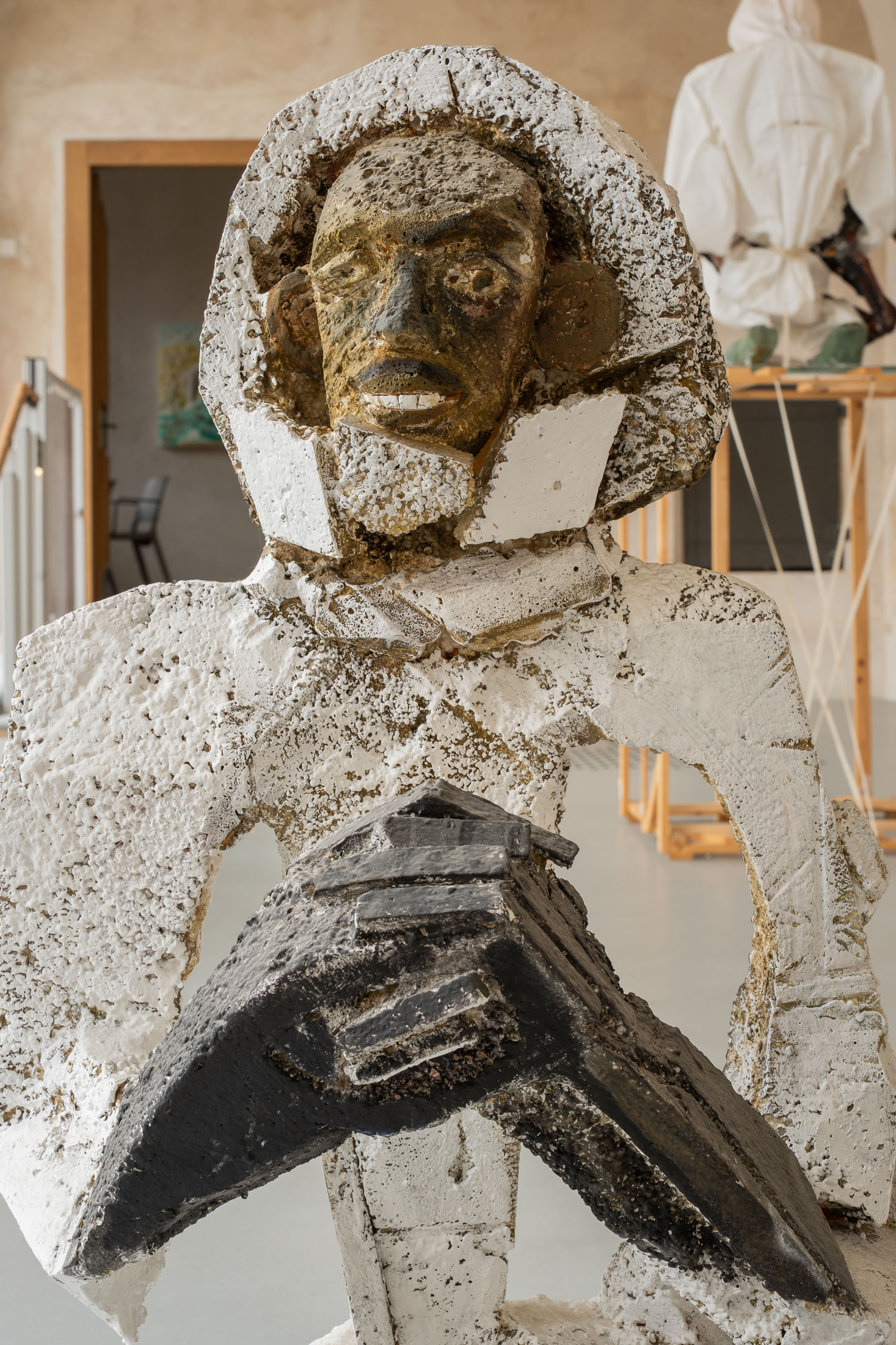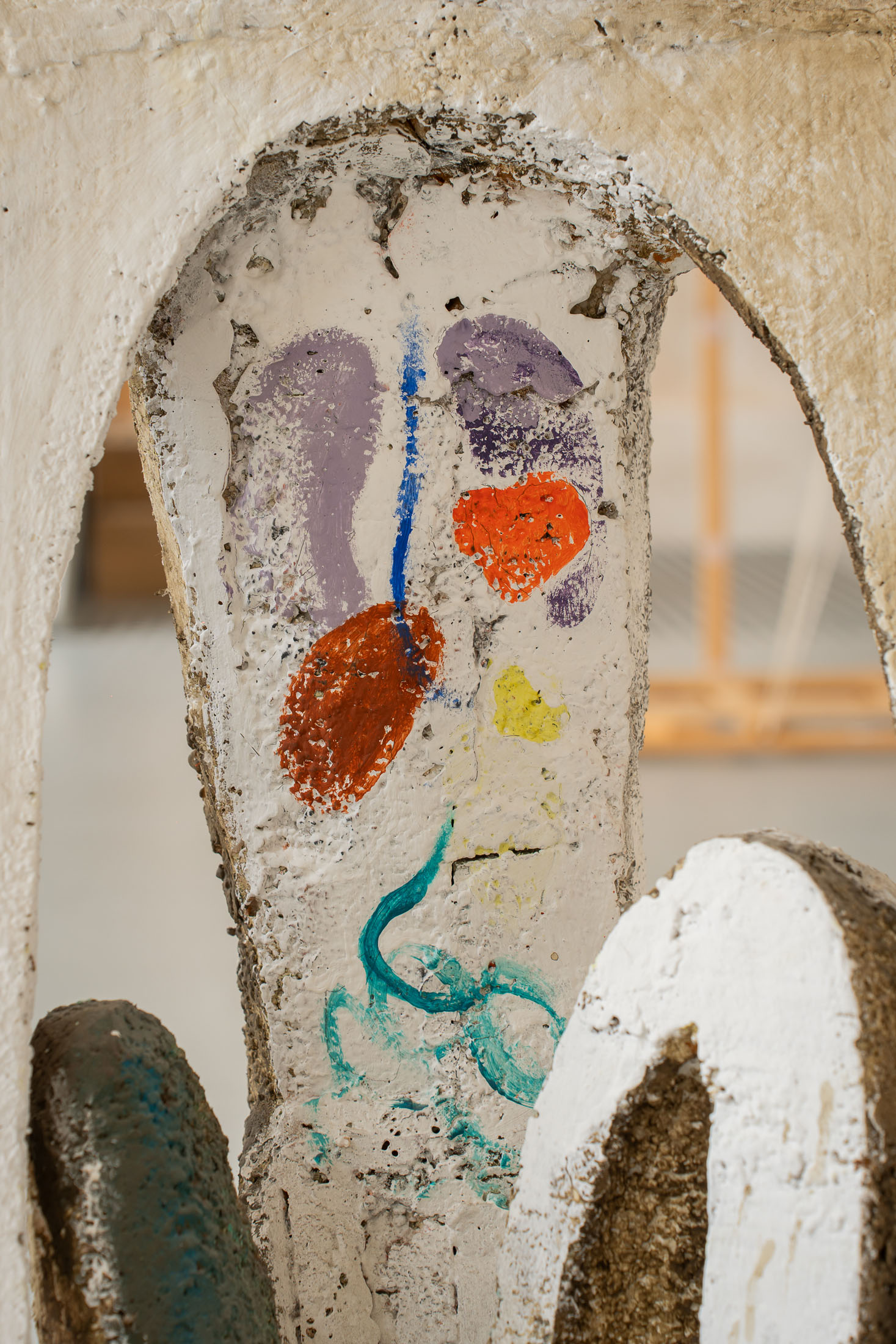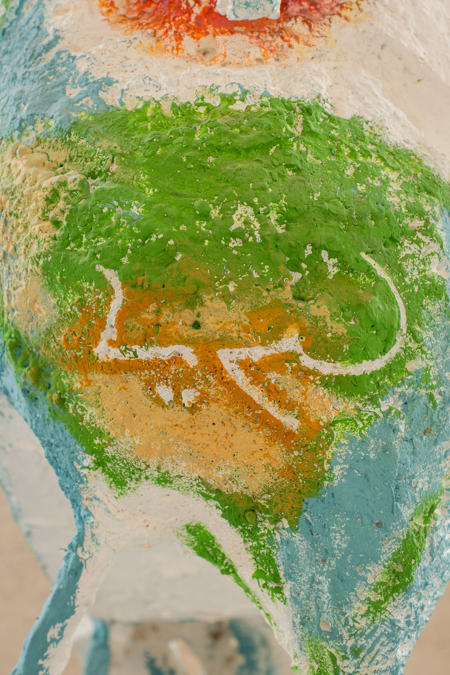 The very materiality of Saeed’s works unsettles conventional notions of distance. For her sculptures and reliefs, she turns to polystyrene, commonly found in hardware stores as insulation and sealing material. Though prone to crumbling into particles when handled carelessly, it is at the same time unnaturally durable: resistant to decay, it can persist for decades. This contradiction reveals its problematic status – born of fossil fuel extraction, toxic in composition, and burdening the future with its virtually imperishable presence. As Saeed herself observed, such a material should not exist at all.