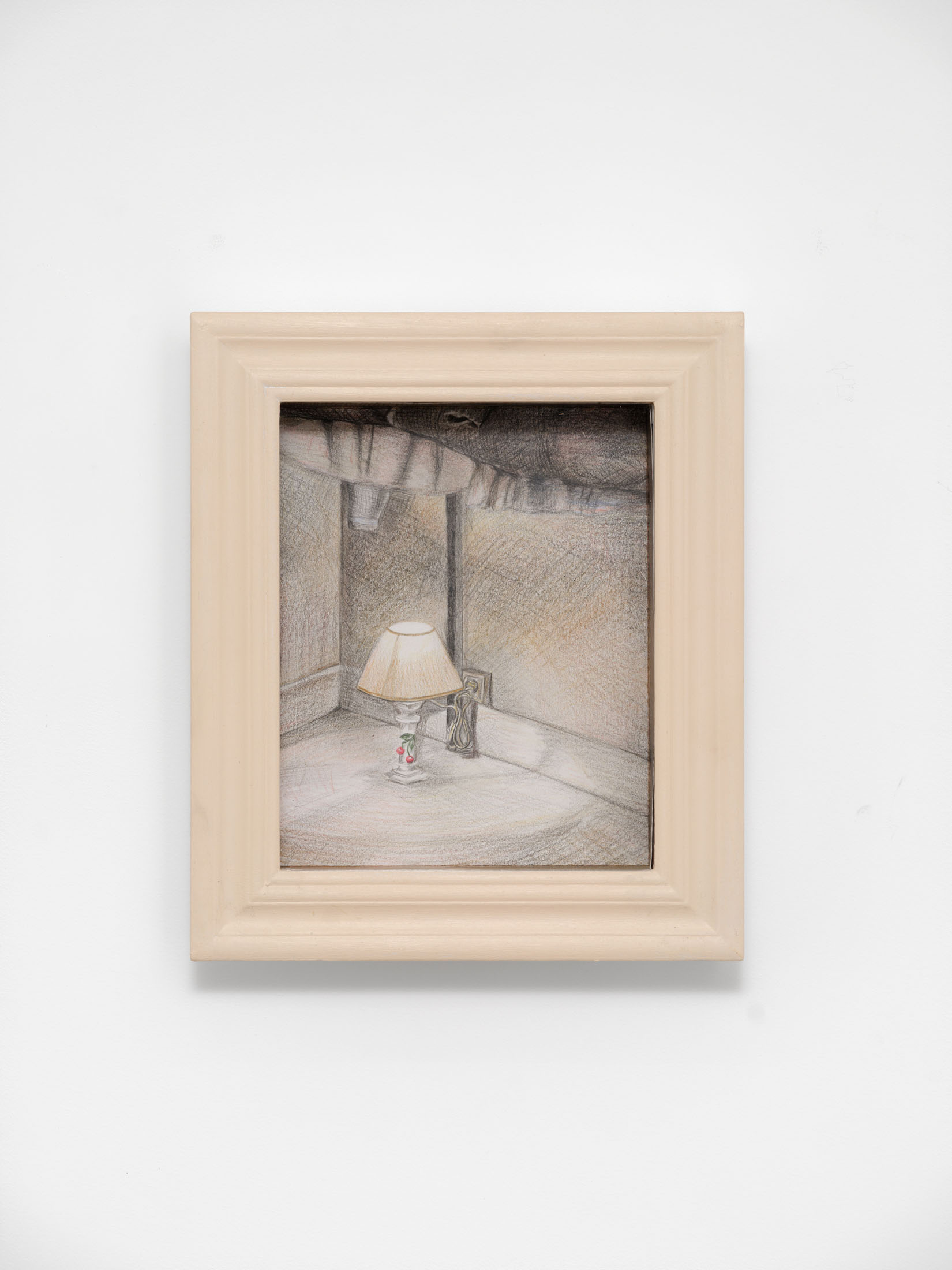 Liselor Perez constructs the exhibition as a succession of boxes. Cabinets, deep frames, miniature cupboards, enclosed devices, each acting as a container for drawings. Every image forms an isolated world.The spaces depicted do not communicate with one another. They coexist without meeting, separated by the walls that both protect and confine them.The act of containing becomes central: to store, to close, to frame, to compartmentalize.