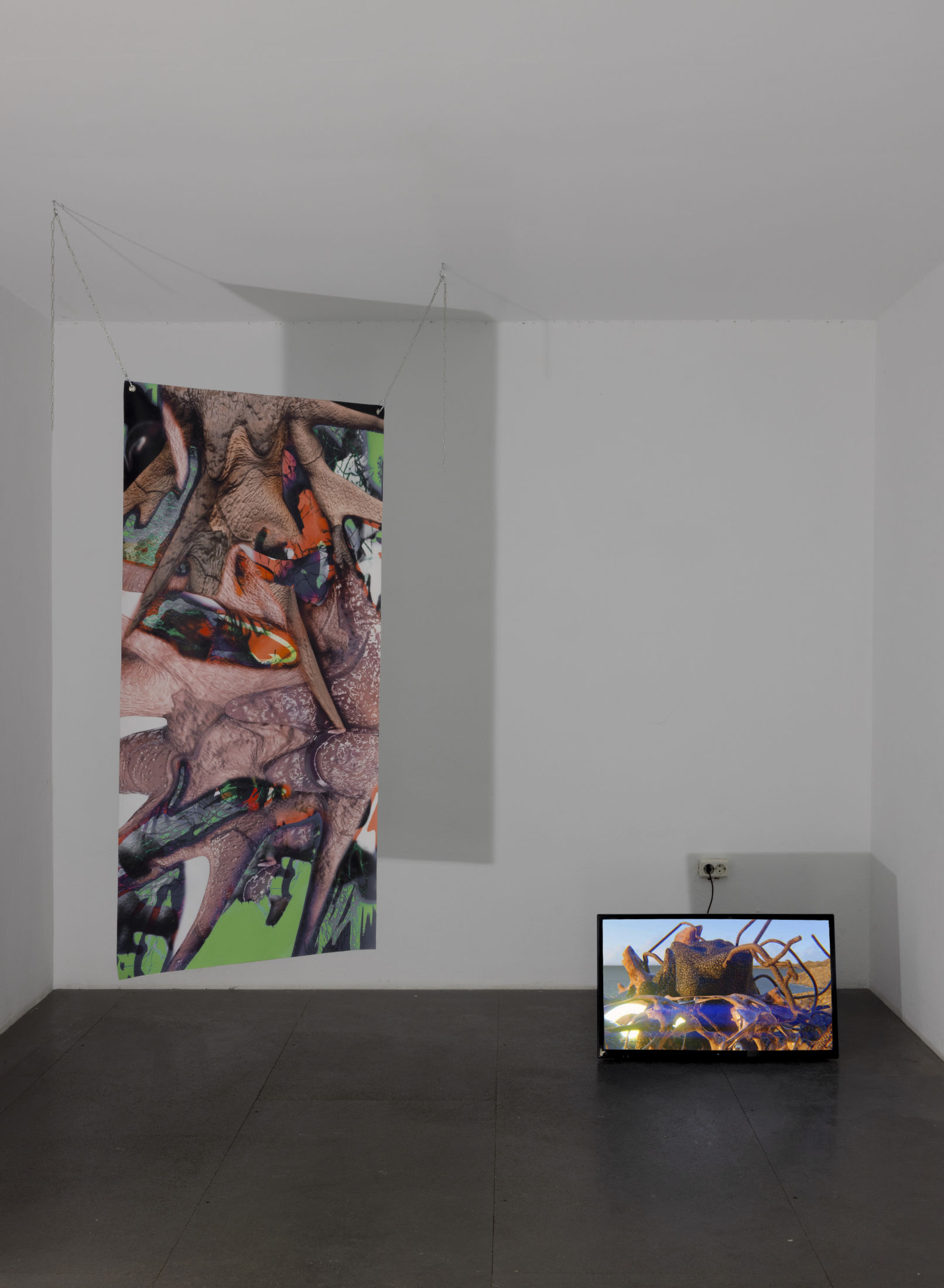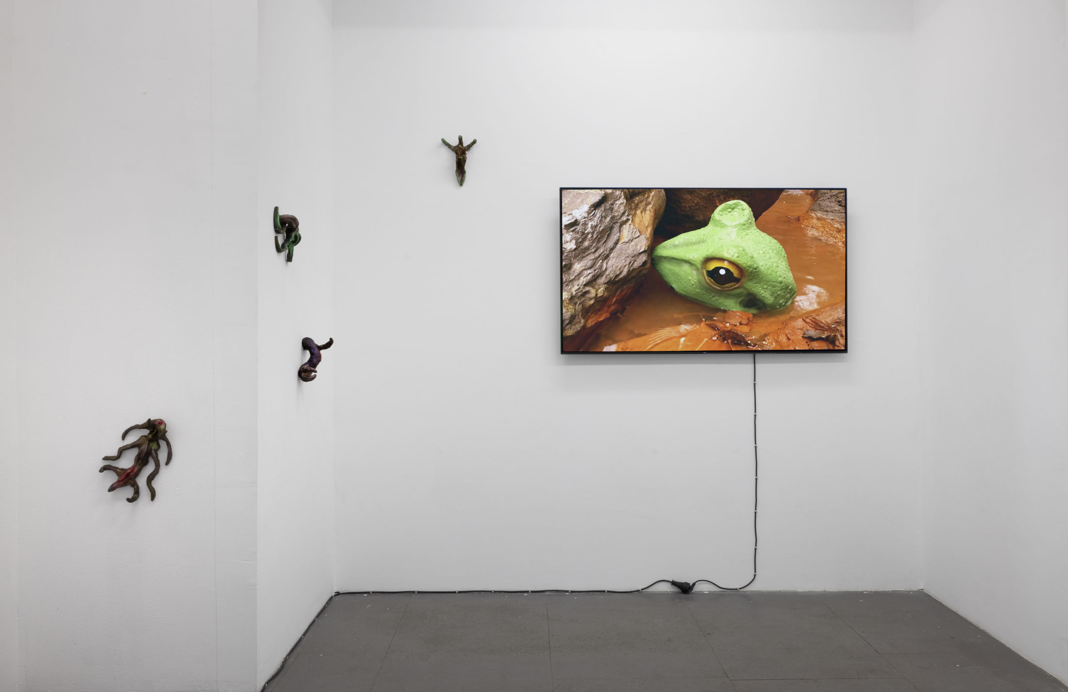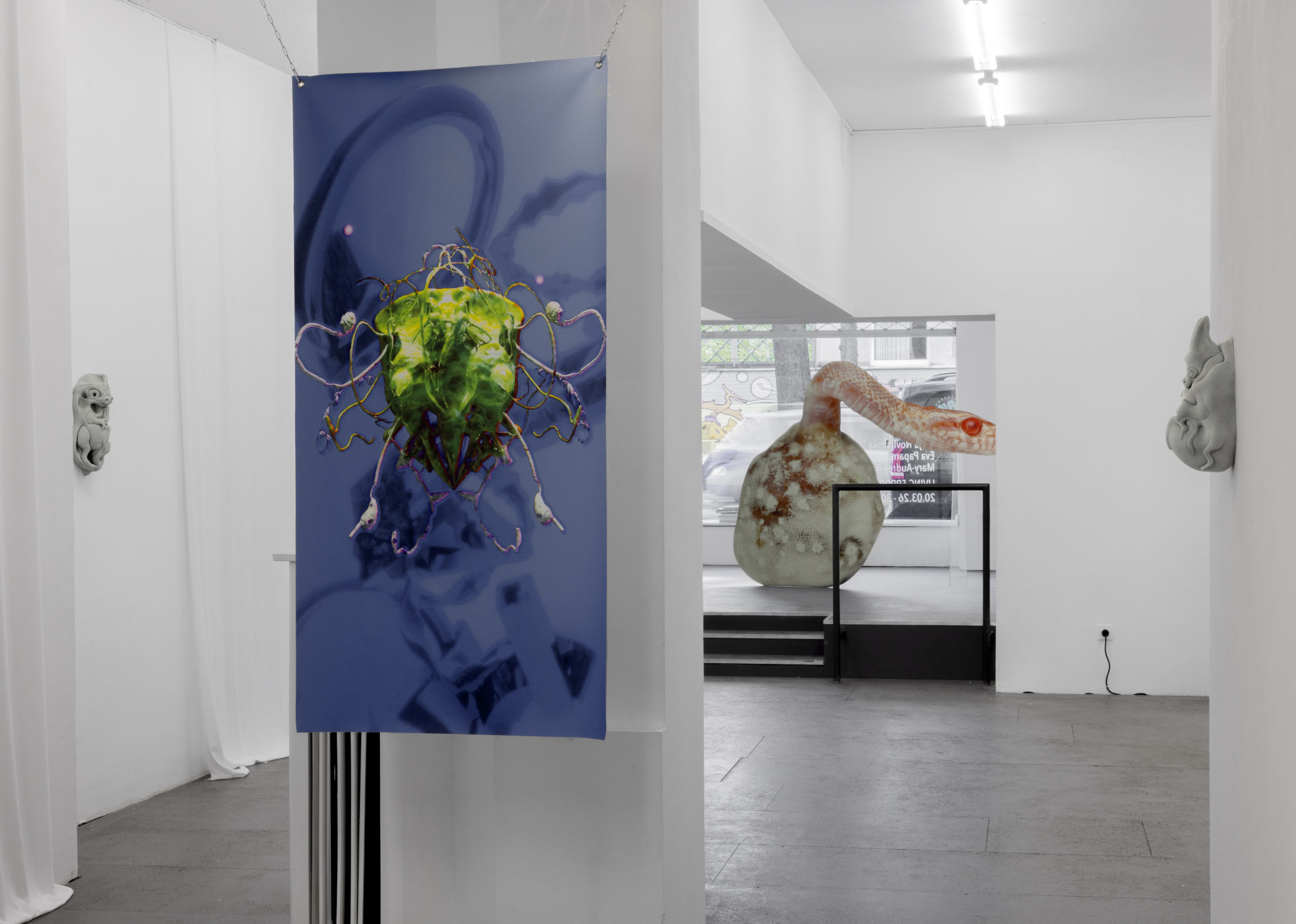 Eva Papamargariti gives form to digital hybrid creatures in ceramics and moving images—bodies suspended between matter and code, between the present and an as yet unwritten tomorrow. Her practice explores the corporeal as a fluid concept, shaped by technologyand the countless non-human actors that inhabit our world. The error lives here in the in-between: in the not-yet-finished, in the being that refuses definition—and in doing so raises the question of whether the boundary between human and non-human was ever as clear as we thought.
