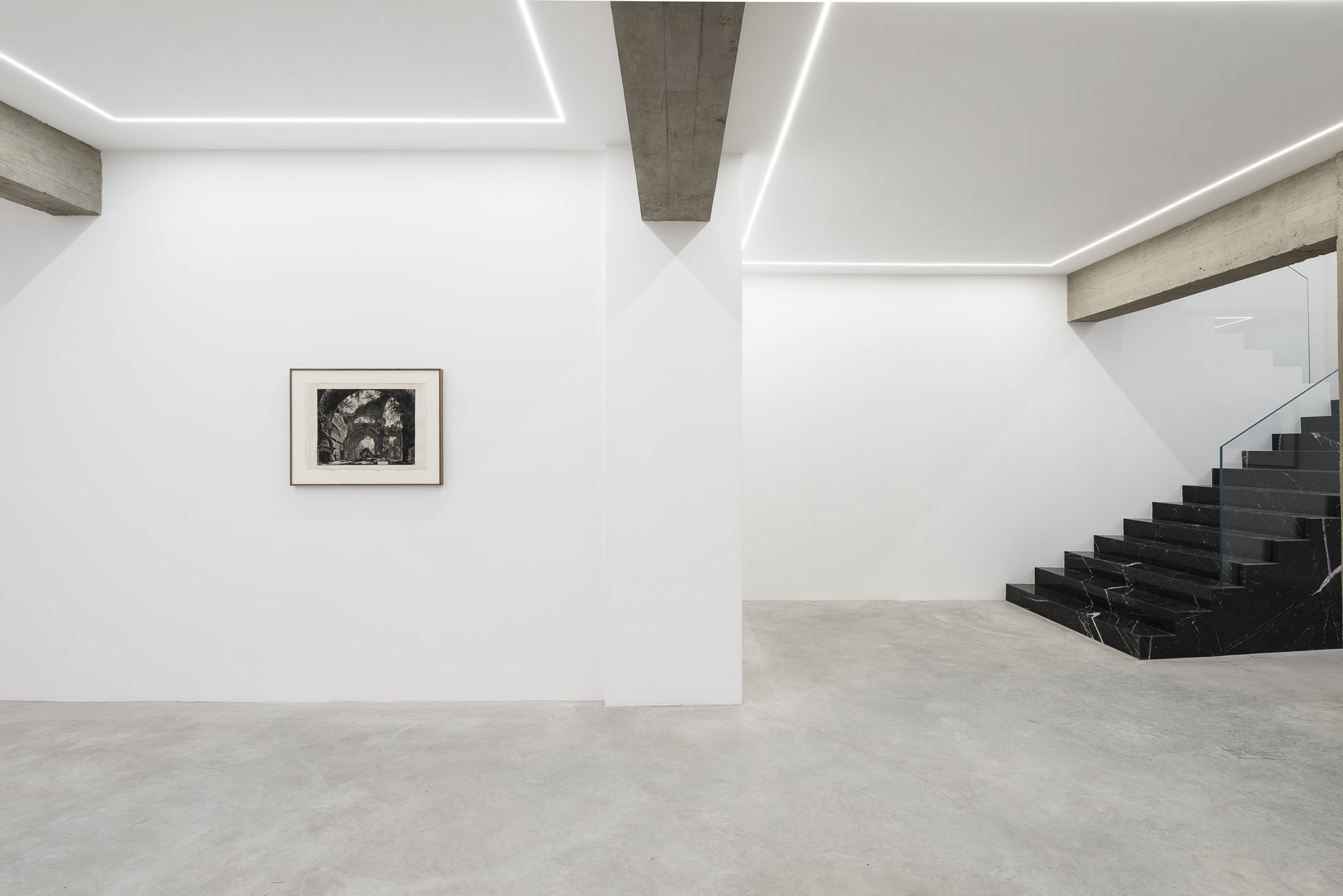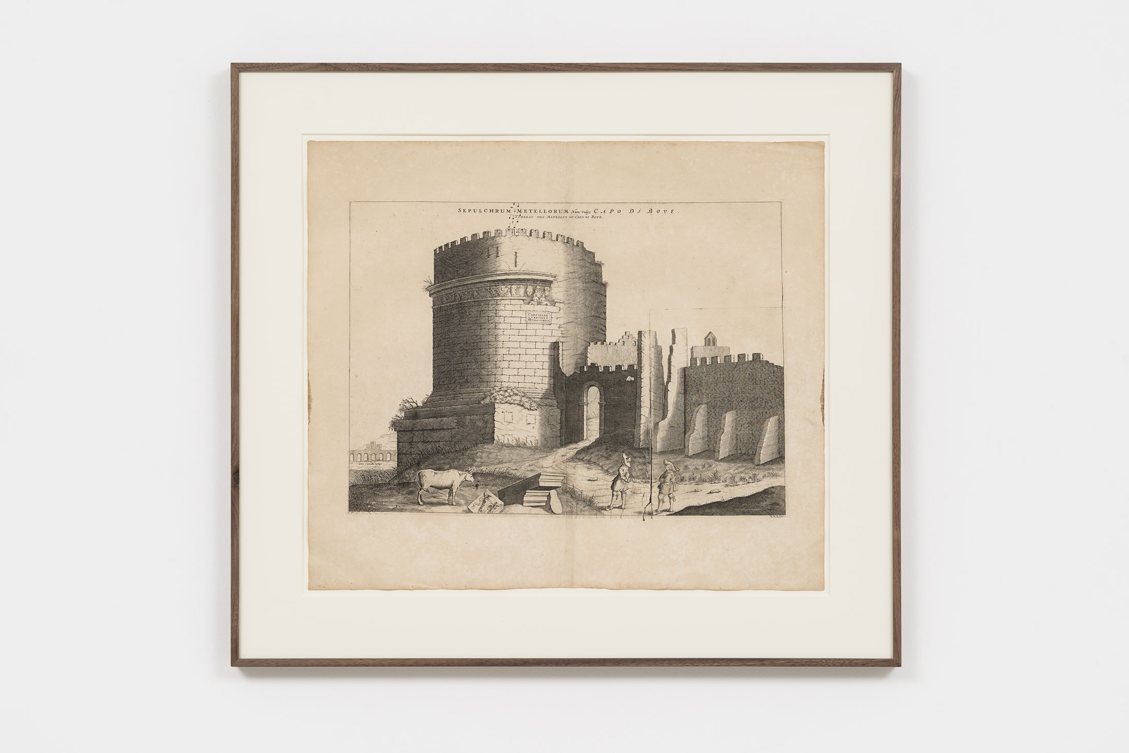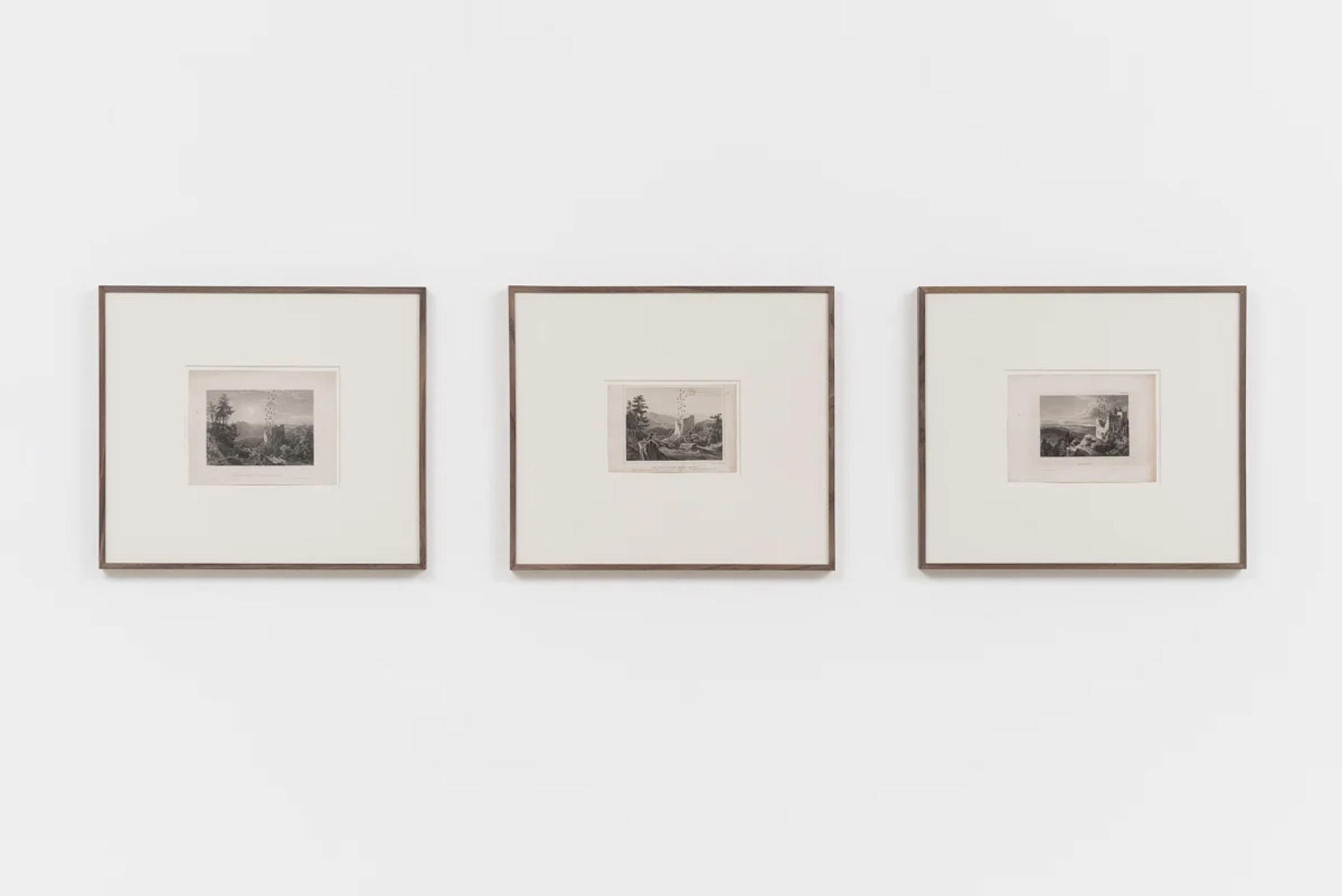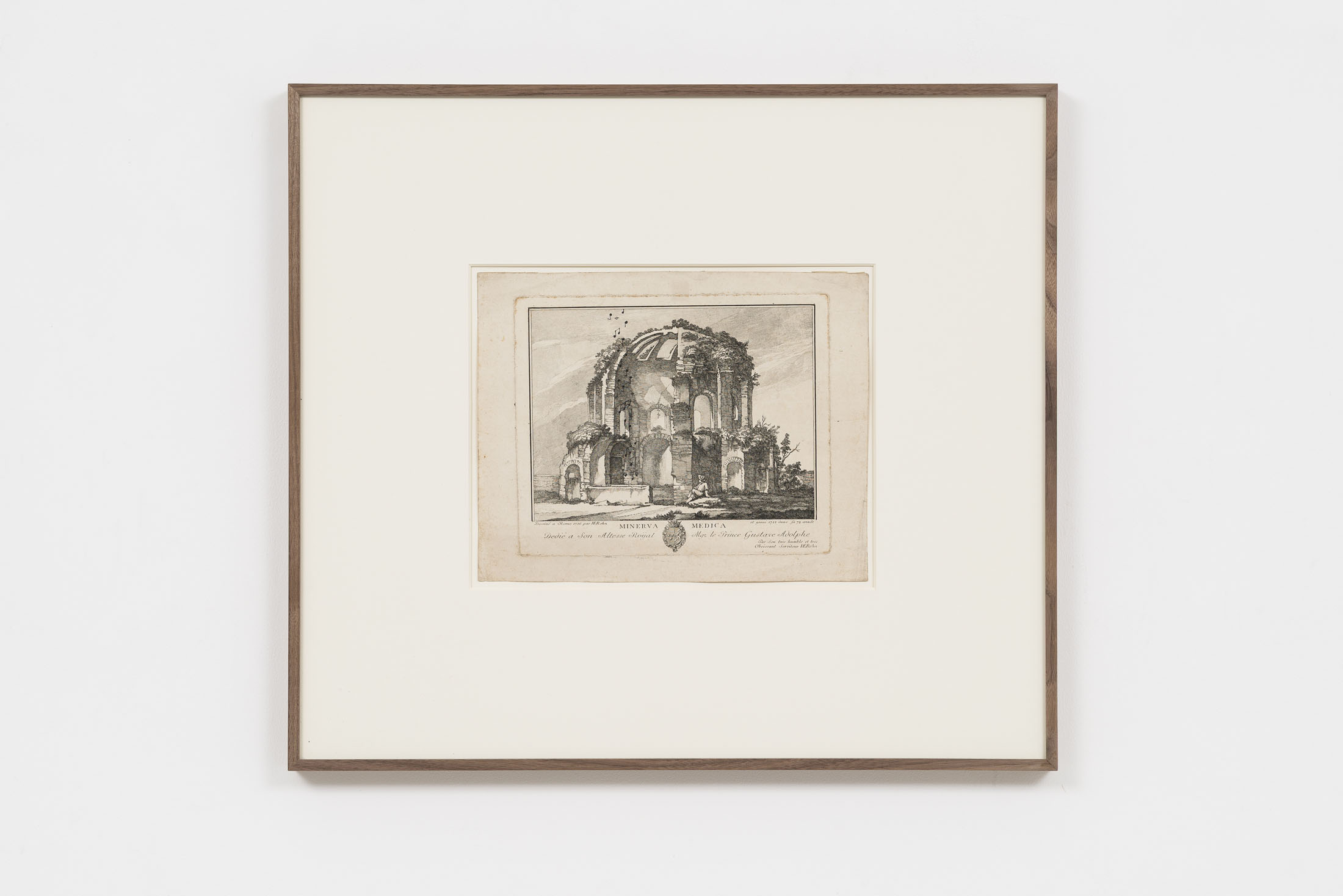 Since the late 1980s, Luca Vitone’s artistic practice has investigated the layered identity of places, exploring their geographical, political, social, and poetic dimensions. His works often take the form of conceptual portraits of places, constructed with site-specific materials, dust, pigments, maps, sounds, that embody memory, tensions, and transformations. The Capricci series, initiated in 2005, continues along this trajectory, unfolding around prints, engravings, lithographs, and period postcards by various authors – from Giovanni Battista Piranesi to Alexandre Calame, Félix Benoist, Giovanni Volpato, Giuseppe Vasi, Pierre Mortier, and other anonymous artists – which Vitone transforms through the addition of musical notes drawn in ink.
