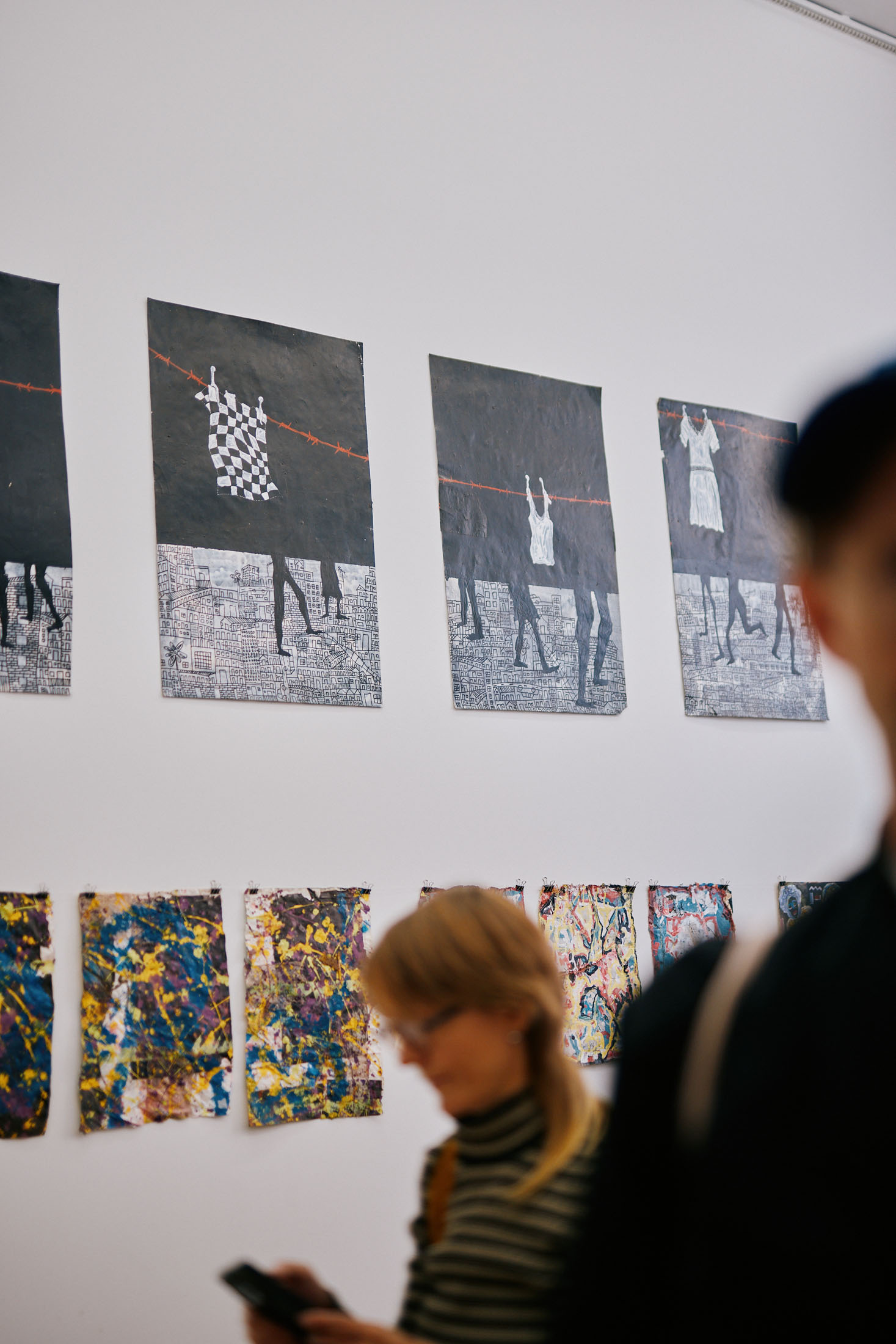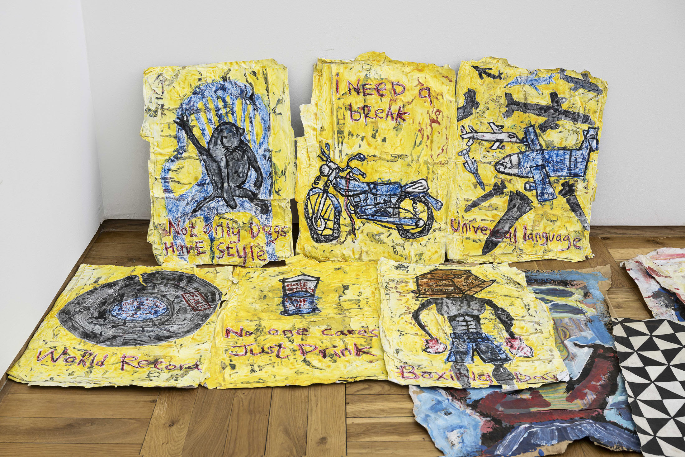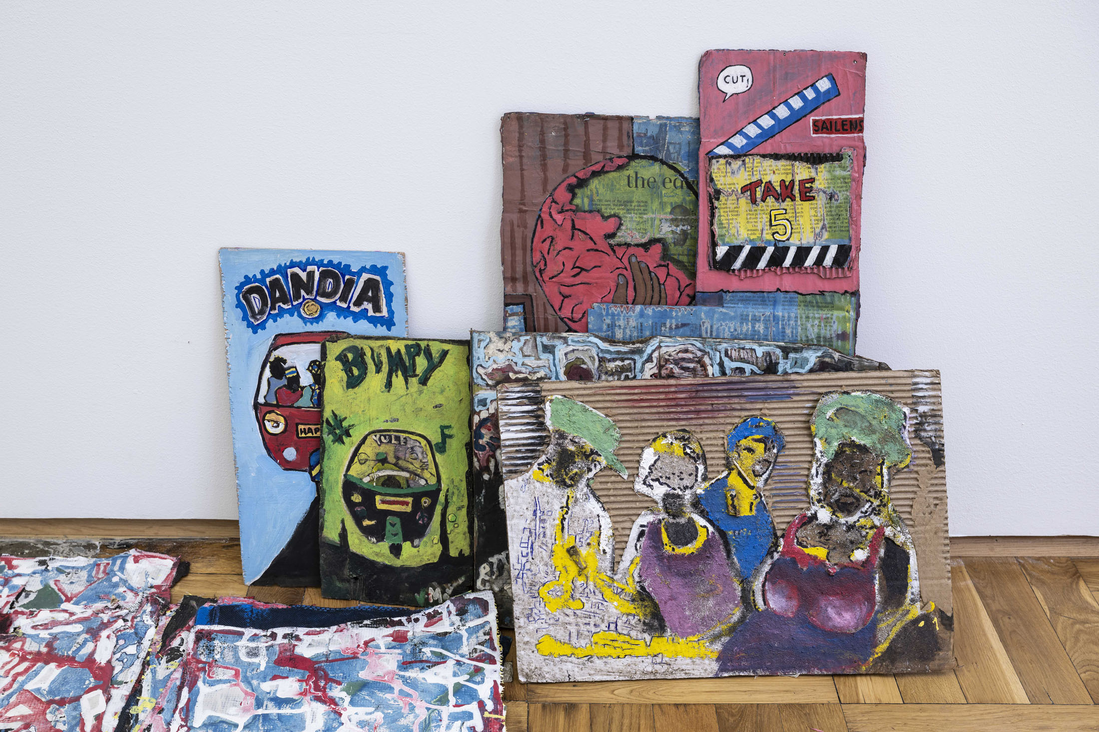 Artworks are placed everywhere: on the walls or leaning against them, and in piles upon the floor. The public is invited to touch and hold the artworks, and it is expected that they may even unintentionally change their position within the space, creating new formations and relations.