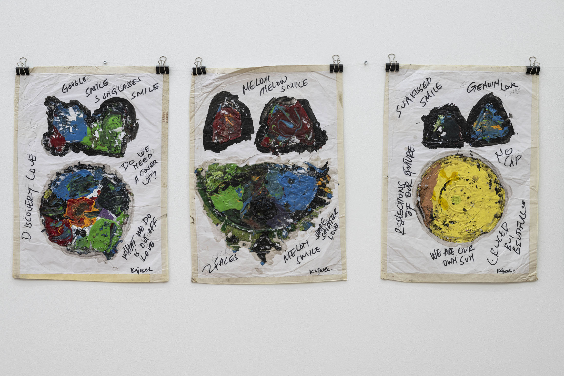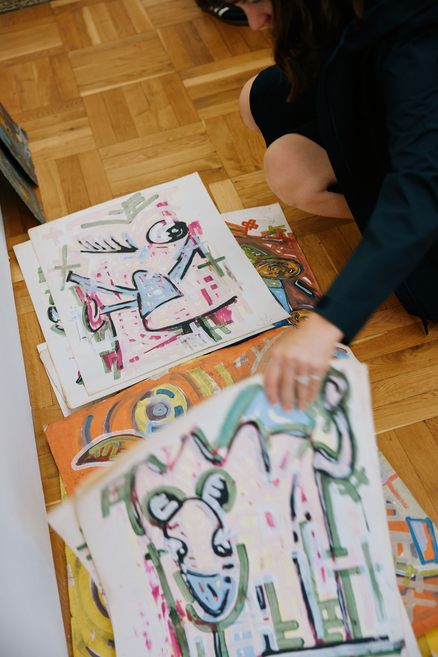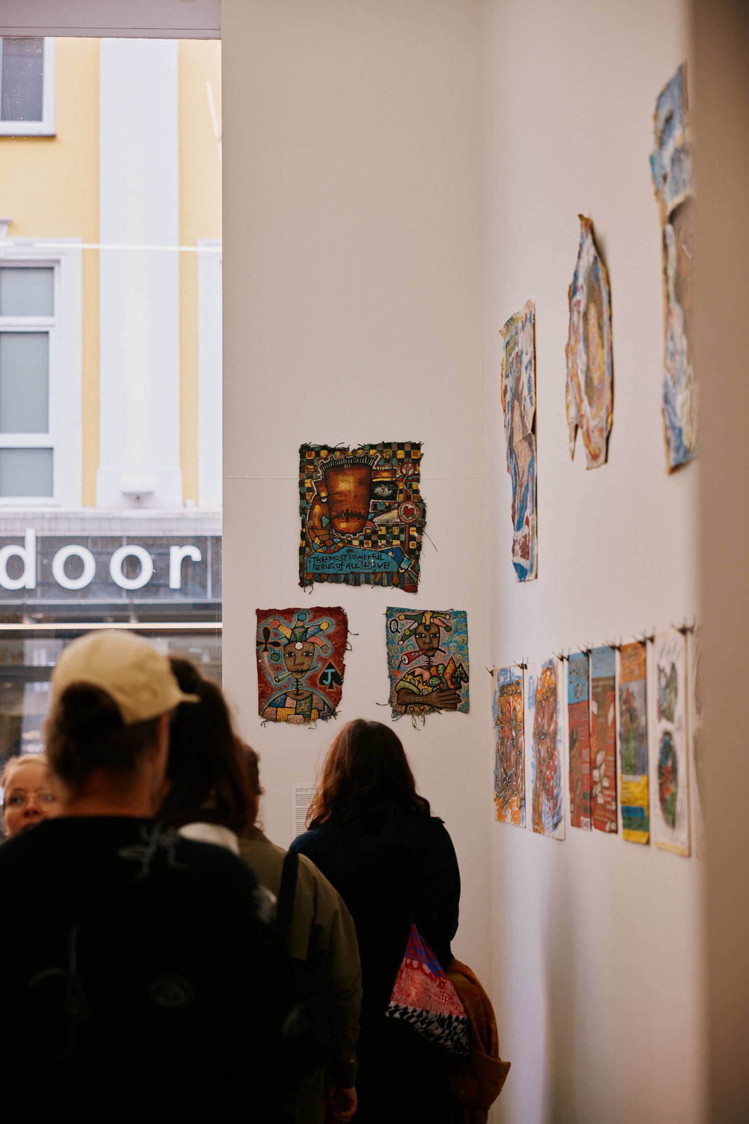 Artworks are placed everywhere: on the walls or leaning against them, and in piles upon the floor. The public is invited to touch and hold the artworks, and it is expected that they may even unintentionally change their position within the space, creating new formations and relations.