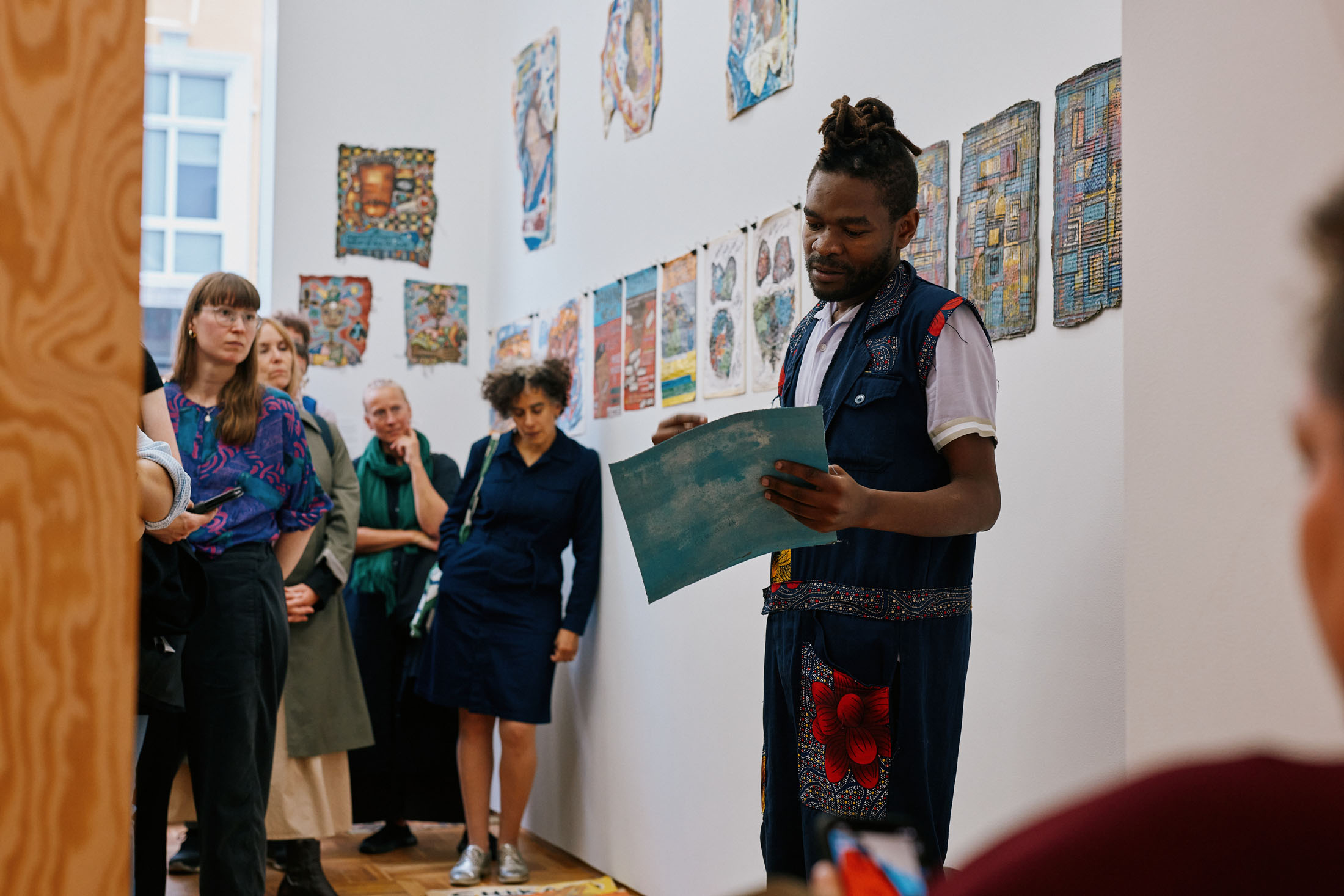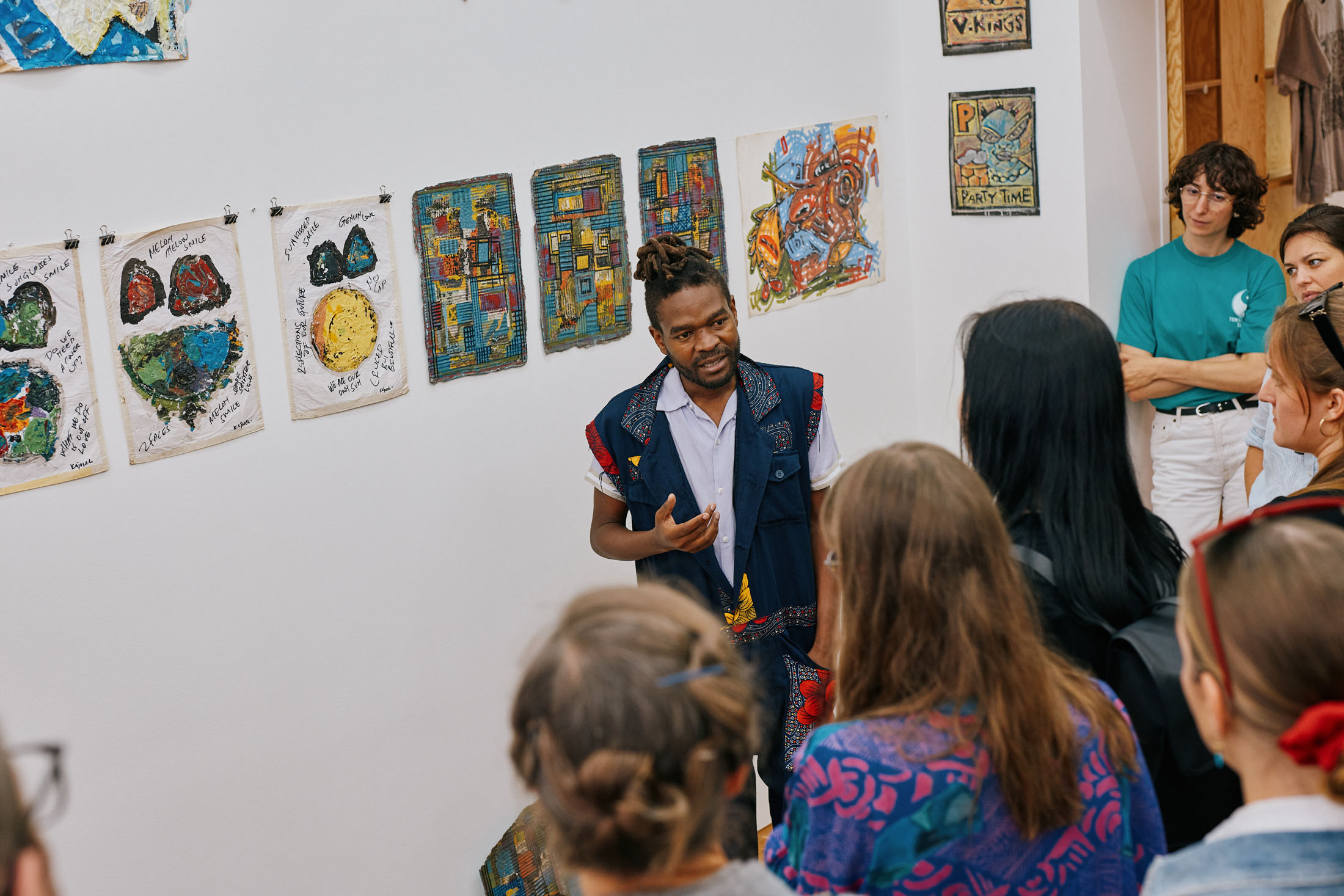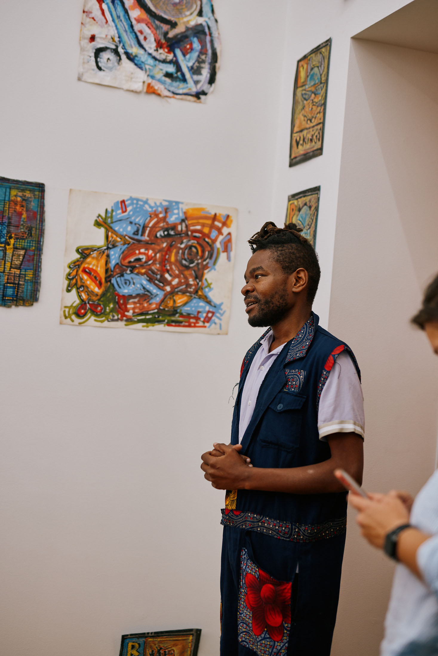 The artists work across the mediums of drawing, performance, fashion, sound, and installation, and their interactive multimedia projects function as both studio and public platform. Rooted in community, the collective is committed to staying with social struggles and enhancing education, particularly in relation to disadvantaged communities and youth in Kibera.