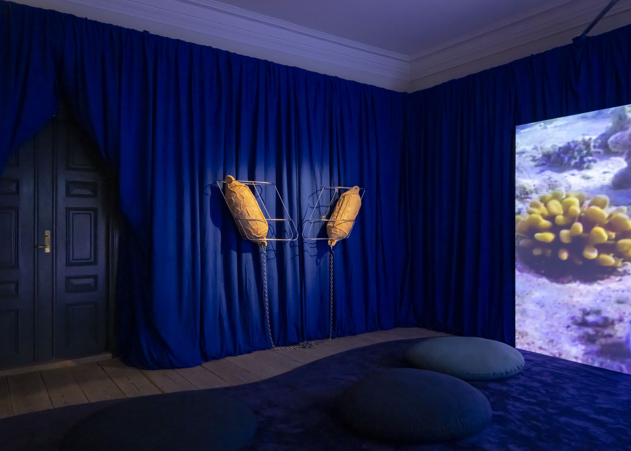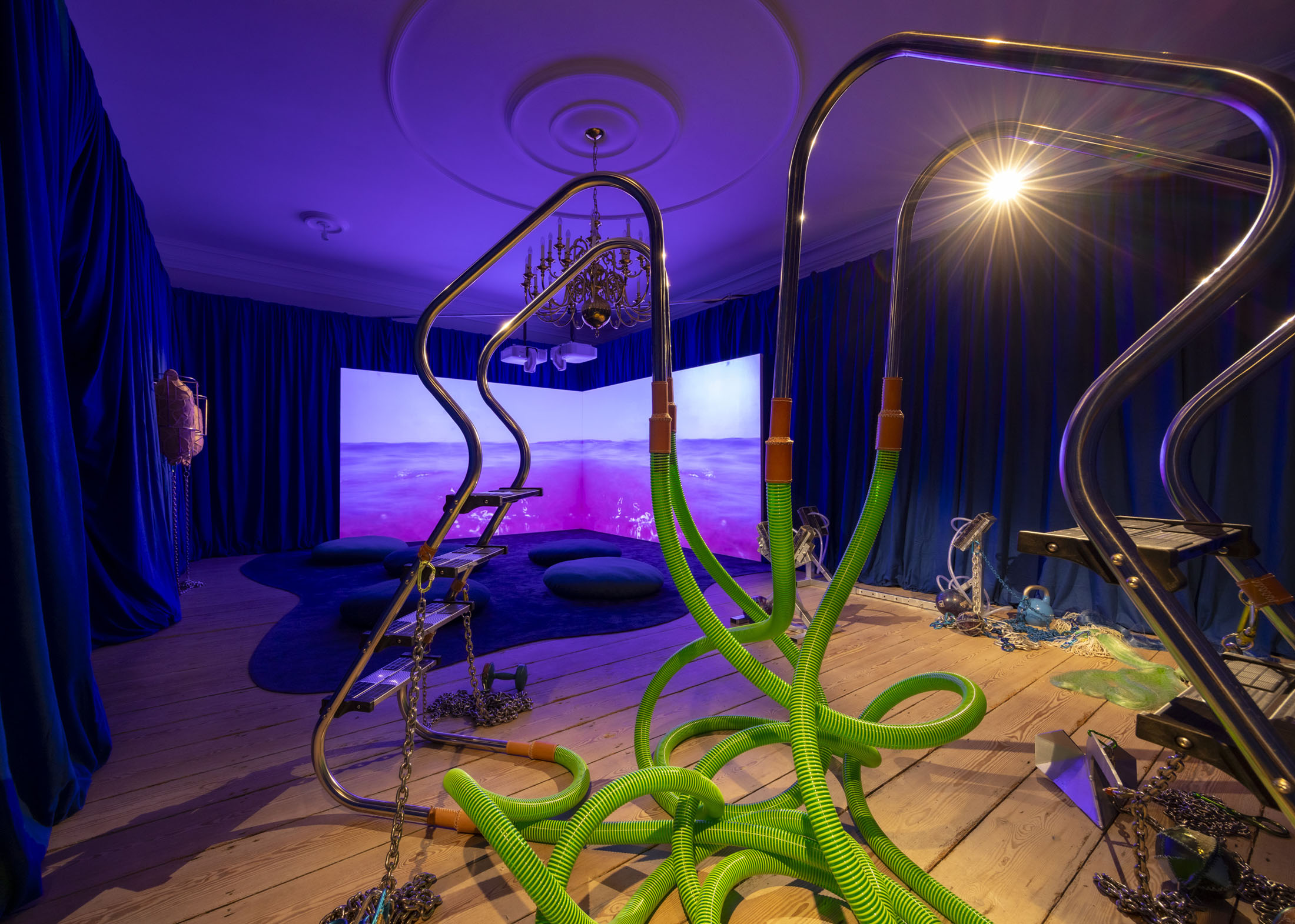 When Pipilotti Rist created the work in 1996, she was reportedly not entirely sure whether a video installation of this kind would qualify as visual art, and whether she should consider herself a visual artist. When Maiken Bent encountered the work a few years later, it became the immediate inspiration for her to become an artist herself as soon as possible! In this exhibition, the two artists are brought together in a charged space and an intimate dialogue, grounded in that pivotal encounter and in the sea as an infinite mirror and reservoir for our existential questions.