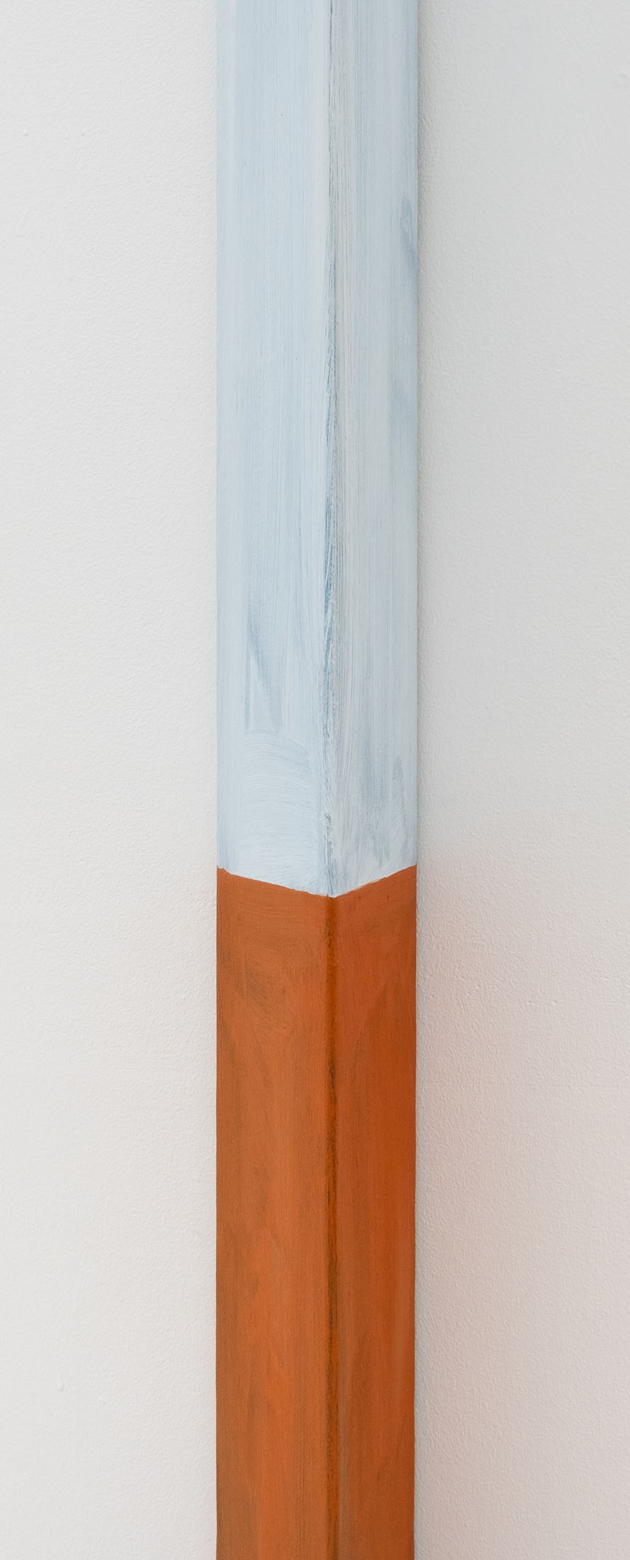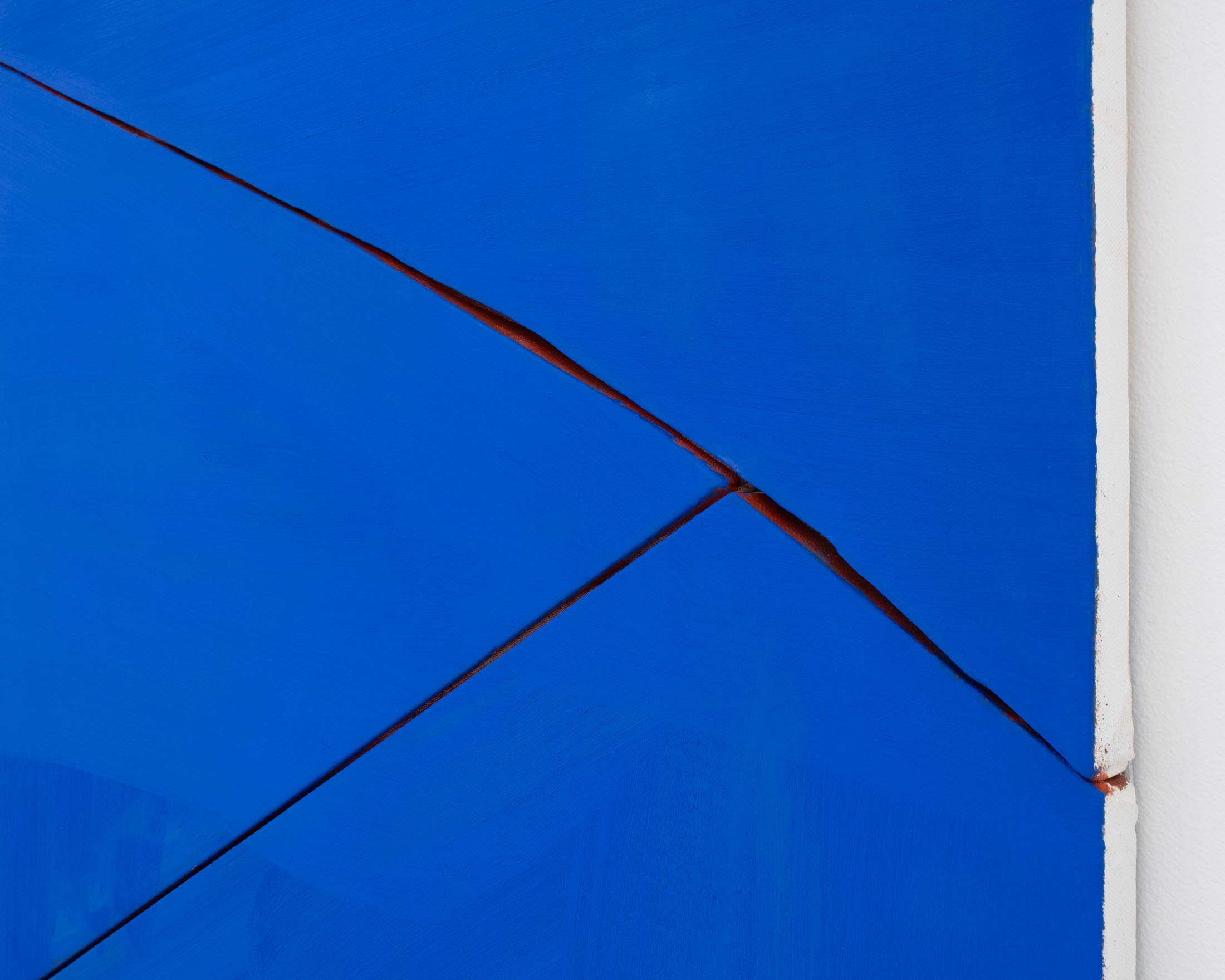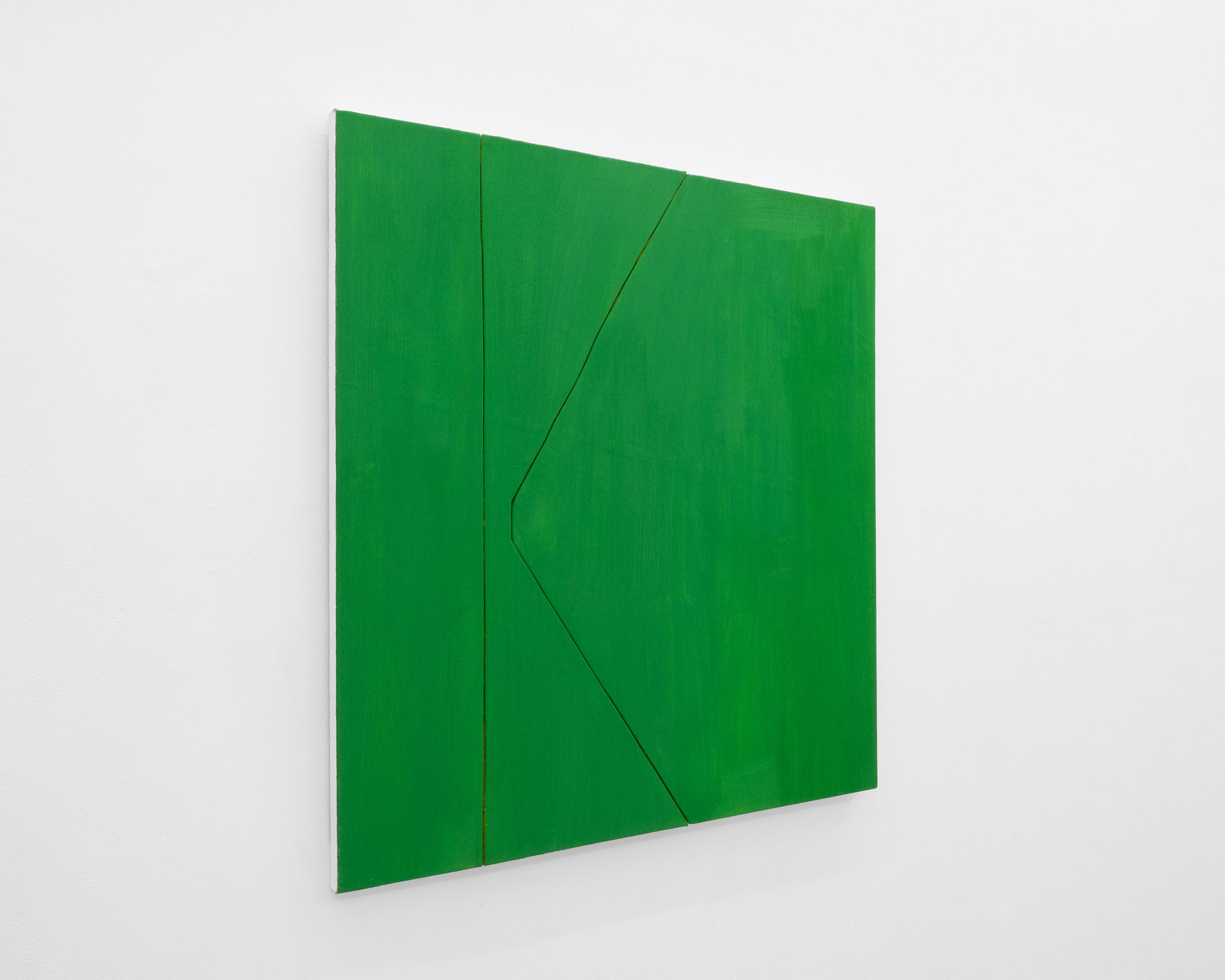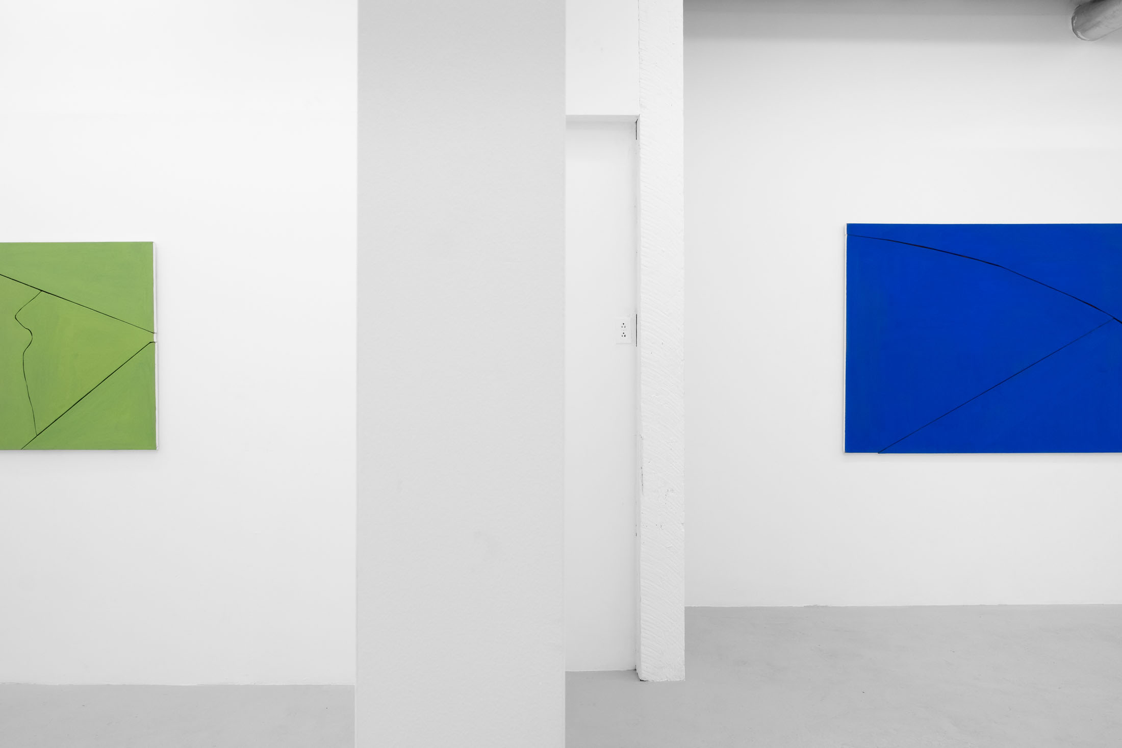 Within the exhibition, the works speak in unexpected moments of harmony, like the clamour of a public space rather than the singing of a choir. The off-kilter resonance of the body of work is a salve for the predictability of images. Nonetheless, there are formal commonalities that establish a visual substructure for the group. Above that ground is a convergence of good and bad taste, cynicism and sincerity, doubt and certainty: a structure on stilts built above a concrete foundation. Protection spells cast in formal obliqueness, machined to perfection, soaked in doubt, cut through by an absolute mark. The inner space is a protected sanctum, the spell is an anticlimax.