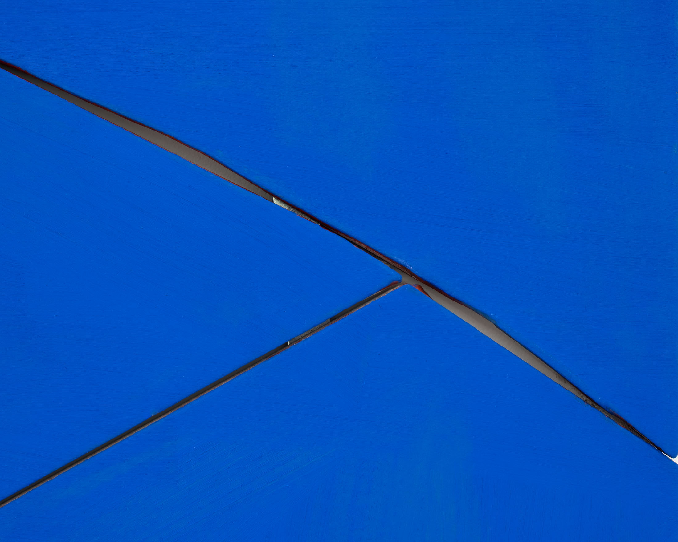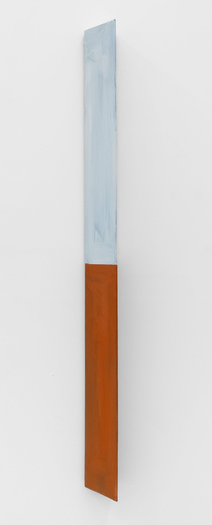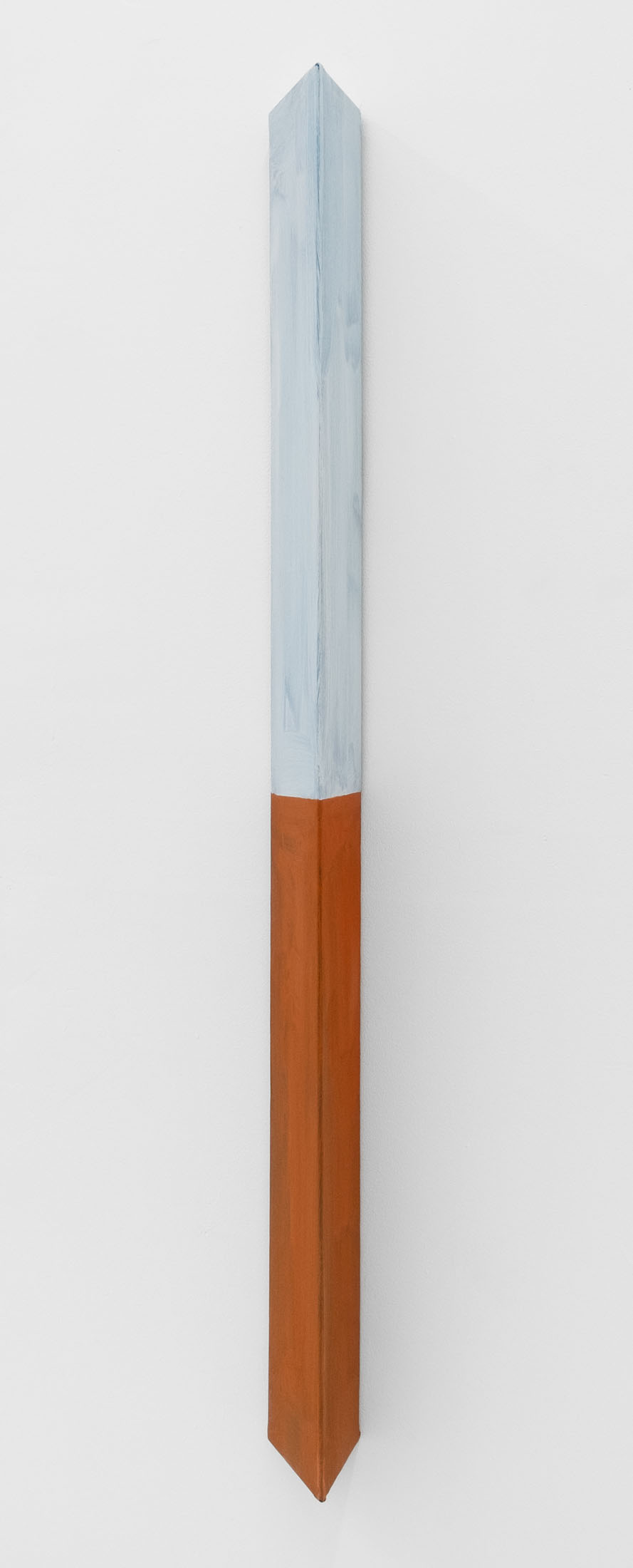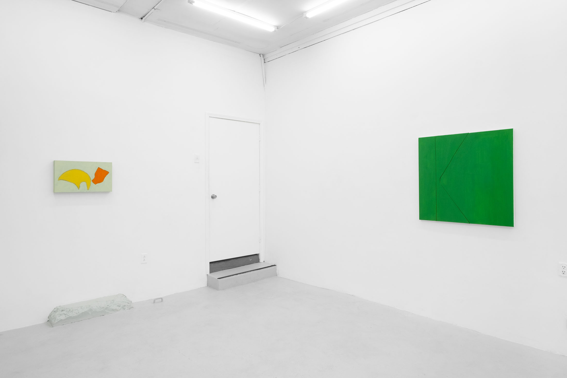 Within the exhibition, the works speak in unexpected moments of harmony, like the clamour of a public space rather than the singing of a choir. The off-kilter resonance of the body of work is a salve for the predictability of images. Nonetheless, there are formal commonalities that establish a visual substructure for the group. Above that ground is a convergence of good and bad taste, cynicism and sincerity, doubt and certainty: a structure on stilts built above a concrete foundation. Protection spells cast in formal obliqueness, machined to perfection, soaked in doubt, cut through by an absolute mark. The inner space is a protected sanctum, the spell is an anticlimax.
