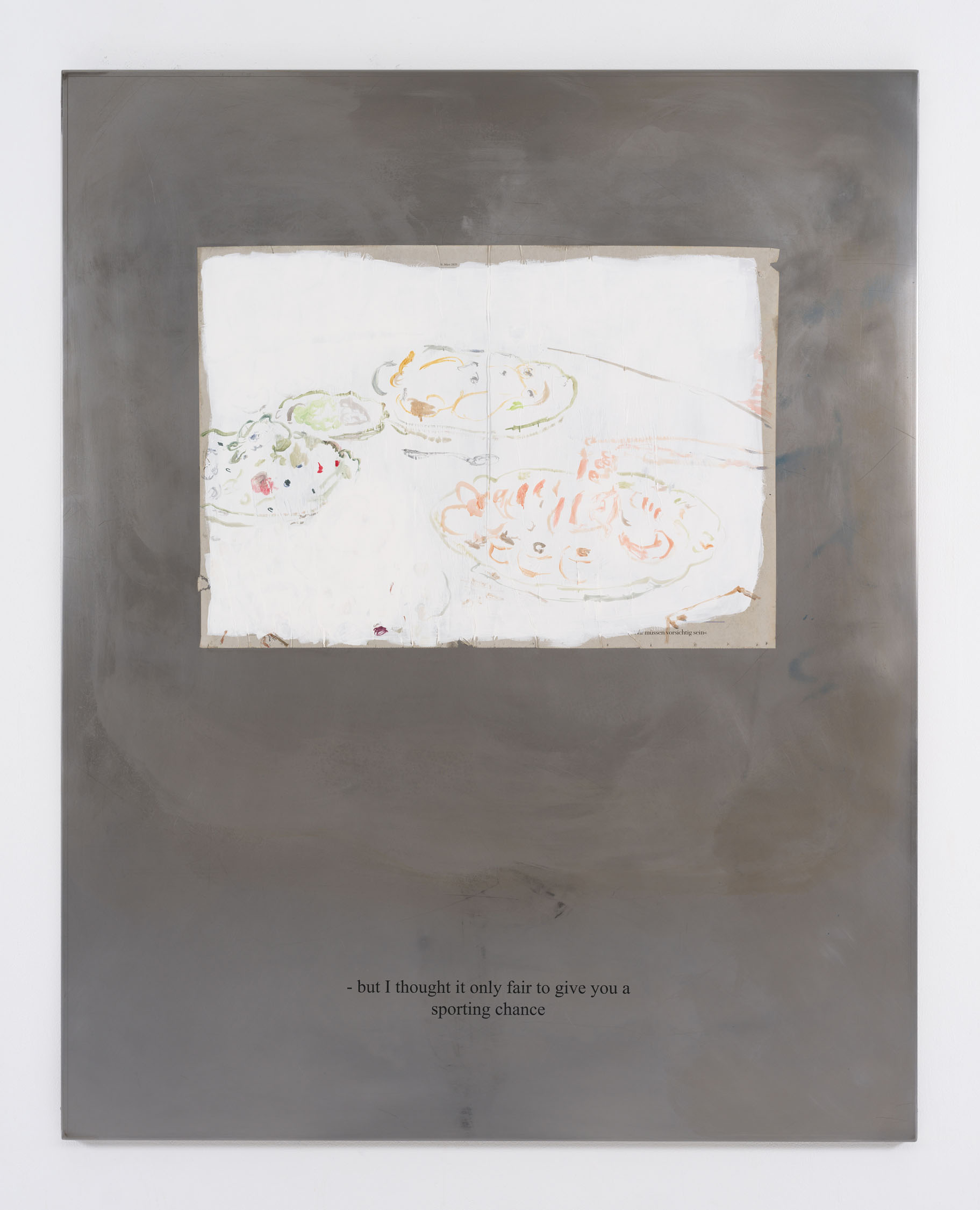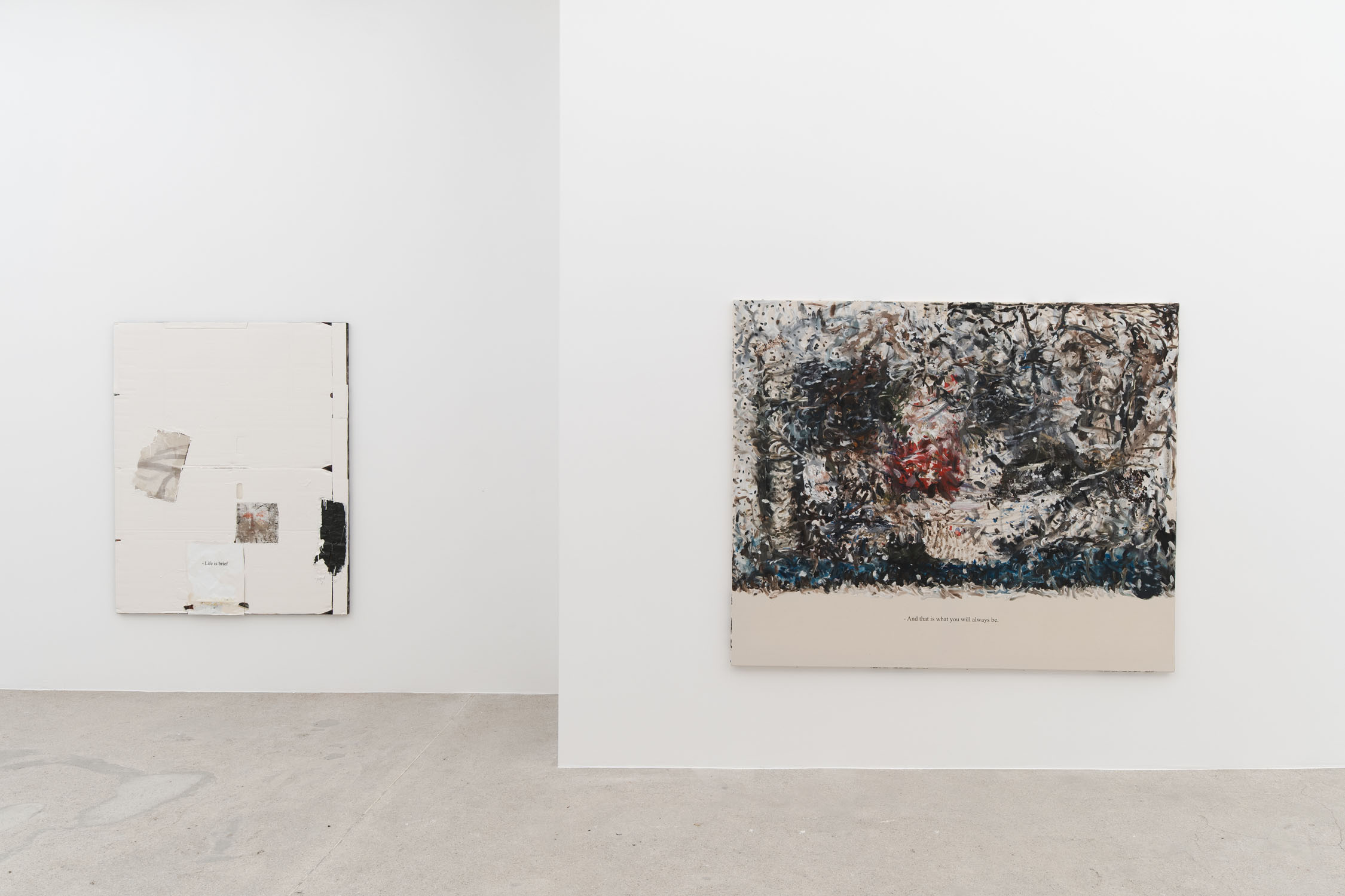 Malte Zenses presents nine new paintings and three sculptures at Sperling’s new location at Enhuberstr. 6 in Munich-Maxvorstadt. One of them carries a warning: “- Life is brief” The titles of these paintings contain many references, from Aschenputtel (the folk tale known as Cinderella) to the Berlin living legend and pioneer of queer cinema and activist Rosa von Praunheim, or from Robin Hood, associated with “taking from the rich and giving to the poor“, to hedonism, the philosophy that proposes pleasure instead of pain. They evoke unexpected meanings, inviting the viewer to engage their imagination and connect on an individual and personal level. These works seem to speak directly to their audience through the words and expressions embodied in the square film frame, much like watching TV with subtitles.