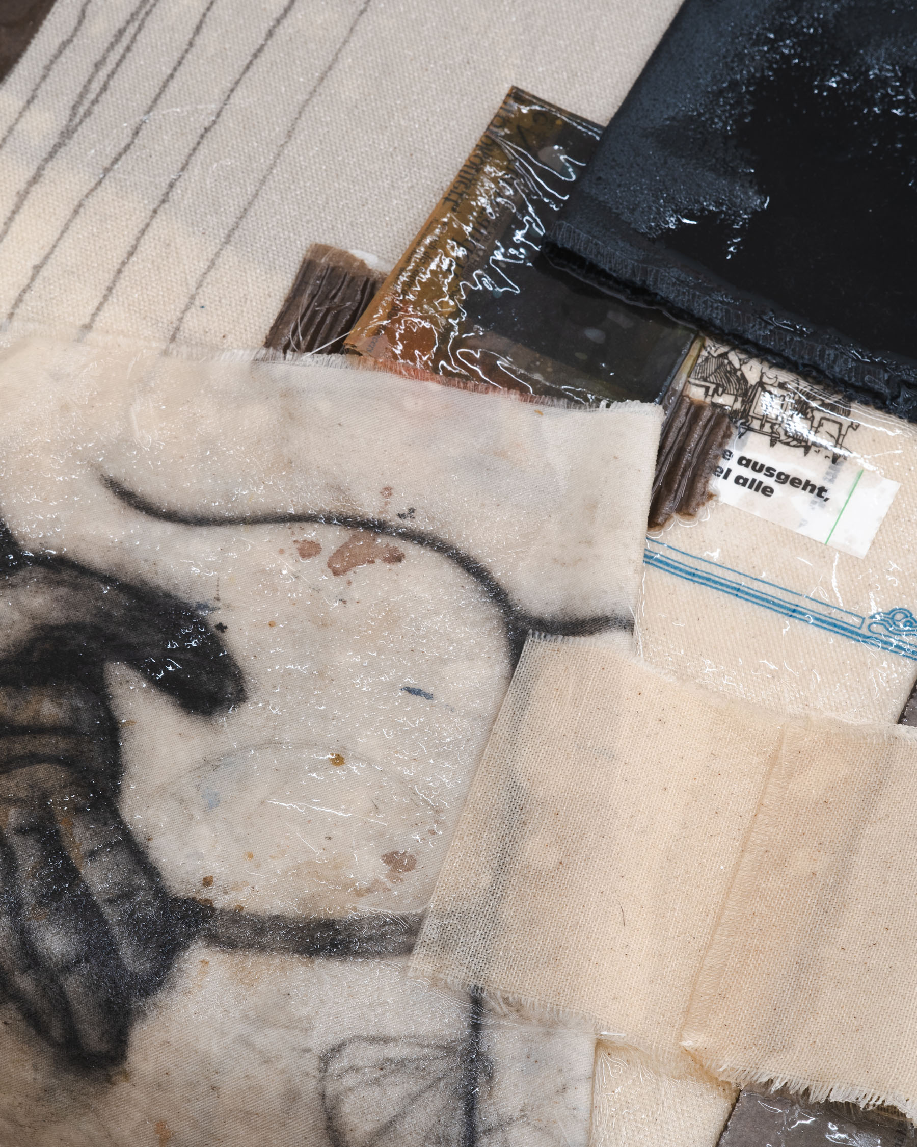 Zenses’s studio is a treasure trove of creativity and inspiration reflecting his artistic vision. His archive of materials documents the patterns of our zeitgeist and serves as a rich pool for his artistic thinking including film stills and screenshots ranging from 1960s Hollywood to obscure Indie productions; Berlin newspapers from the 1970s to the present day; subcultural references to music and literature such as stickers, napkins, found notes; second-hand clothes and photographs (found, bought, or taken by the artist), moreover his archive includes the journals of his ongoing drawing practice.