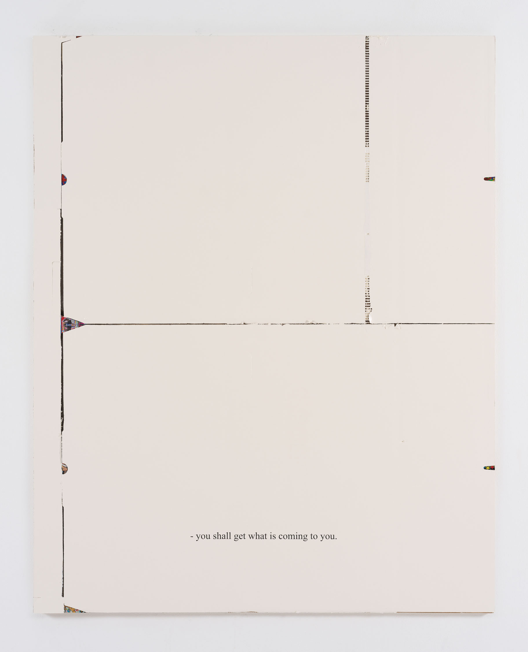 What you will see in this exhibition is a careful rendering from a long process of living and working for a better perception: “- you shall get what is coming to you.”
