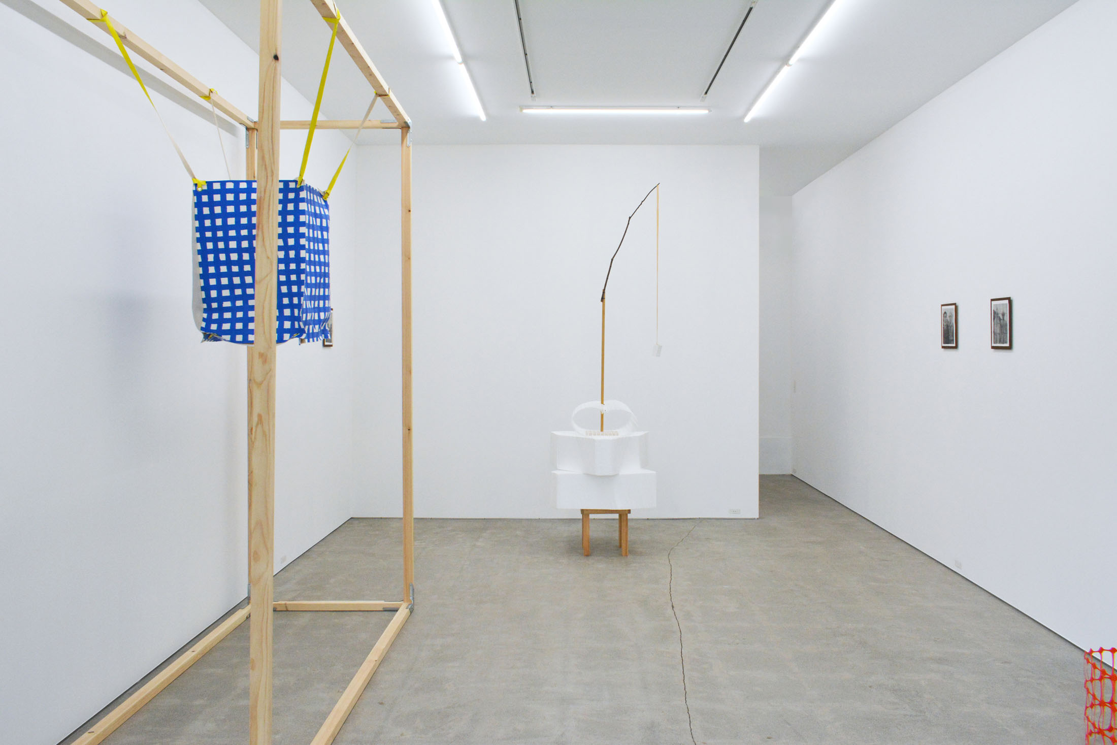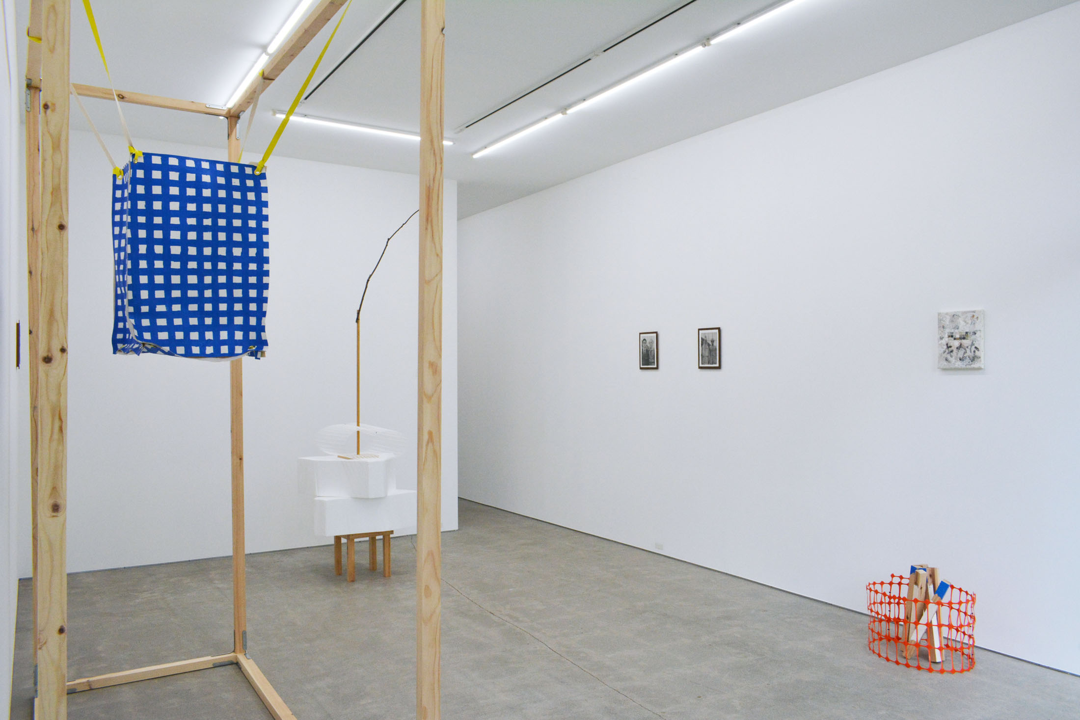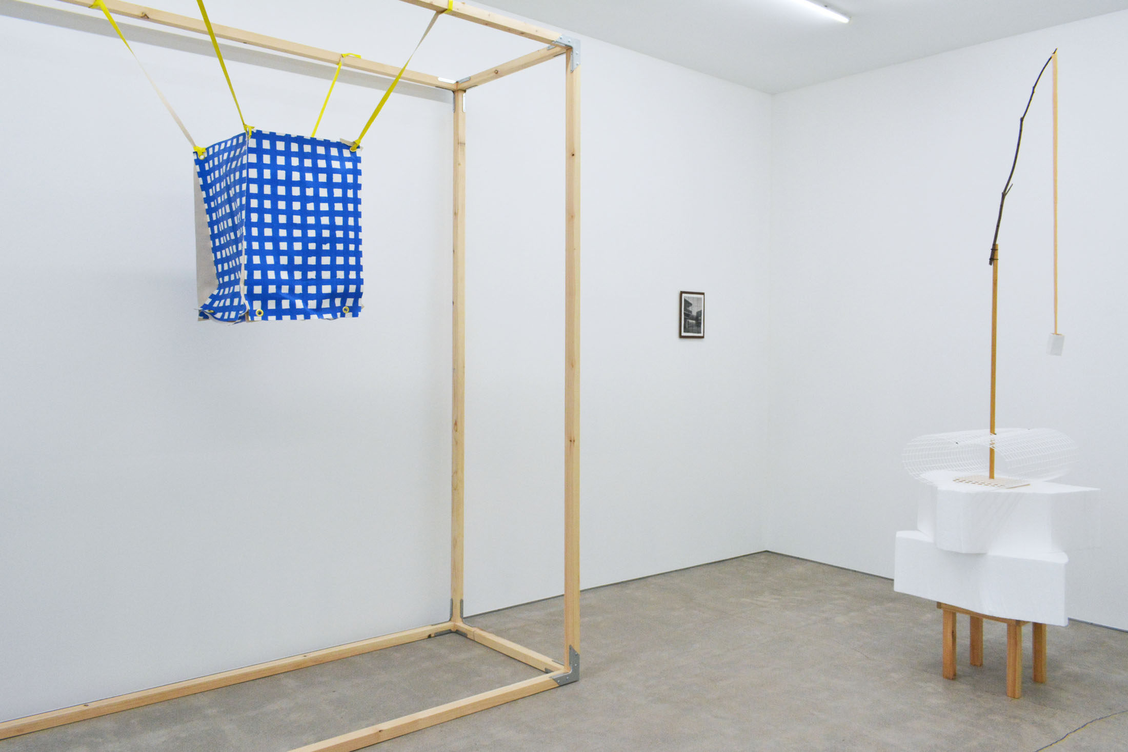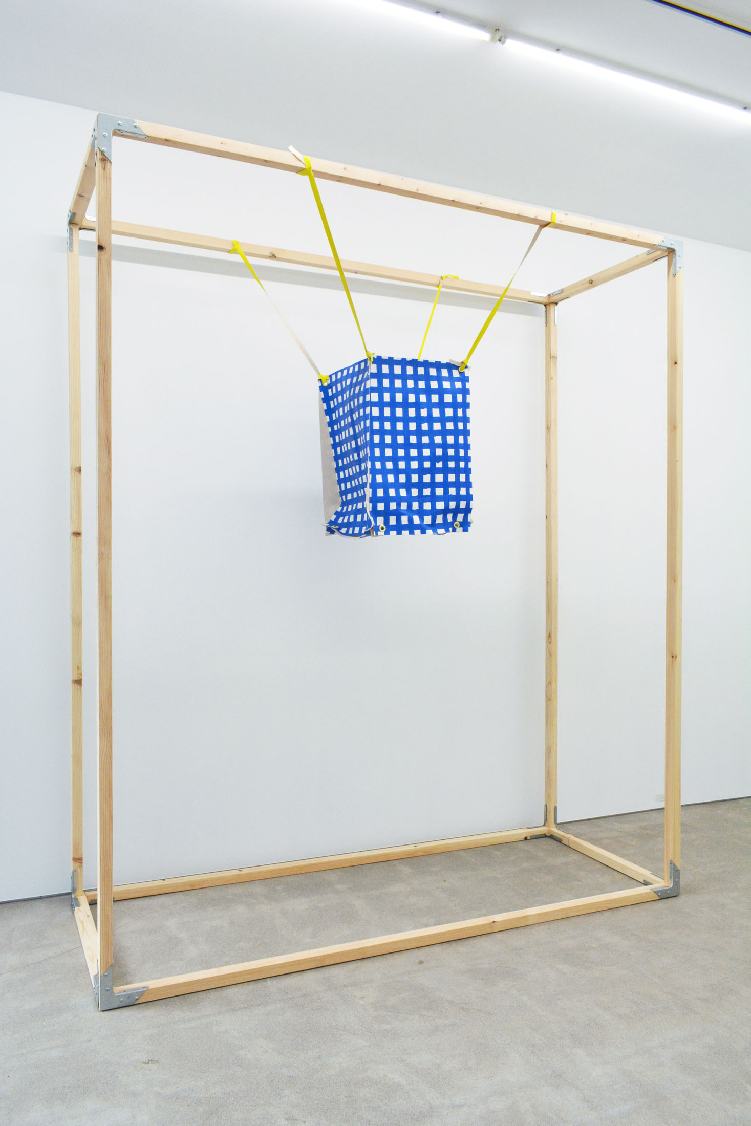 Maoya Kishi creates a wide range of works, including sculptures and installations, using materials such as timber, construction supplies, blue tarps, styrofoam, and LED signboards—elements that, on their own, have no inherent meaning. These materials are assembled with minimal alteration in a simple manner. As viewers, we instinctively attempt to discern the artist’ s intentions or decipher what the work is meant to represent, but such efforts often prove futile. Instead, we find ourselves simply dumbfounded, facing the work itself and wondering, “What exactly is this?”