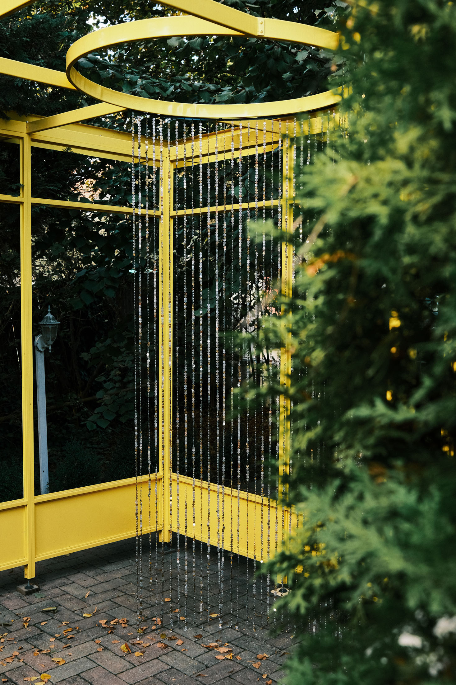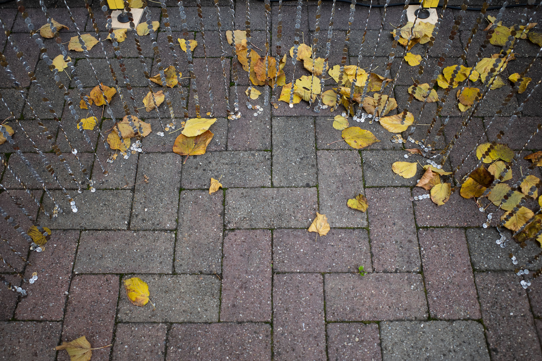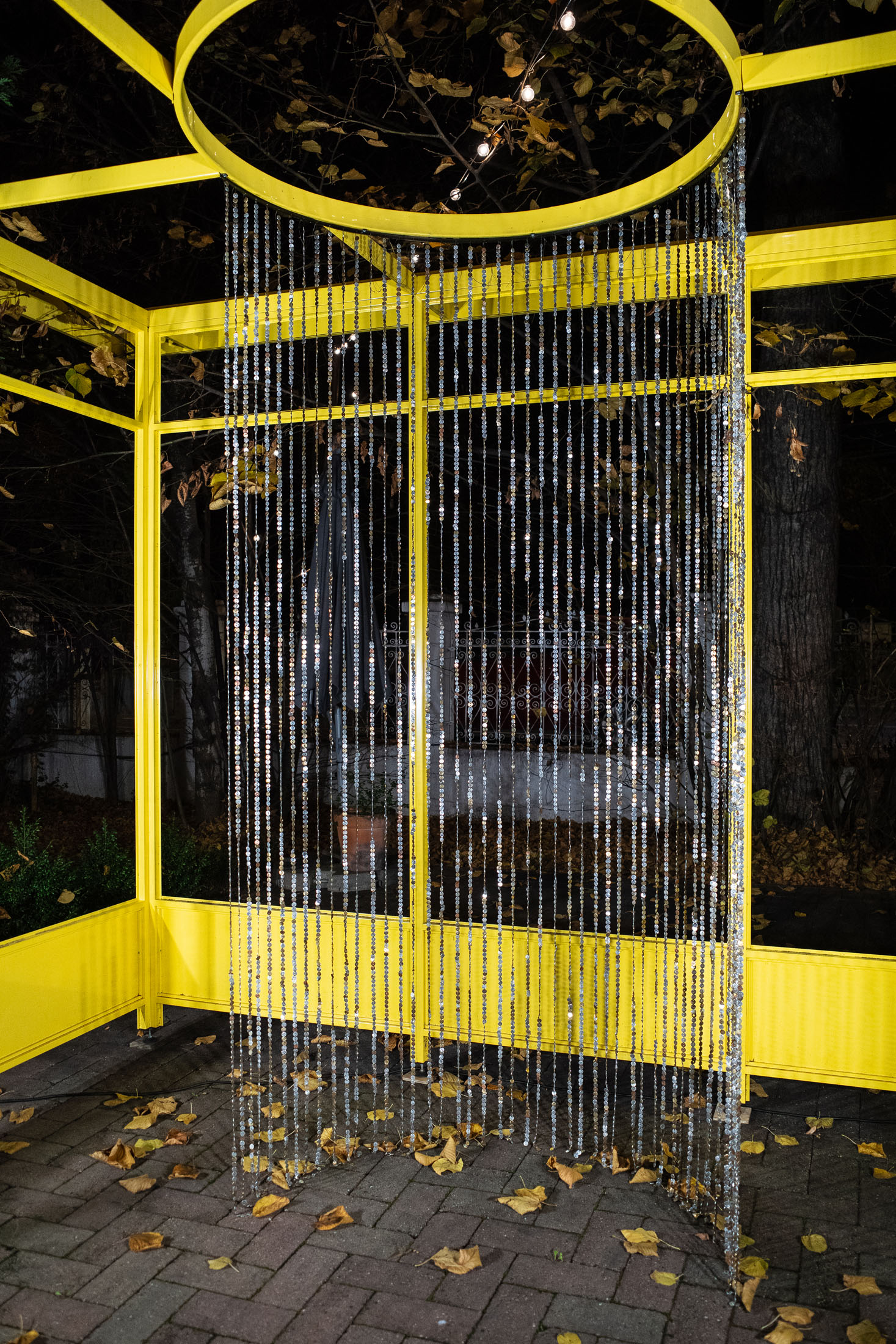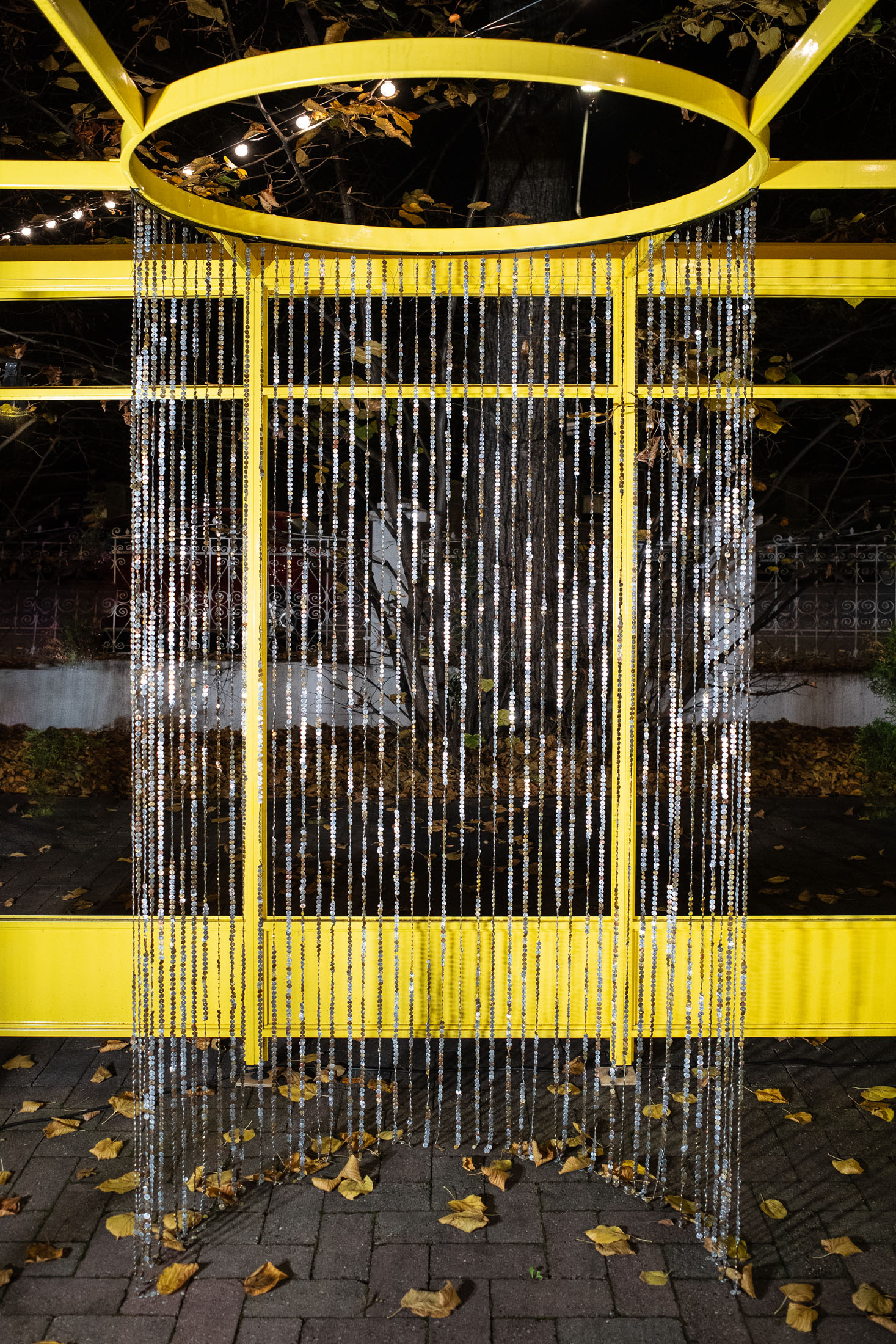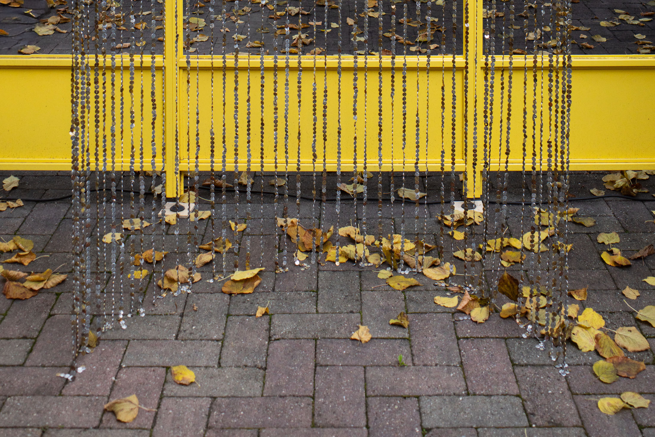 Fountain series – and systematically bound them together with thread to form a semicircular curtain.