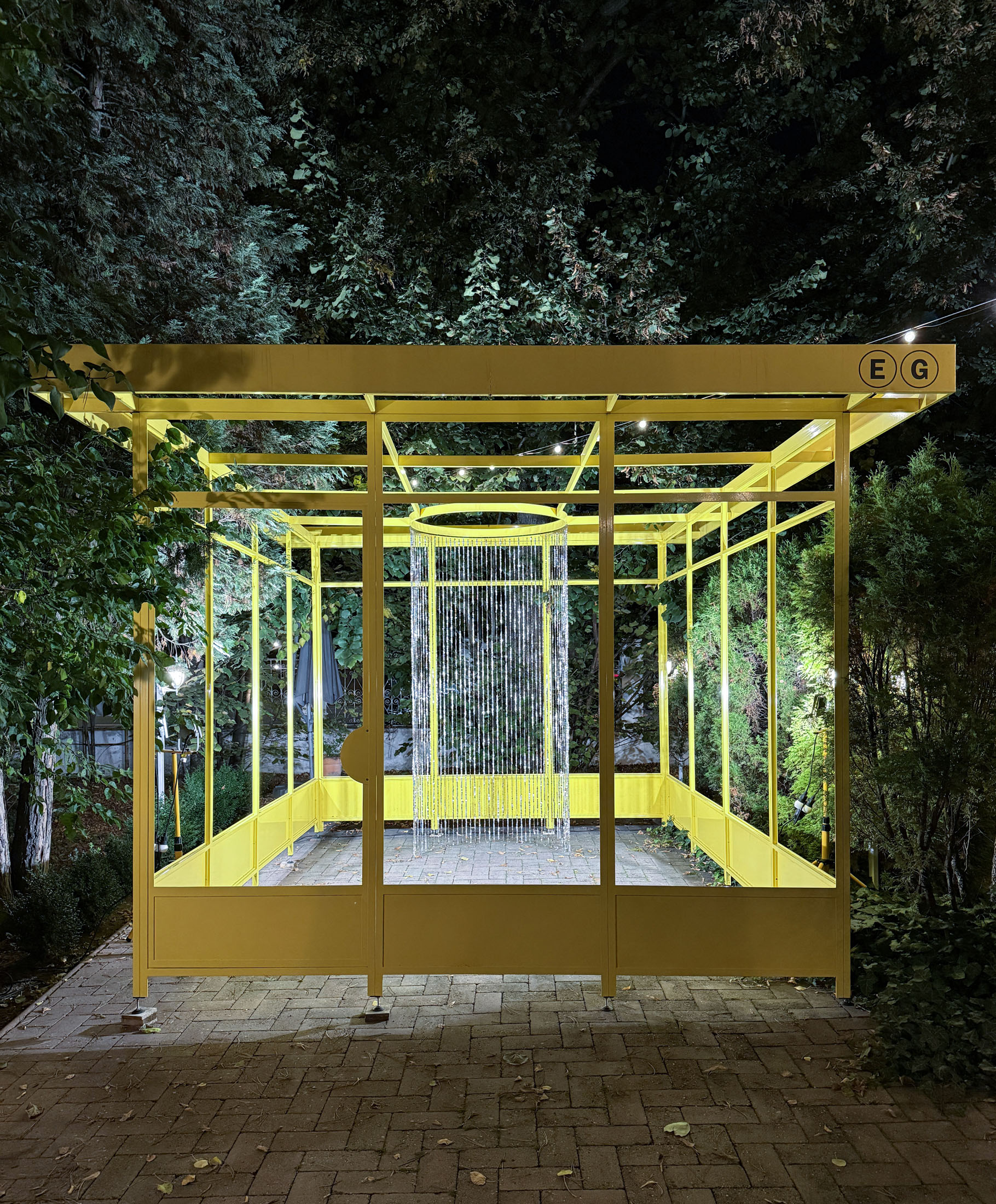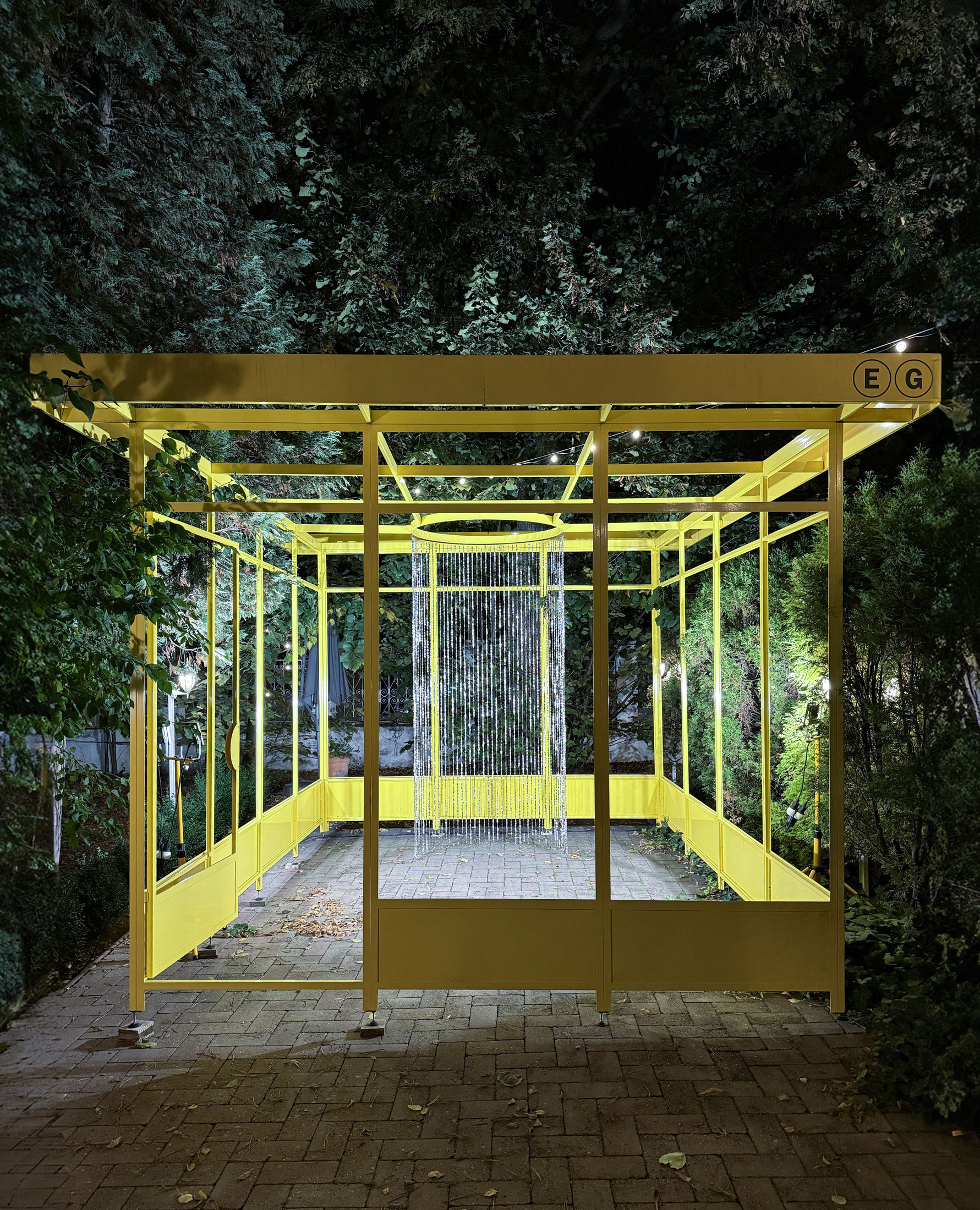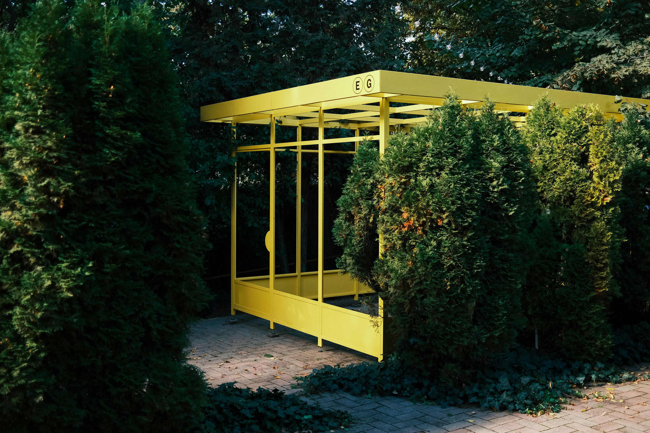 resonates with a lineage of modernist and conceptual precedents: from Jean Prouvé’s modular houses, Le Corbusier’s Cabanon and Esprit Nouveau, or Mies van der Rohe’s Farnsworth House, which brought structure into close relation with its natural setting, to Martin Kippenberger’s MOMAS and Elmgreen & Dragset’s Prada Marfa, both of which questioned the institutional and geographic framing of art. Comșa’s structure absorbs these precedents without quoting them, serving as an adaptable pavilion that can host exhibitions while also becoming an art object in itself – one that sits unapologetically between architecture and sculpture.