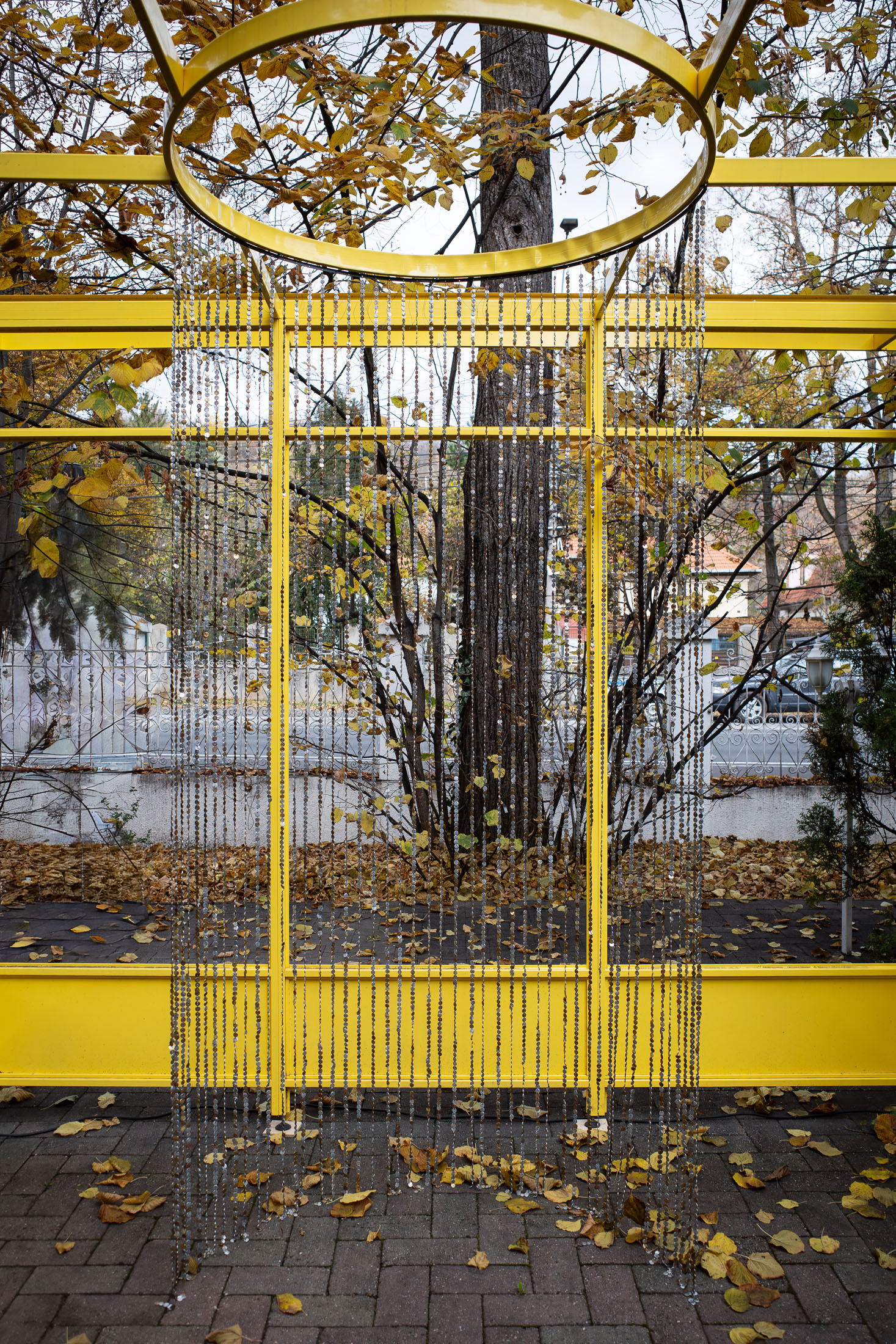 SABOT’s outpost, Extensor Geometrico, is a modular, mobile metal-frame exhibition space created by Radu Comșa, now temporarily situated in the garden of D’institute, a dentistry studio in Cluj-Napoca.