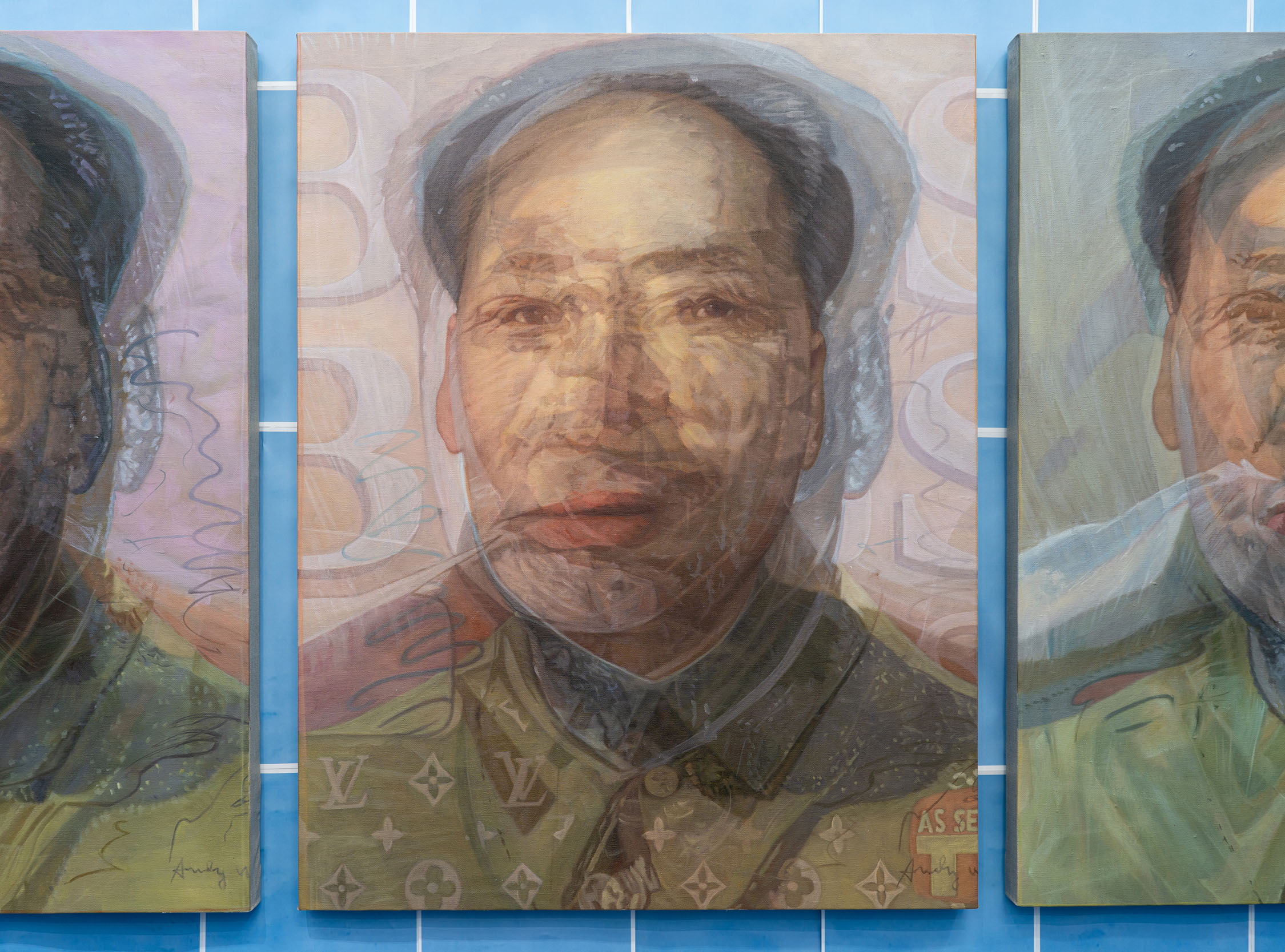 Wolfryd accelerates the process of pulverizing the central pillars upholding the work of art: authenticity, uniqueness, specificity—the supposed rationality of its value, the consistency of its relevance, appear in Wolfryd’s work as naked contingency: art objects unfold in time along supposedly progressive lines, but they must also exist under the aggressively transformative terms of geographical/cultural context—what does Mao’s face mean in North America? What becomes of Twombly’s calligraphic scribbles way past gringo postmodernity? Here, their presence, their experience as art objects merges with their experience of them as commodities—propped up by speculation, by fluctuating currency prices, indicators of crude oil, gold and steel, Amazon and Alibaba stocks, shored up by the logic of assets and financial instruments.