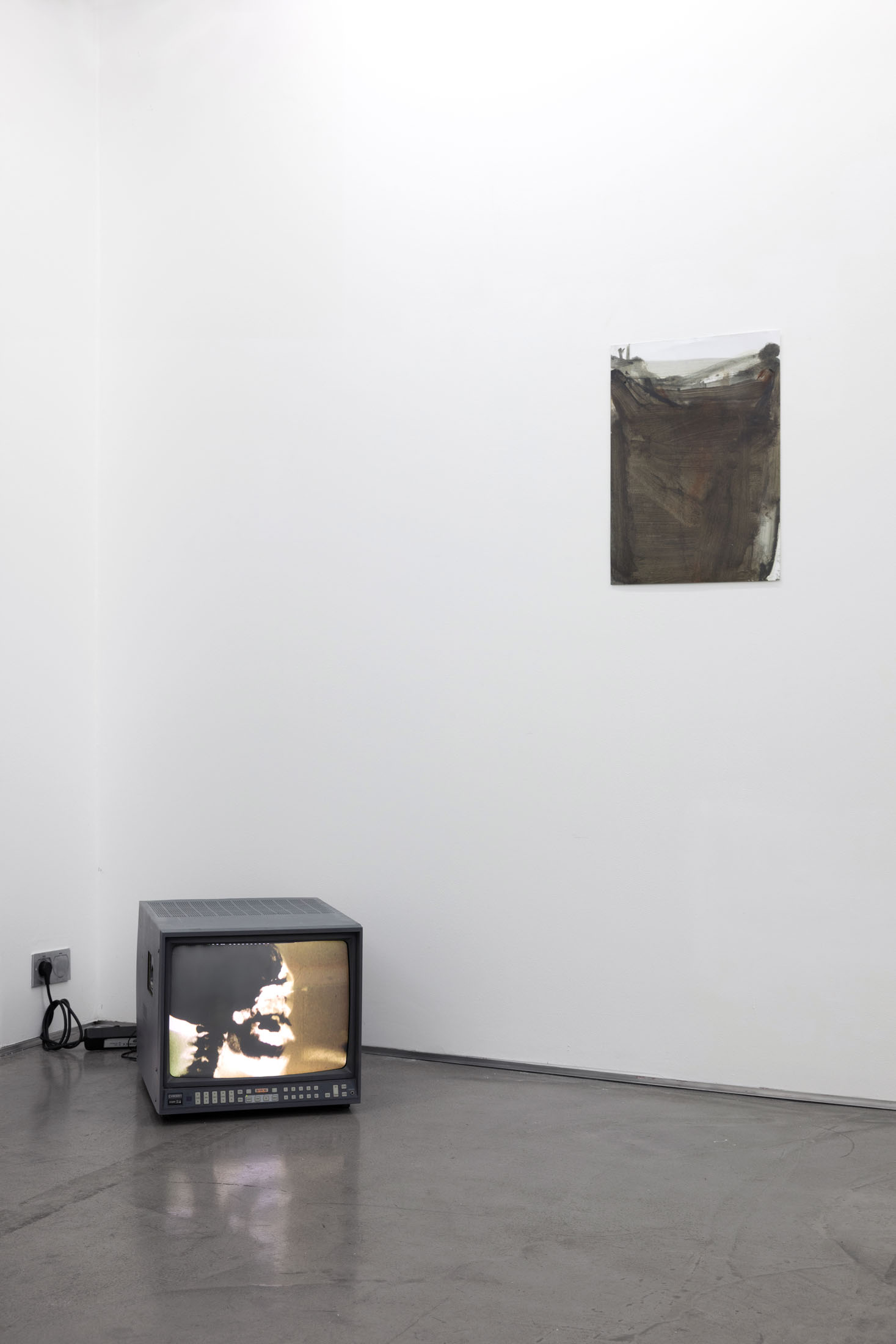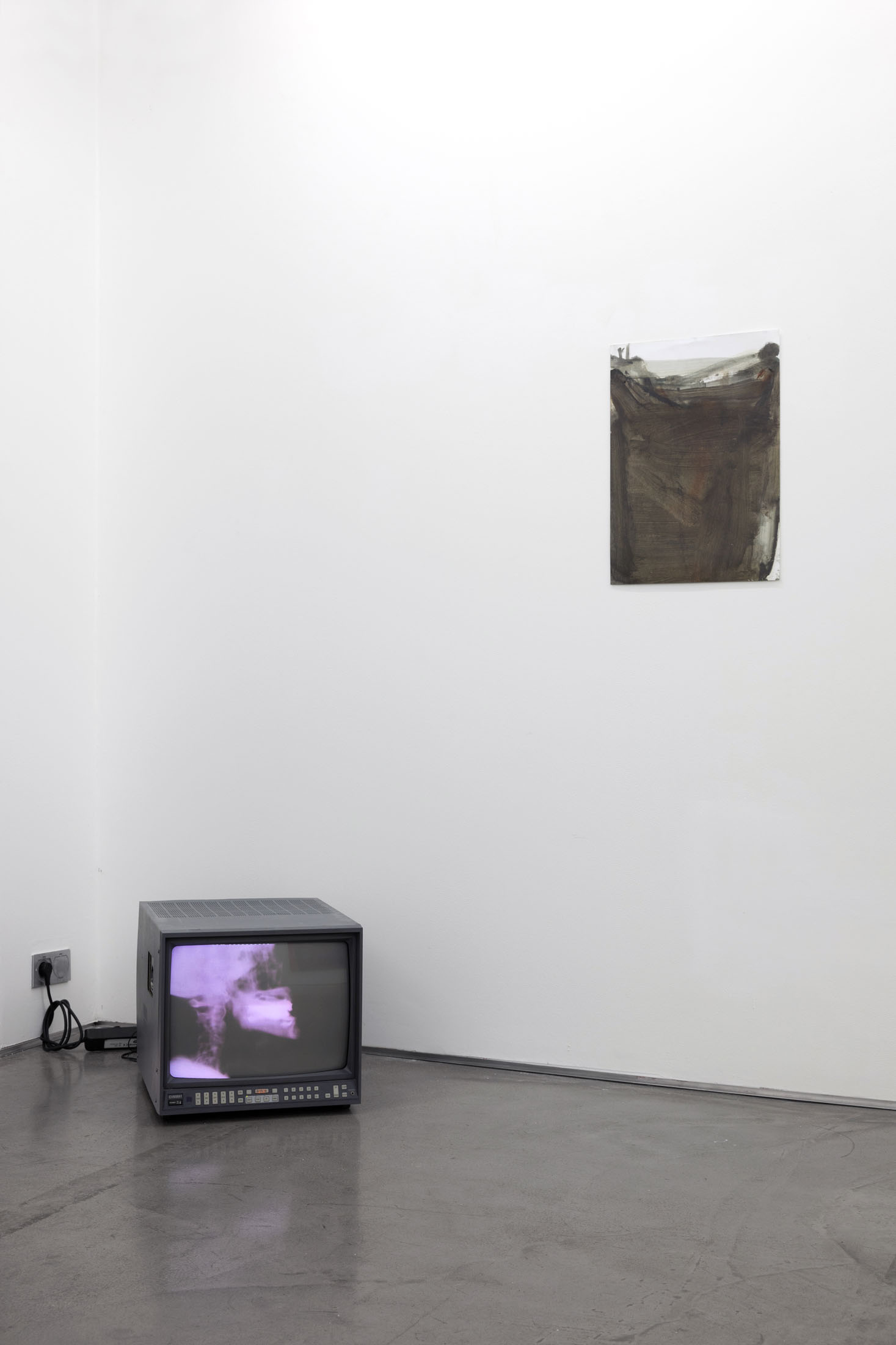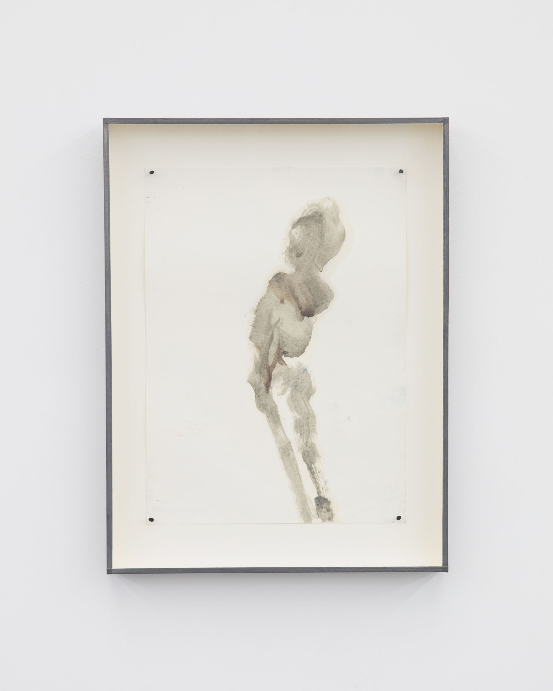 While Meyer depicts the fragility of organic and cellular systems, and Hammer preserves them by limiting herself to a “skeletal” representation, both artists nevertheless introduce the idea of fatality. Sixteen years after the making of Sanctus, Hammer was diagnosed with incurable ovarian cancer, raising questions about the harmful effects of radioactive imaging. Meyer’s paintings display bodies in perpetual mutation, inevitably evoking natural and biological cycles. The Pelvis series (nos. 30, 41, 33, 27, 52, Girl) conveys this (de)gradation through different states of the subject matter: while some papers perspire successive layers of oil, others are essentially carbonic (Girl). The exhibition thus introduces the image of the “carrion-body”, where the organic decays and only the carcass remains. Entitled Sanctus, the film evokes the duality between science and religion. For the medical field, sanctus means “in good health”, recalling the adage Mens sana in corpore sano. In the Book of Revelation, however, it becomes a call to prayer to the Lord Sabaoth, the celestial god of the night. This religious reference resonates with the analog score created by Neil Rolnick, which brings together the Sanctus section of five different composers. Like a danse macabre, skeletons move to the rhythm of experimental prayers. This mesmerizing and erotic choreography continues in Tarp, a work inspired by Holbein’s Death’s Apparitions (1785)2, where a skeleton, a funereal emissary, captures two lovers in an embrace with the sweep of a sheet.