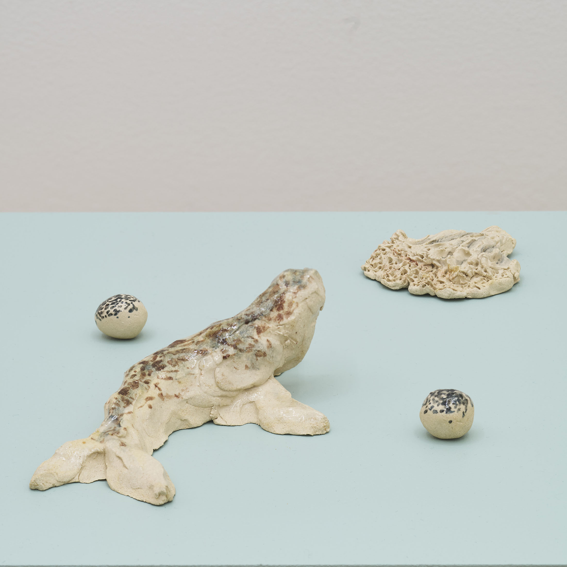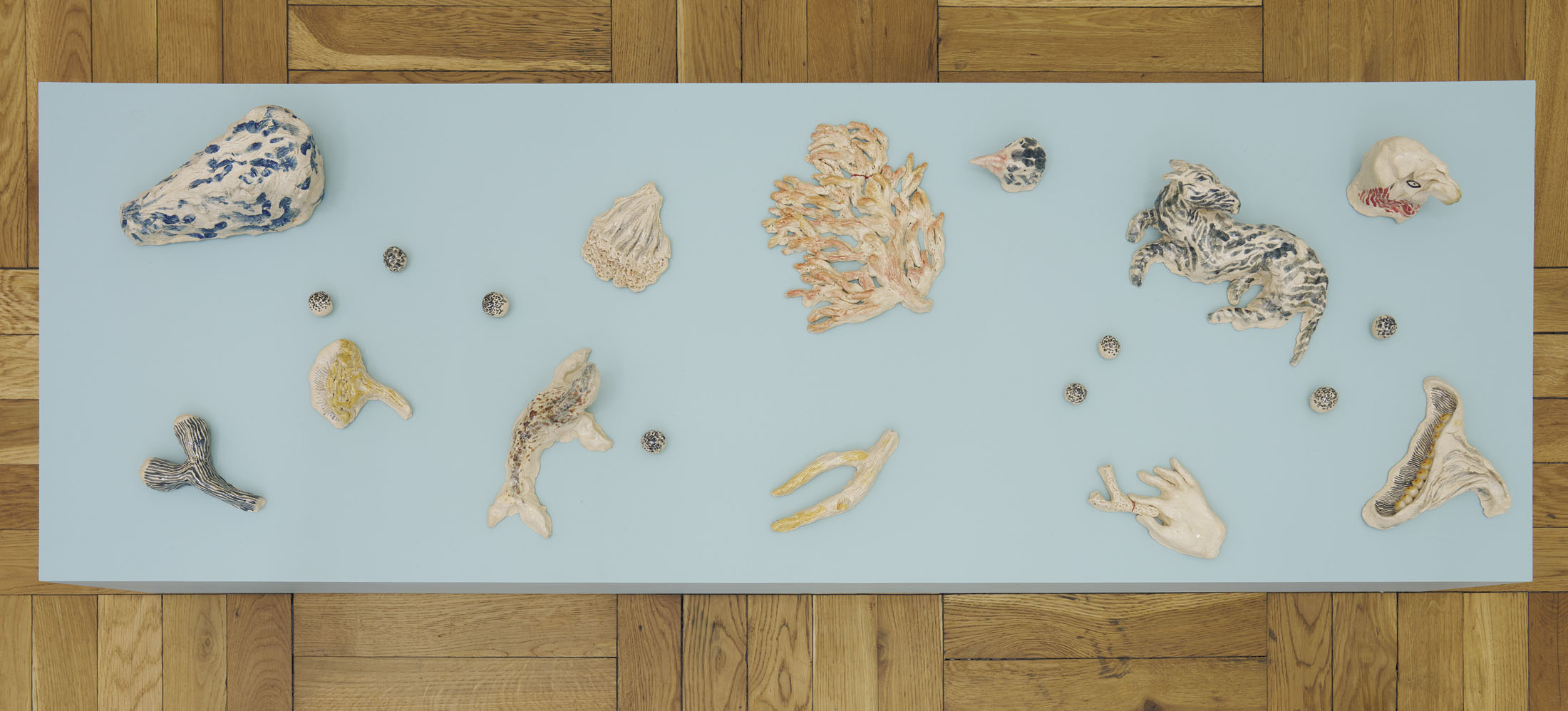 In her works at Entrée, Kanstad Johnsen plays with proportions, magnifying the microscopic and juxtaposing it with familiar creatures. It can be experienced as an underwater landscape where past, present, and future flow together. One of her sources of inspiration is the Chauvet Cave in southern France, home to the oldest known cave paintings.