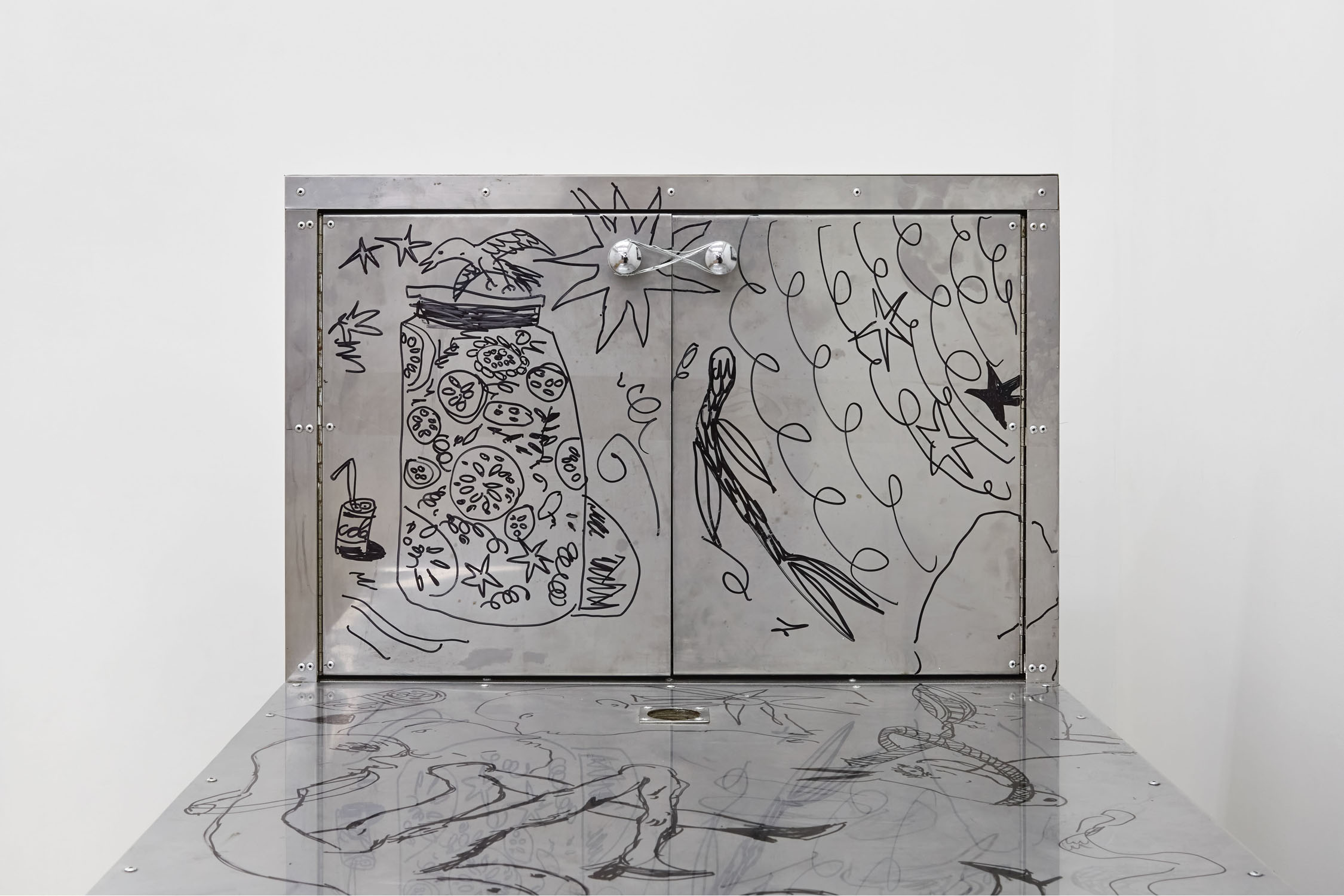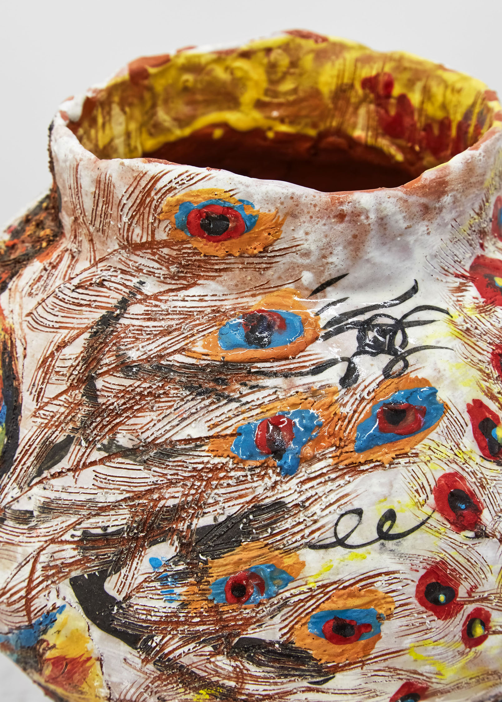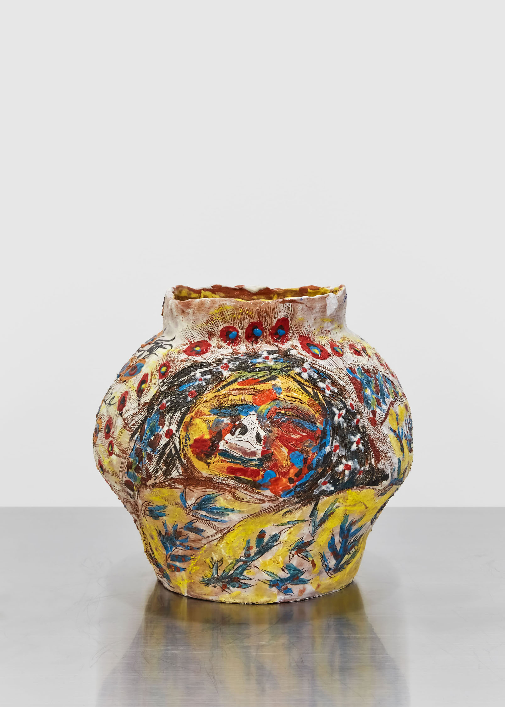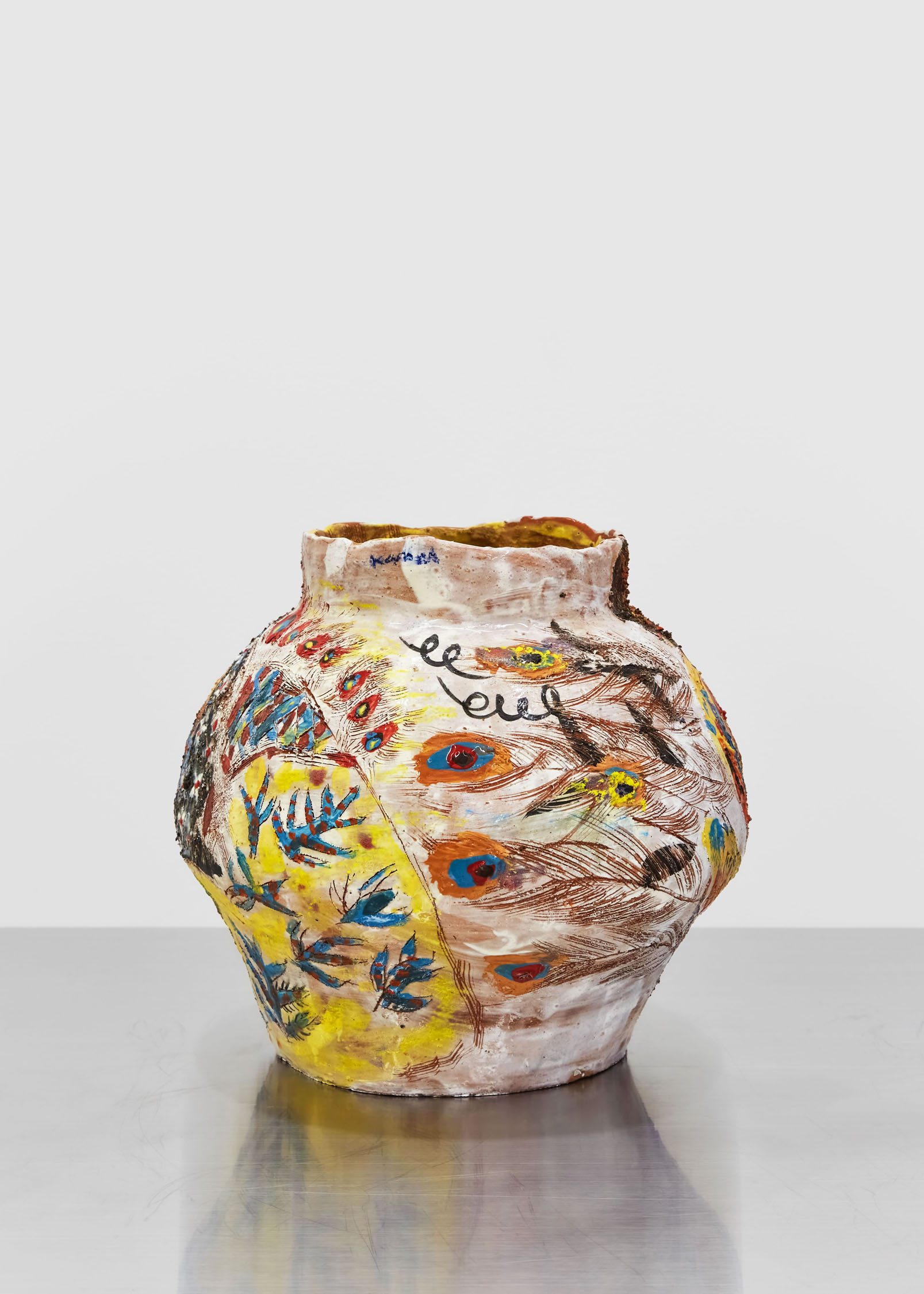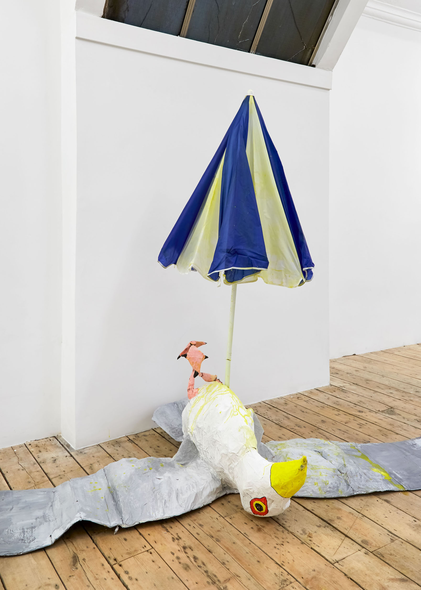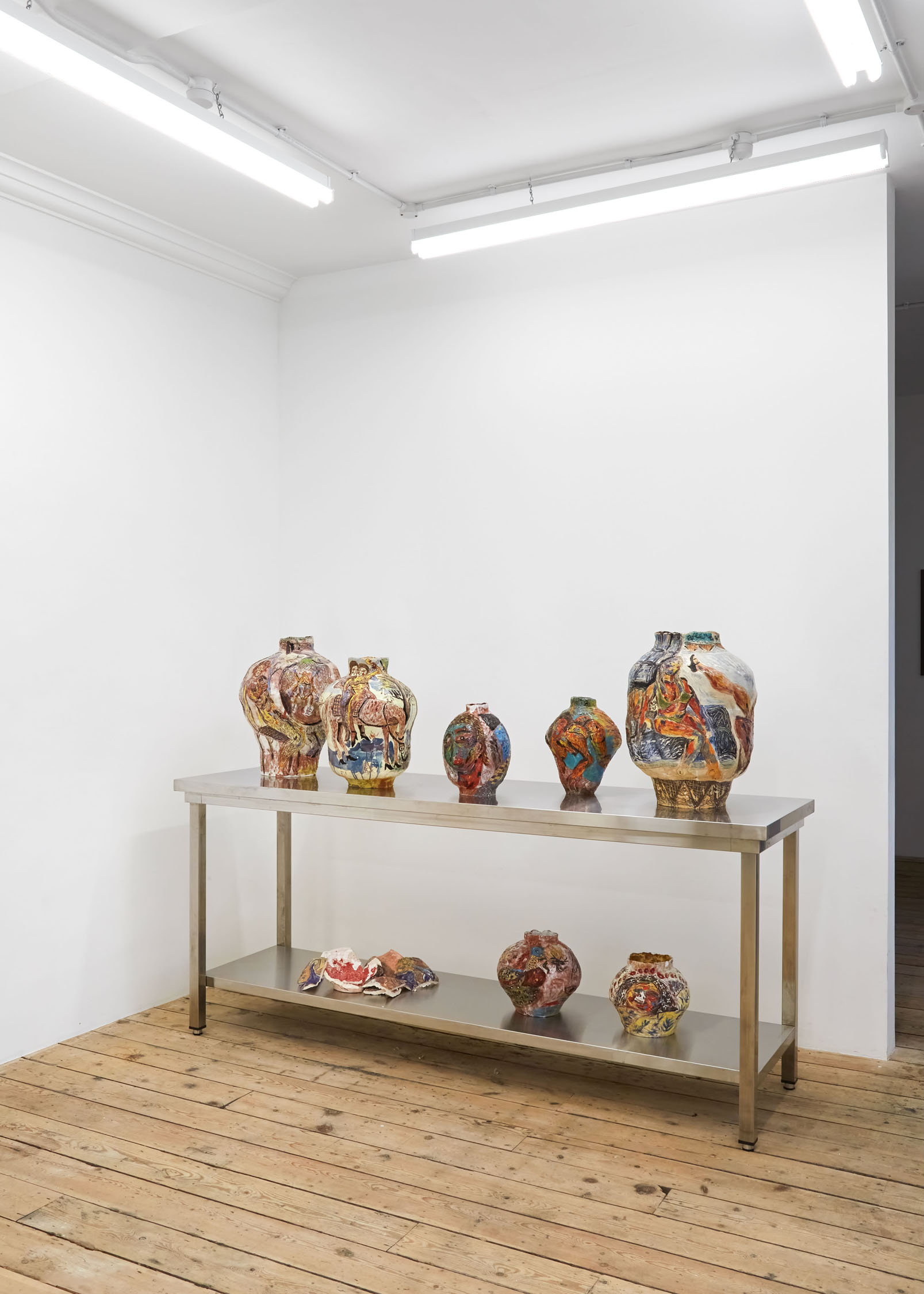 Maria Metsalu gives TINA and its London audience a new iteration of Kultuur, an ongoing performance work that animates a dialogue with the sun. Kultuur presents an anthropomorphised wildflower as an object of spectacle, while at the same time illuminating and complexifying some universal paradoxes of existence; the sun as something that gives life and energy, but something that can burn right through it. Metsalu confronts audiences in such a way that also scorns this spectacle, and the performance offers a moment of reflection, for all involved, on participation and complicity – a collective assemblage of exchange, of ritual, of unexpected and unknowable participation. The performance begins in the street, where people witness the artist’s interactions with a ubiquitous element of urban life, the hotdog vendor. With a hypnotic candour, and with intensities varying between states of pleasure, indifference, suffering and hope, audiences are led, pied piper-like, to TINA. Here, the collective body of the audience orbit the sun – an environment collaboratively made by Metsalu and Boumjimar in the gallery space. Kultuur includes the collaboration of various other artists in its conception and production; a text written by Jaakko Pallasvuo, sound design by Artjom Astrov, outfits designed by Kris Lemsalu together with Lotte Jürjendal and CRUDACRUDA, and a range of artefacts designed and built by Nikola Knezevic and Bruno Lillemets. While Karim Boumjimar creates the food as part of Kultuur, for TINA’s edition, Boumjimar presents drawings and ceramics to accompany the event and exhibition. The invited collaborators and the audience of Kultuur are a collective body that is fed, entertained and questioned. At TINA, the performance is divided into two parts – the parade at the hot dog cart and the devouring of the Sun, table d’hôte. Kultuur is a celebration of life and its dualities – a celebration of its fleeting and sensual nature.