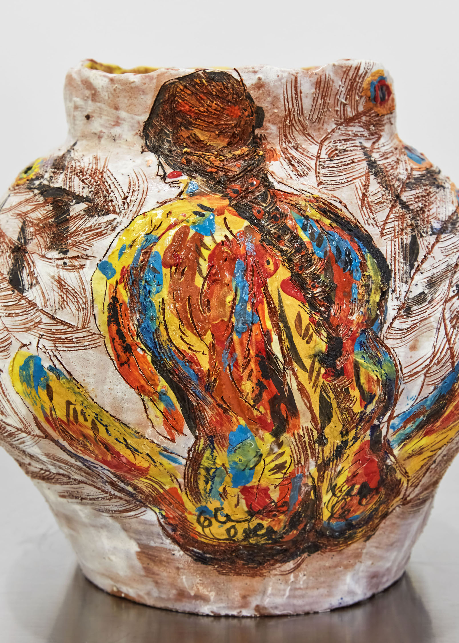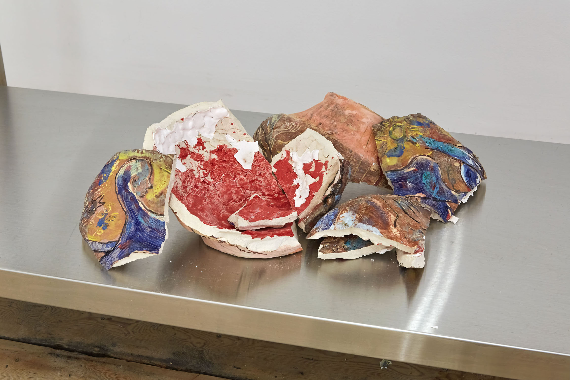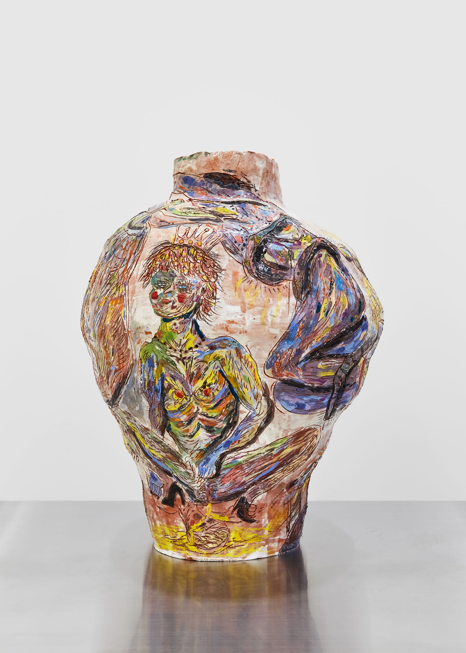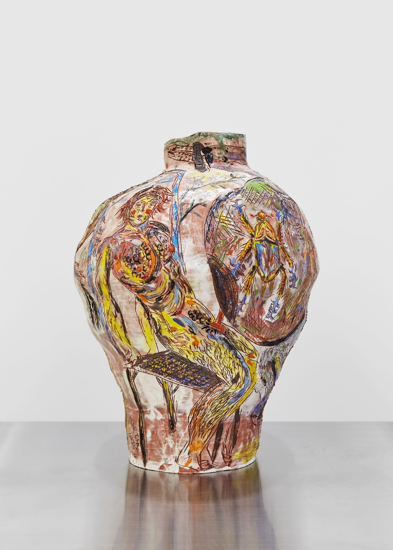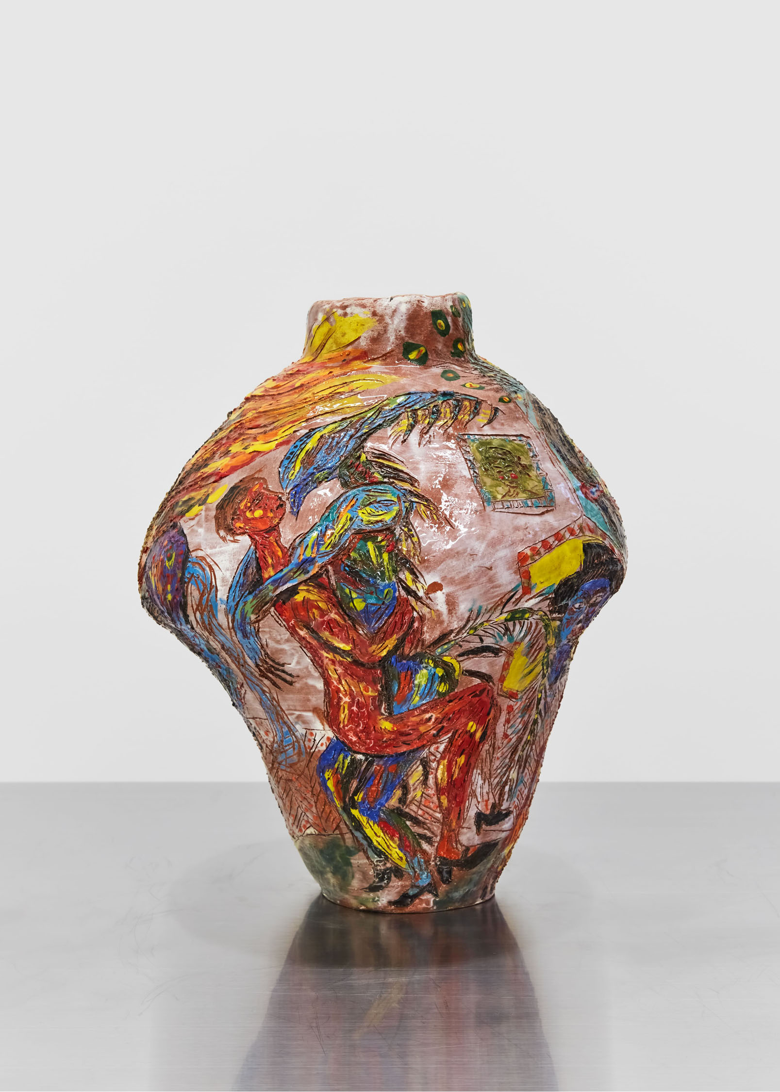 Maria Metsalu gives TINA and its London audience a new iteration of Kultuur, an ongoing performance work that animates a dialogue with the sun. Kultuur presents an anthropomorphised wildflower as an object of spectacle, while at the same time illuminating and complexifying some universal paradoxes of existence; the sun as something that gives life and energy, but something that can burn right through it. Metsalu confronts audiences in such a way that also scorns this spectacle, and the performance offers a moment of reflection, for all involved, on participation and complicity – a collective assemblage of exchange, of ritual, of unexpected and unknowable participation. The performance begins in the street, where people witness the artist’s interactions with a ubiquitous element of urban life, the hotdog vendor. With a hypnotic candour, and with intensities varying between states of pleasure, indifference, suffering and hope, audiences are led, pied piper-like, to TINA. Here, the collective body of the audience orbit the sun – an environment collaboratively made by Metsalu and Boumjimar in the gallery space. Kultuur includes the collaboration of various other artists in its conception and production; a text written by Jaakko Pallasvuo, sound design by Artjom Astrov, outfits designed by Kris Lemsalu together with Lotte Jürjendal and CRUDACRUDA, and a range of artefacts designed and built by Nikola Knezevic and Bruno Lillemets. While Karim Boumjimar creates the food as part of Kultuur, for TINA’s edition, Boumjimar presents drawings and ceramics to accompany the event and exhibition. The invited collaborators and the audience of Kultuur are a collective body that is fed, entertained and questioned. At TINA, the performance is divided into two parts – the parade at the hot dog cart and the devouring of the Sun, table d’hôte. Kultuur is a celebration of life and its dualities – a celebration of its fleeting and sensual nature.