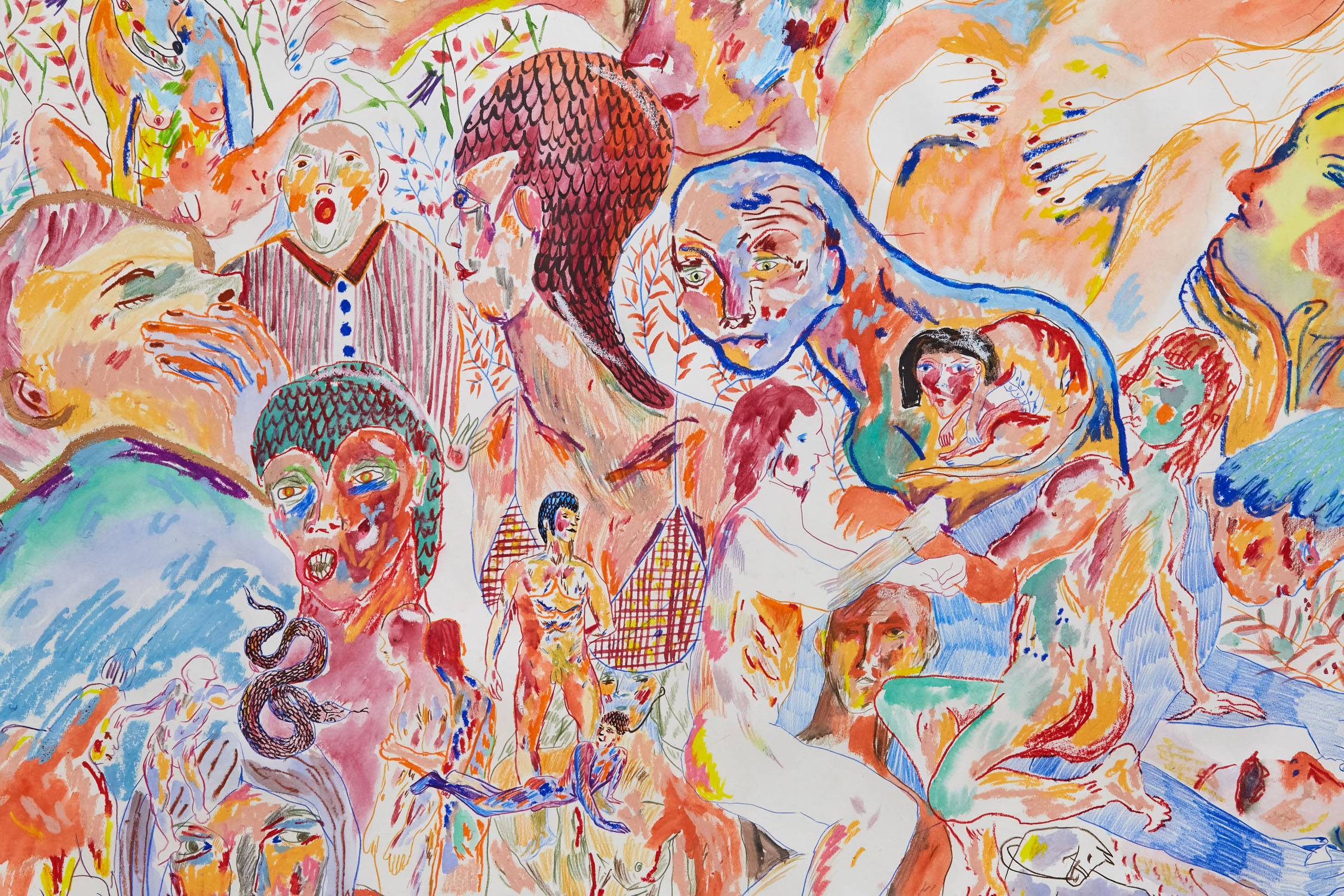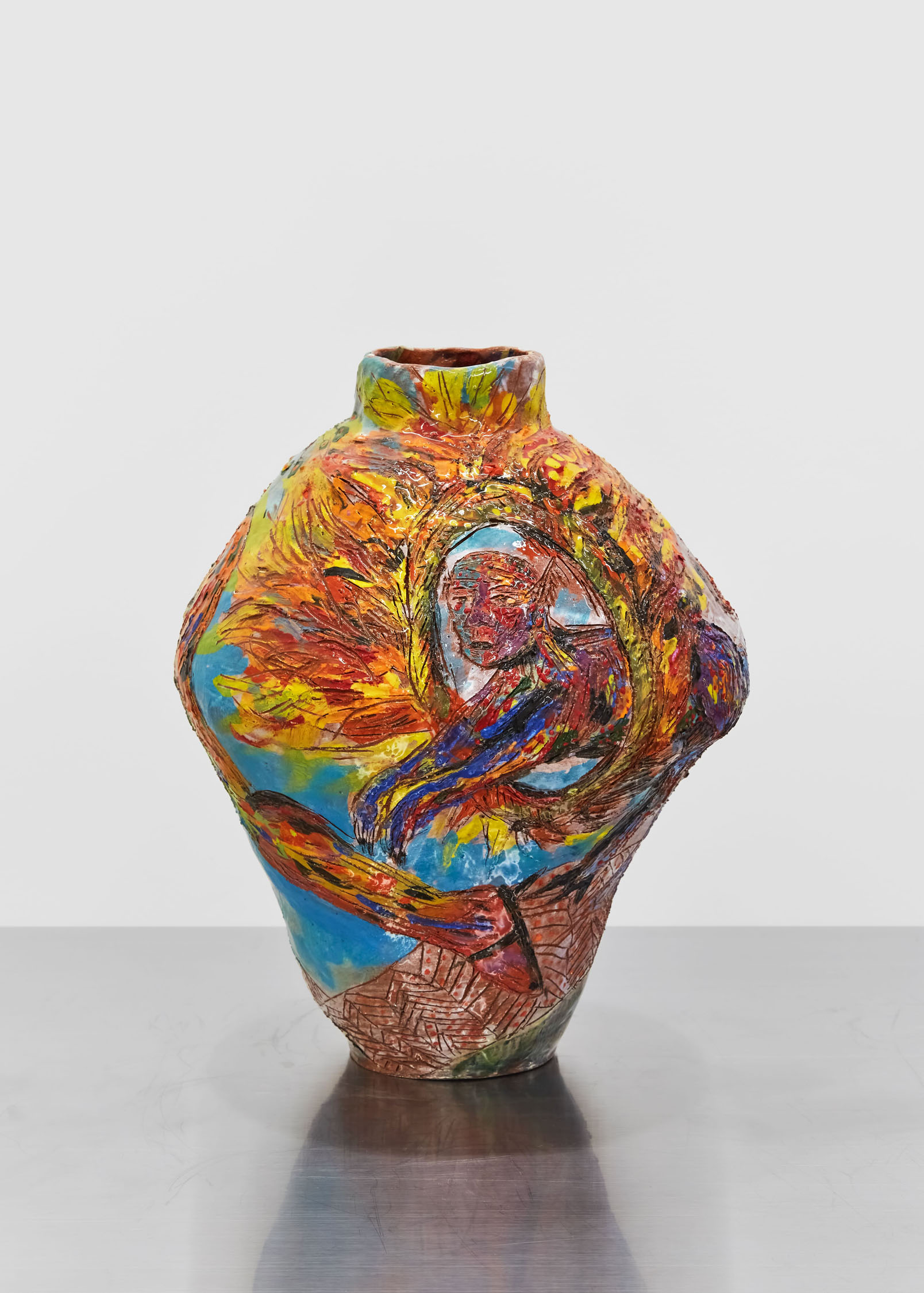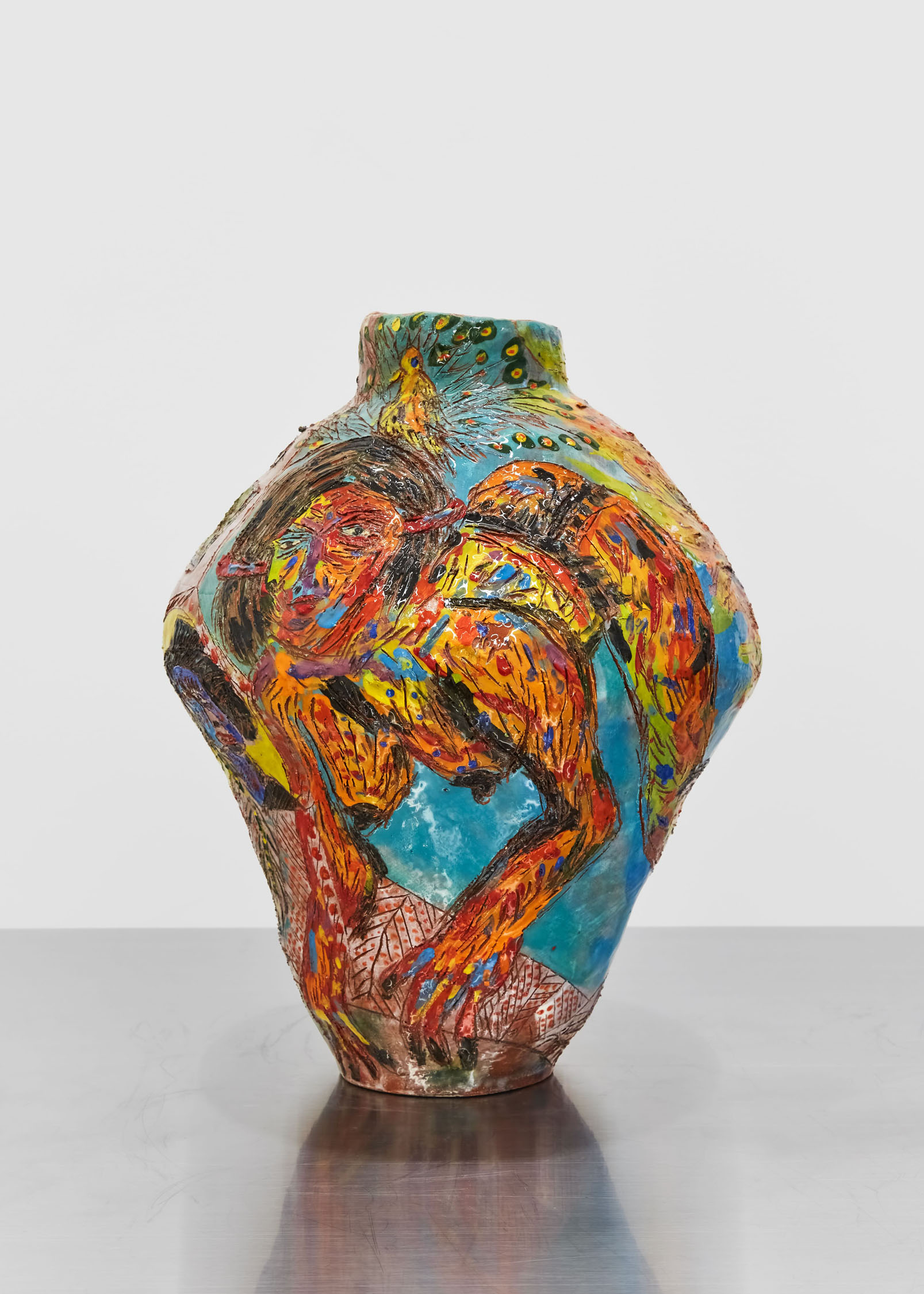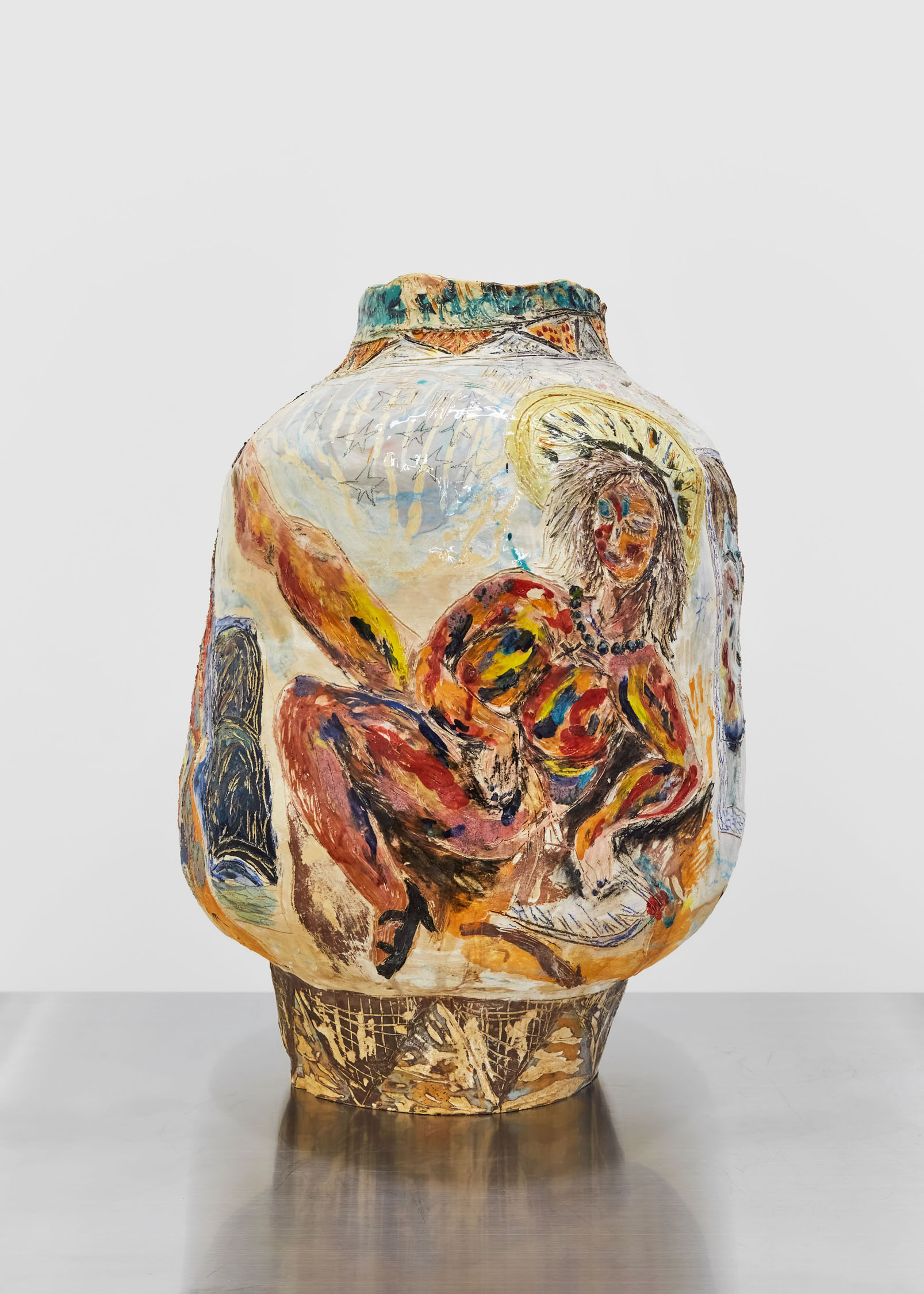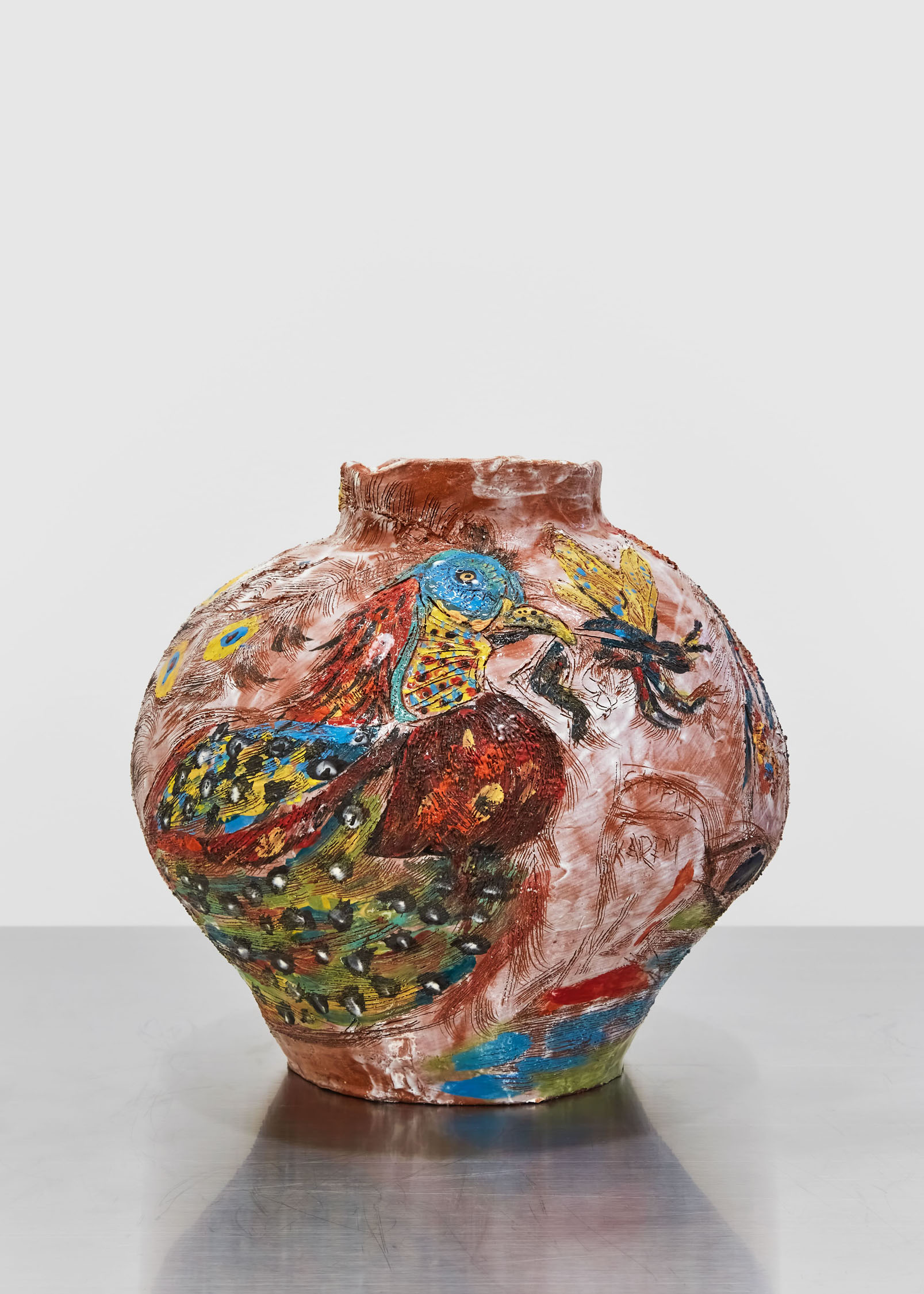 Maria Metsalu gives TINA and its London audience a new iteration of Kultuur, an ongoing performance work that animates a dialogue with the sun. Kultuur presents an anthropomorphised wildflower as an object of spectacle, while at the same time illuminating and complexifying some universal paradoxes of existence; the sun as something that gives life and energy, but something that can burn right through it. Metsalu confronts audiences in such a way that also scorns this spectacle, and the performance offers a moment of reflection, for all involved, on participation and complicity – a collective assemblage of exchange, of ritual, of unexpected and unknowable participation. The performance begins in the street, where people witness the artist’s interactions with a ubiquitous element of urban life, the hotdog vendor. With a hypnotic candour, and with intensities varying between states of pleasure, indifference, suffering and hope, audiences are led, pied piper-like, to TINA. Here, the collective body of the audience orbit the sun – an environment collaboratively made by Metsalu and Boumjimar in the gallery space. Kultuur includes the collaboration of various other artists in its conception and production; a text written by Jaakko Pallasvuo, sound design by Artjom Astrov, outfits designed by Kris Lemsalu together with Lotte Jürjendal and CRUDACRUDA, and a range of artefacts designed and built by Nikola Knezevic and Bruno Lillemets. While Karim Boumjimar creates the food as part of Kultuur, for TINA’s edition, Boumjimar presents drawings and ceramics to accompany the event and exhibition. The invited collaborators and the audience of Kultuur are a collective body that is fed, entertained and questioned. At TINA, the performance is divided into two parts – the parade at the hot dog cart and the devouring of the Sun, table d’hôte. Kultuur is a celebration of life and its dualities – a celebration of its fleeting and sensual nature.