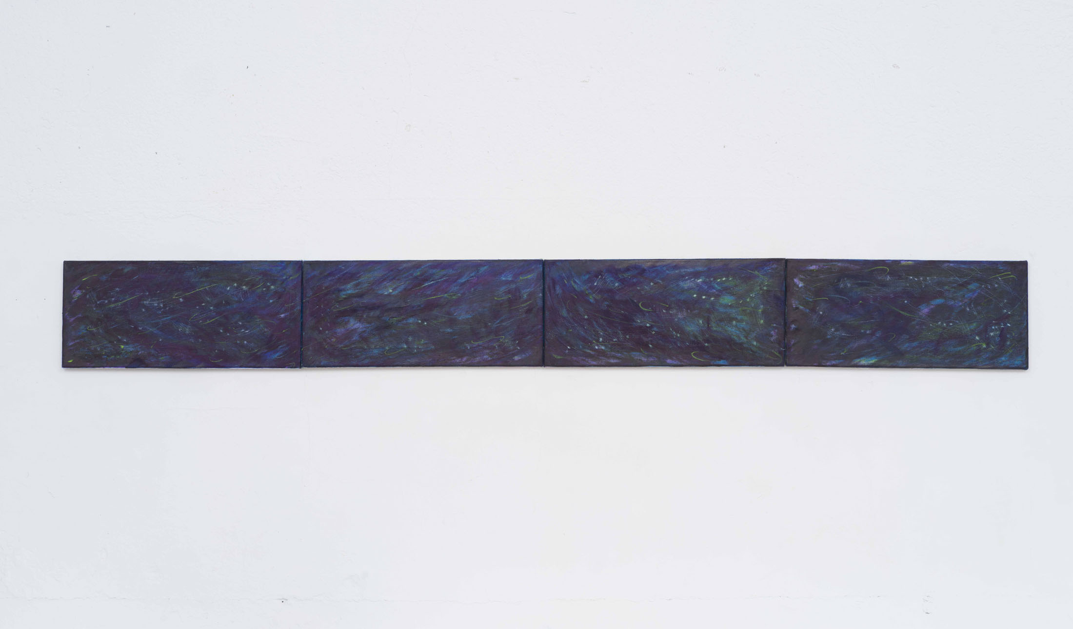 Finally, Sublime anthropocenic landscapes become cathartic ventures overlapping with objects of daily life, and the reminiscence of their shape altered by time and intuition. They evoke the strongest of emotions as I paint with veils casein and cangiante colours.