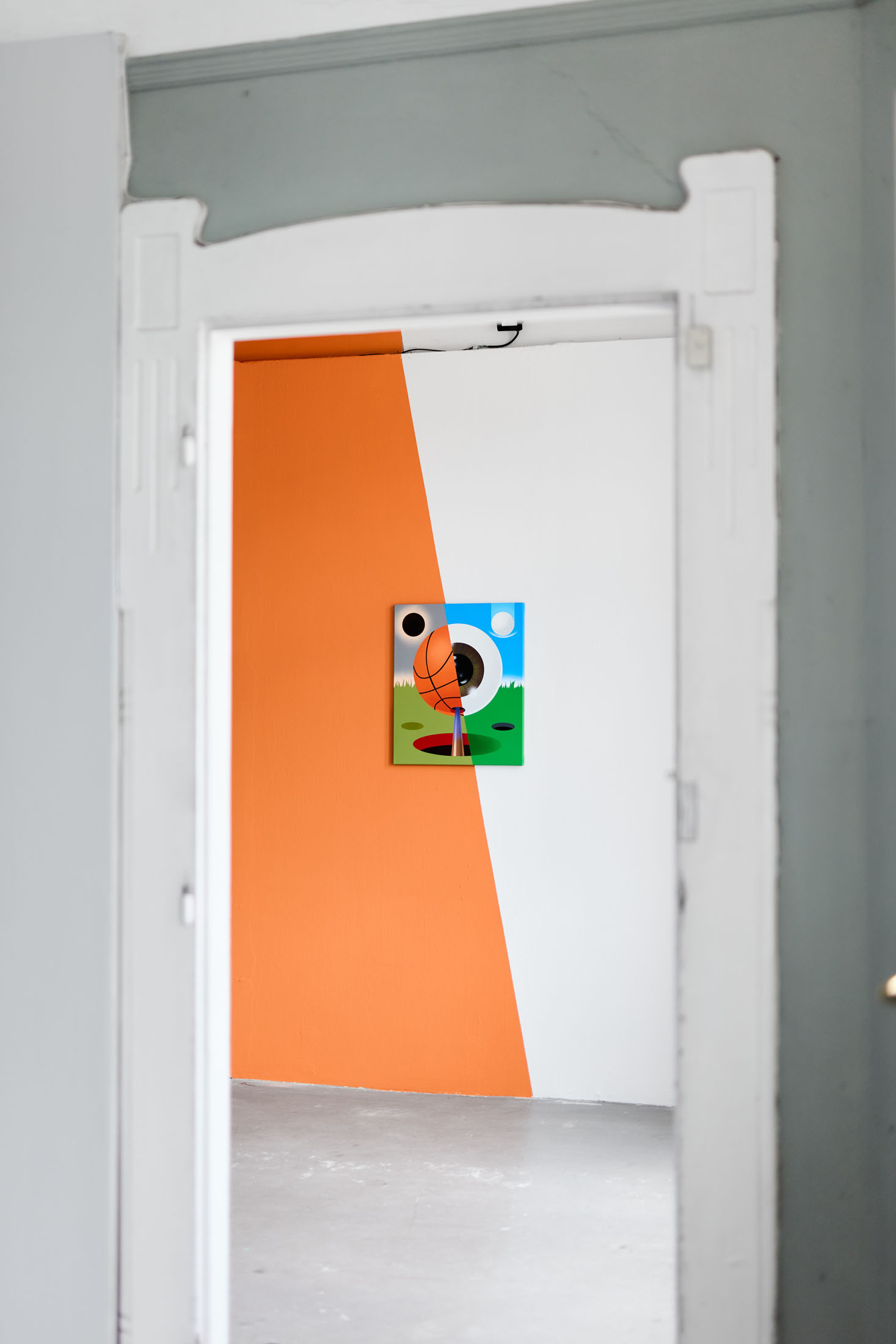 We might also say they engage in a continuously flickering, staccato-like movement, much like the bouncing sports balls that populate the works-objects that allegorize the restlessly shifting gaze of the viewer, forced into perpetual motion. These balls, as objectified stand-ins for a bodiless eye, frequently leap out of one picture frame only to reappear in another-linked together like a golden path in a waterside sunset or as a solitary polka-dot sphere that has escaped to another point in the exhibition.