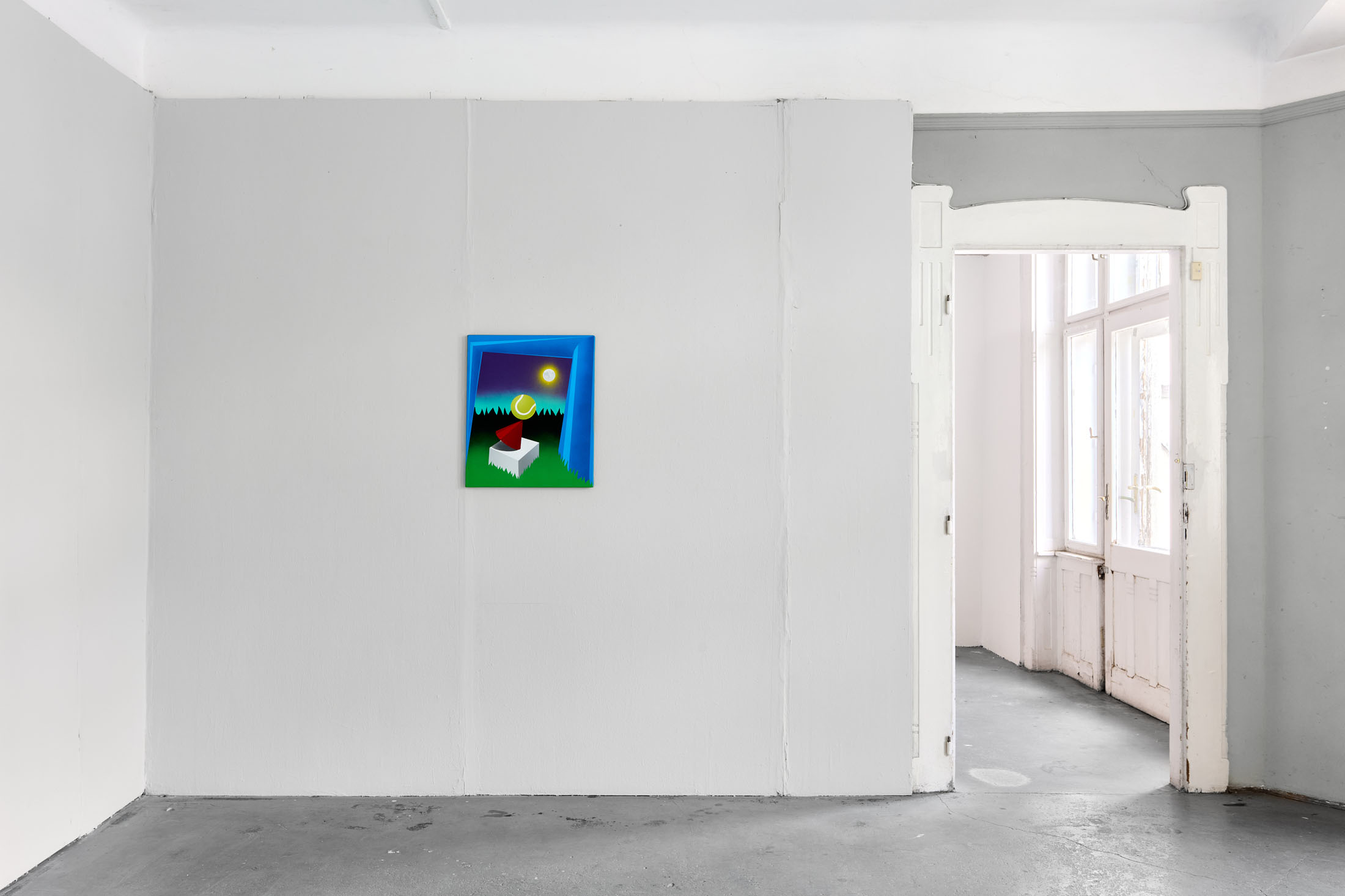 Góth Martin’s latest solo exhibition creates an intense dialogue between the interlocking structures of vision, cognition, and painting- with the precision of surgical technique. In this meticulously composed body of work, metaphysics emerges not only as an abstract philosophical concept, but also as a performative act: an aesthetic staging of dramatized visual worlds where ordinary elements of everyday reality merge with otherworldly suspicions and liminal experiences.
