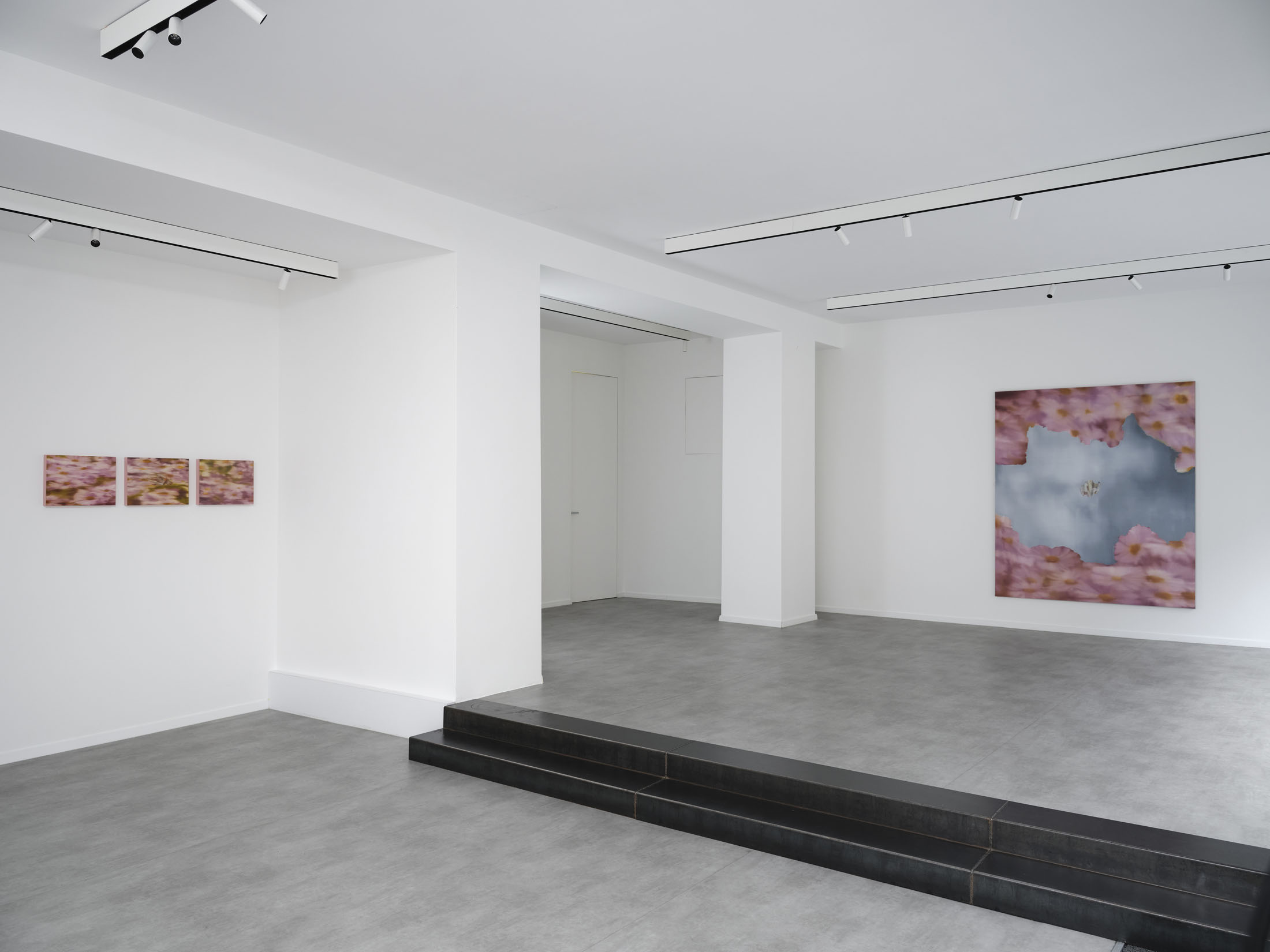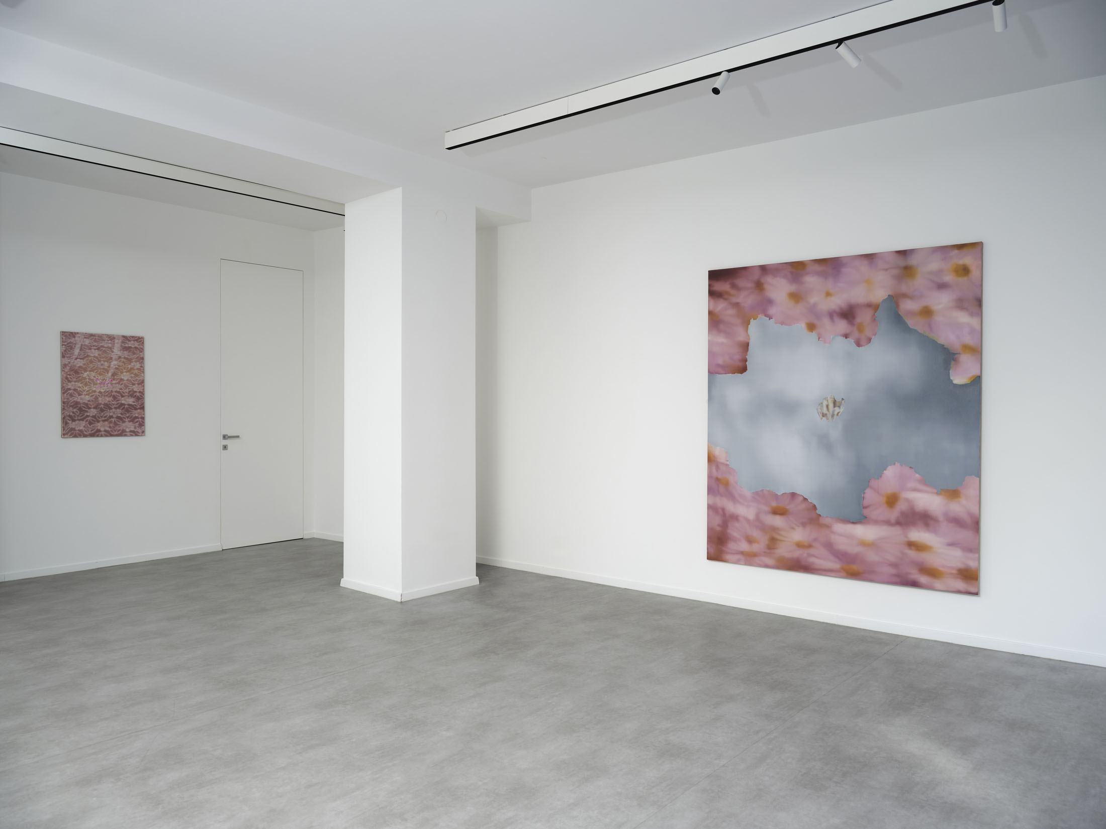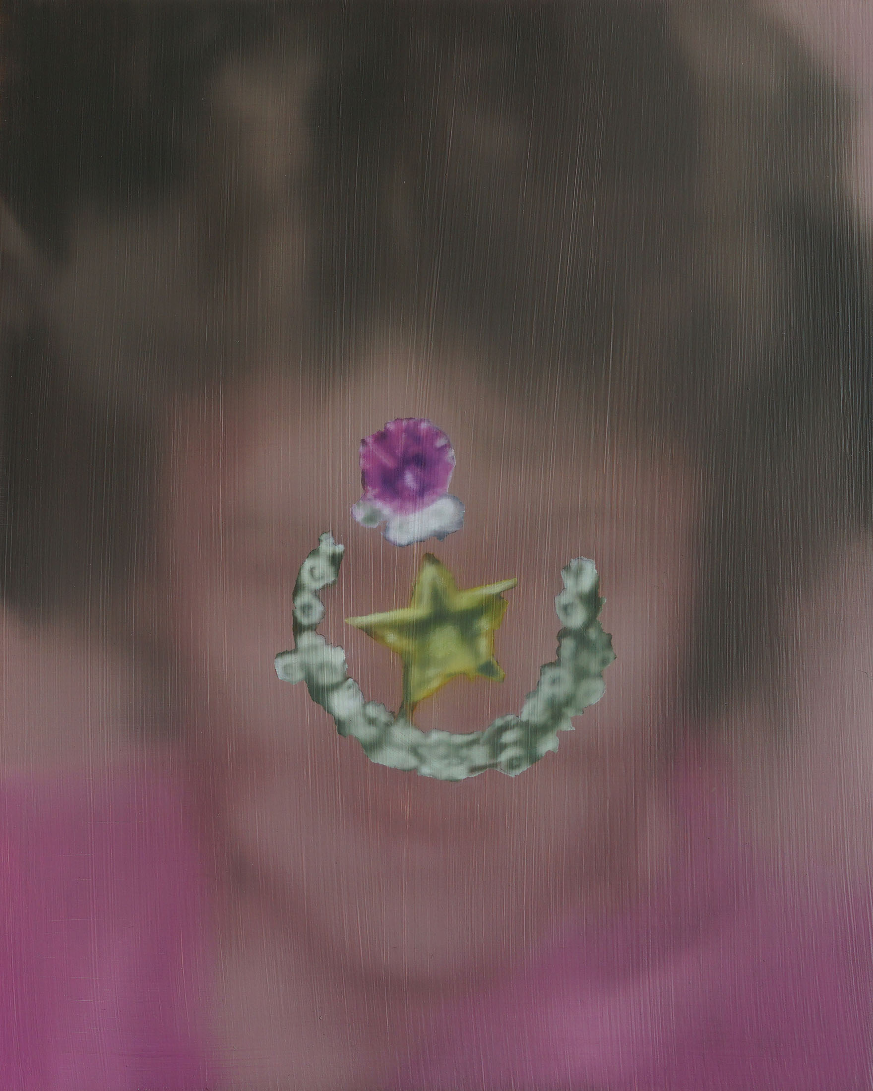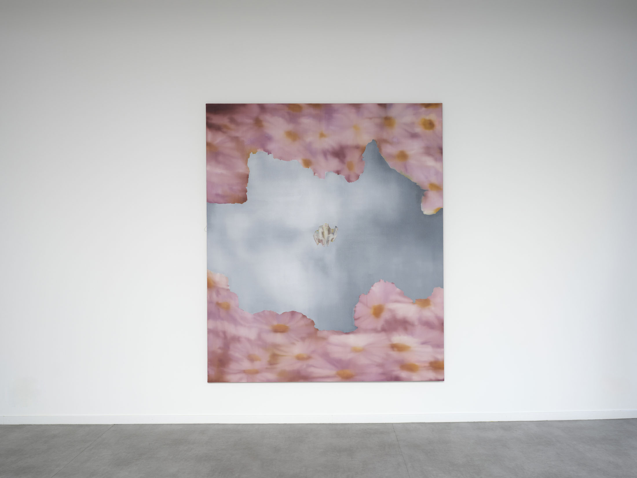 All stories sentimentalise. Just like memory. When Martina Grlić takes a photograph from her family albums as a starting-point, she enters into the deceptiveness of memory (because there is no escaping it), consciously working with its distortions. Her paintings are not documents, but rather constructs; what draws us in is the truthfulness of the scene, but the manner in which it is arranged to satisfy us. Decorative props float above sfumato daisies and portraits of smiling women. Everything is rosy, soft, so sweet. The idyll hovers at the edges. “There’s nothing beautiful in these paintings”, says the artist; the familiar at once transforms into the strange. The uncanny creeps in.