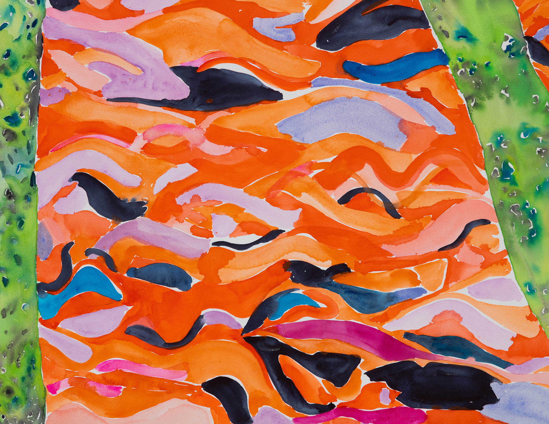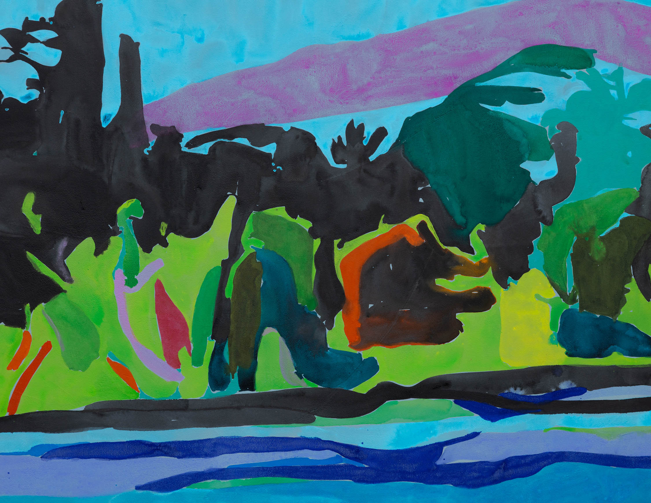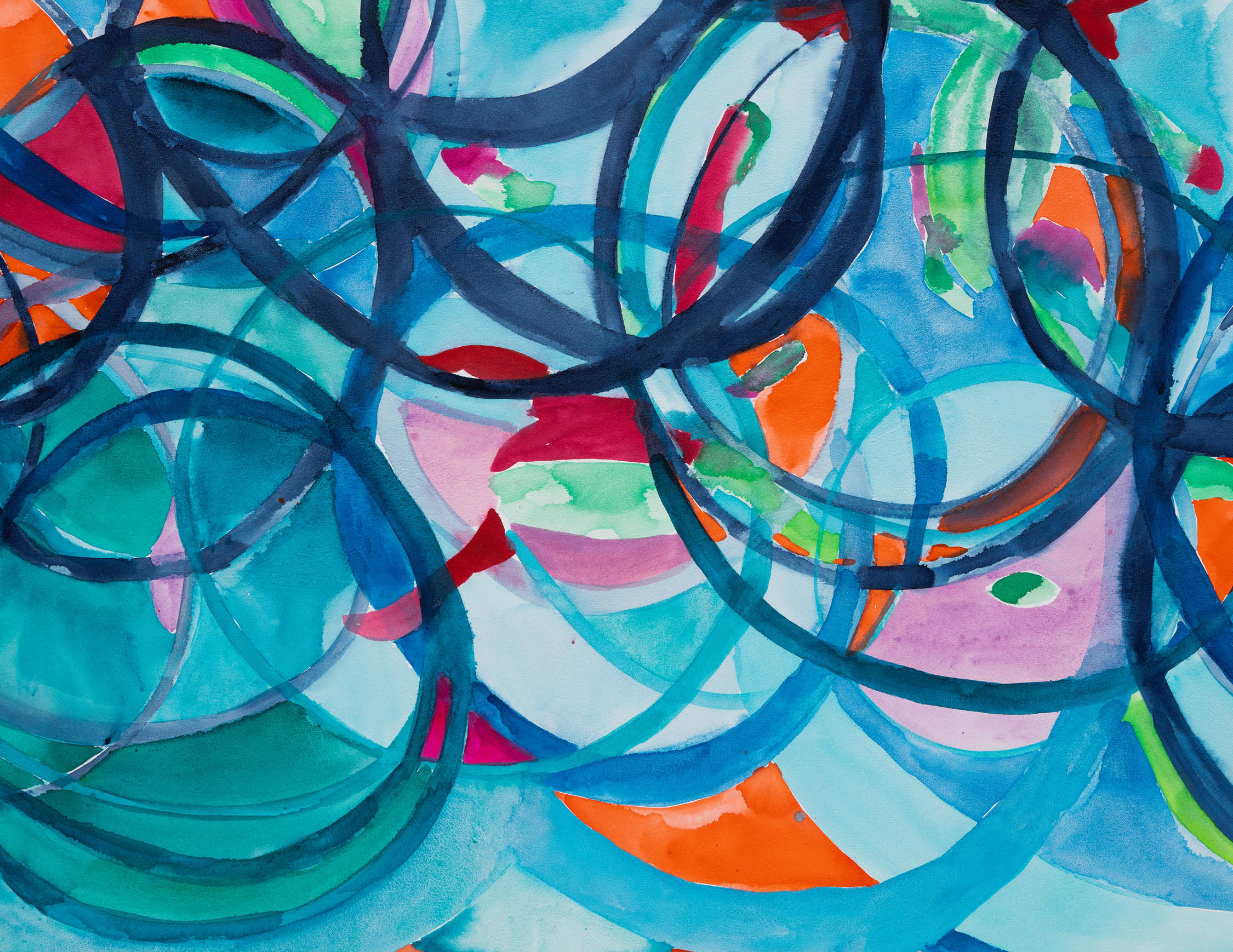 Maru Aponte uses watercolour as a way to explore the fundamental qualities of light, movement, and place. Often drawing upon her home territory of Puerto Rico, she creates large scale, expansive paintings that envelope the viewer in color.