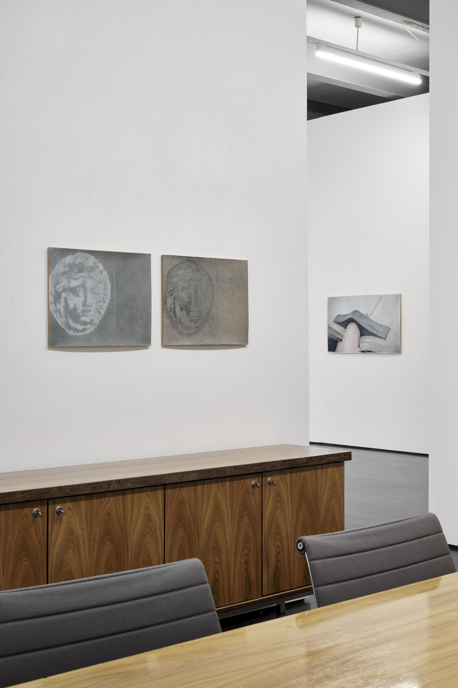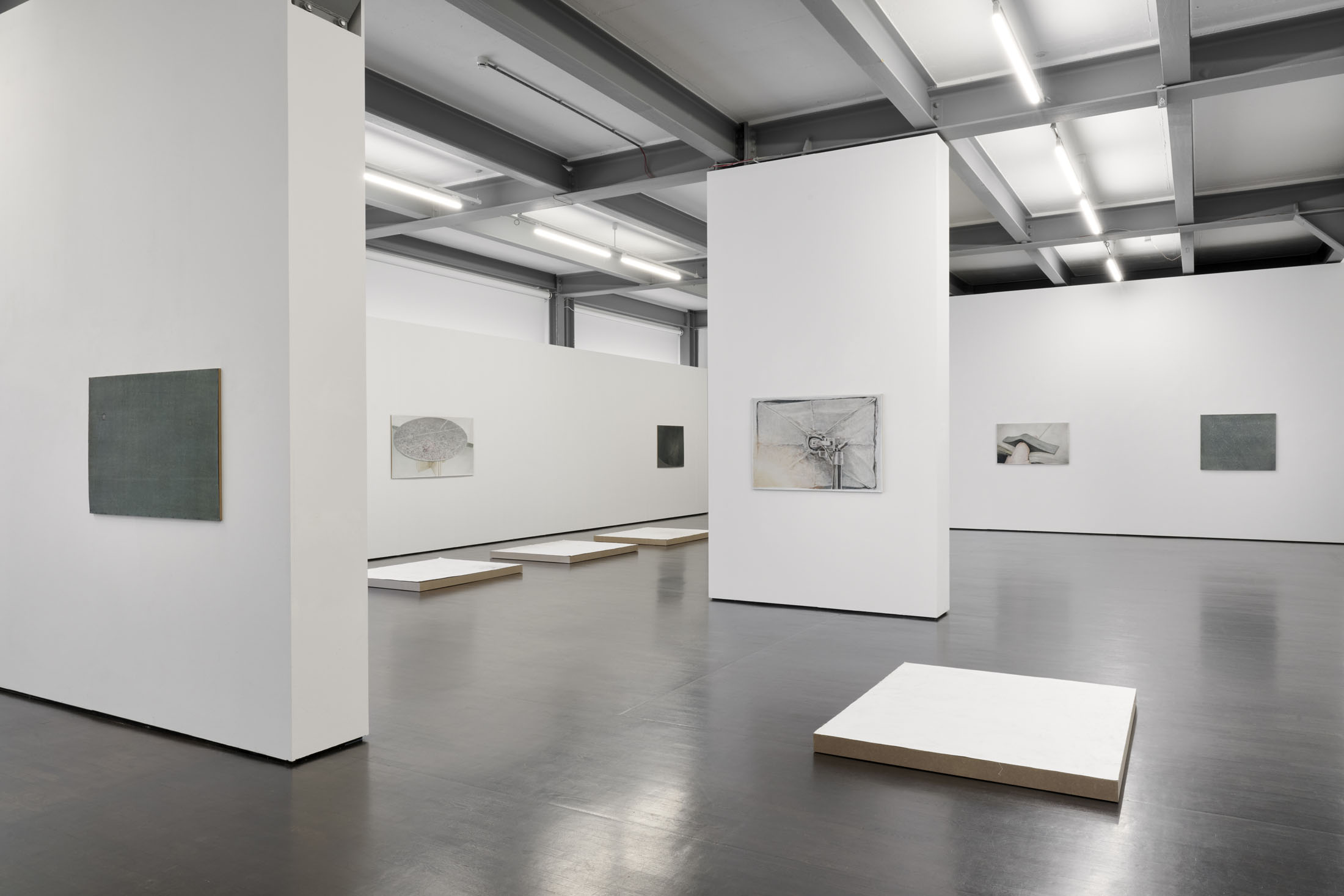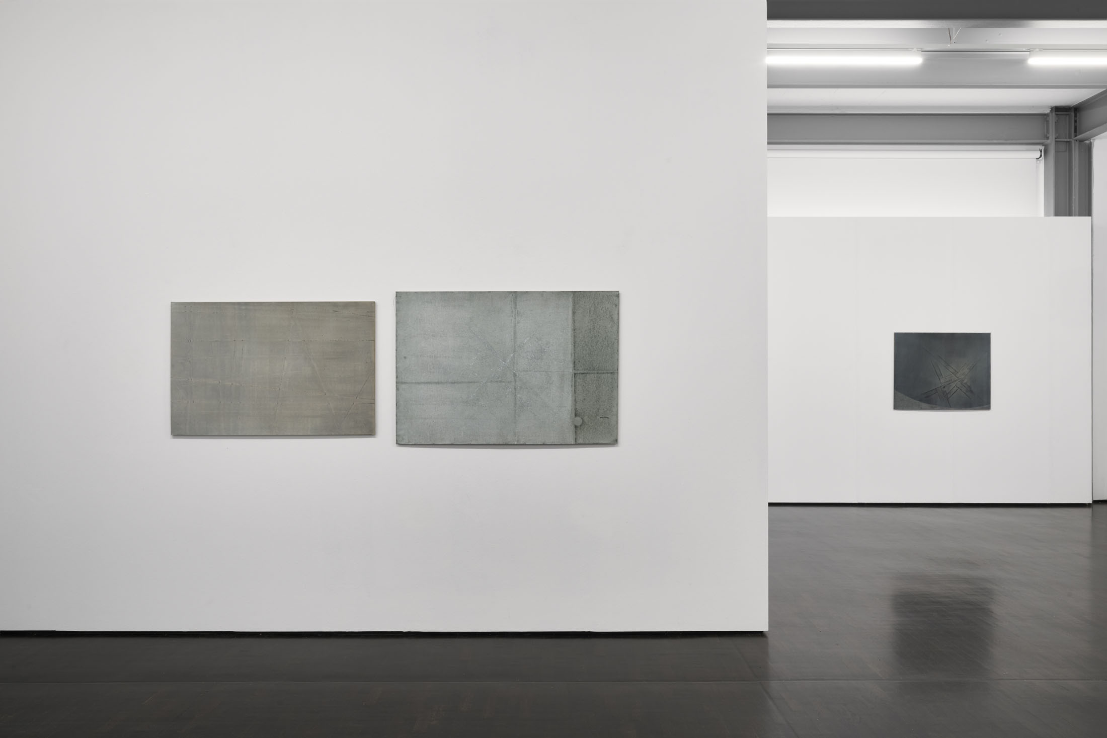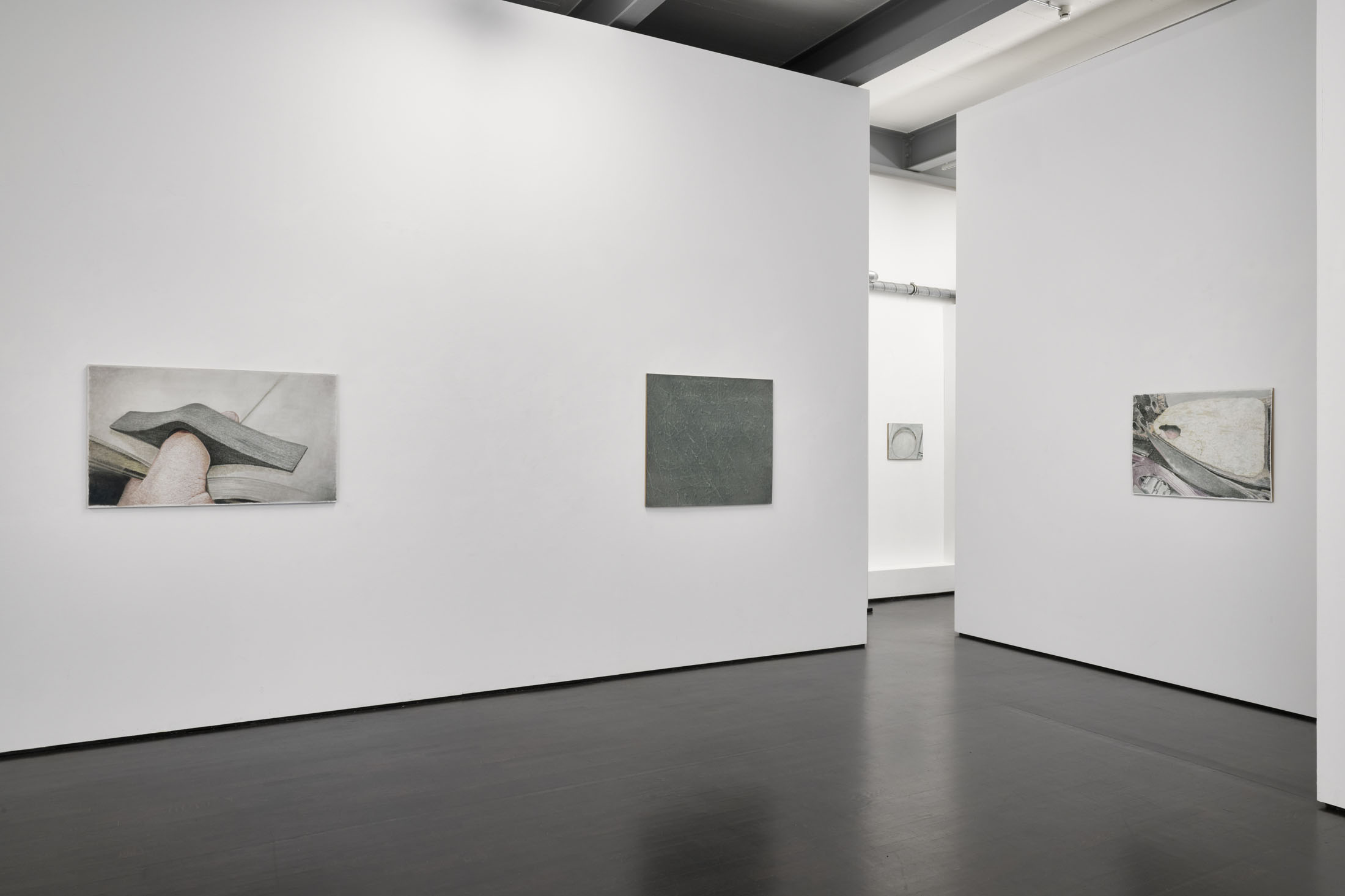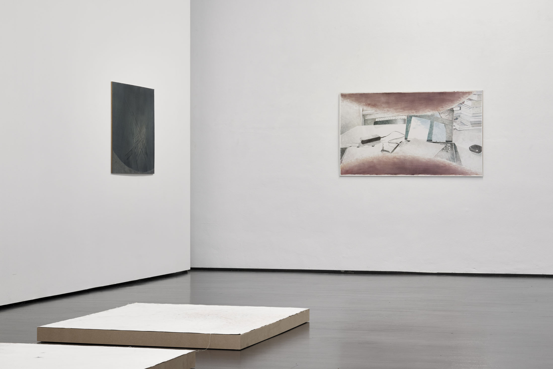 Matthias Gmeiner works with painting and frottage. The exhibition PALMAR shows four different series of works.